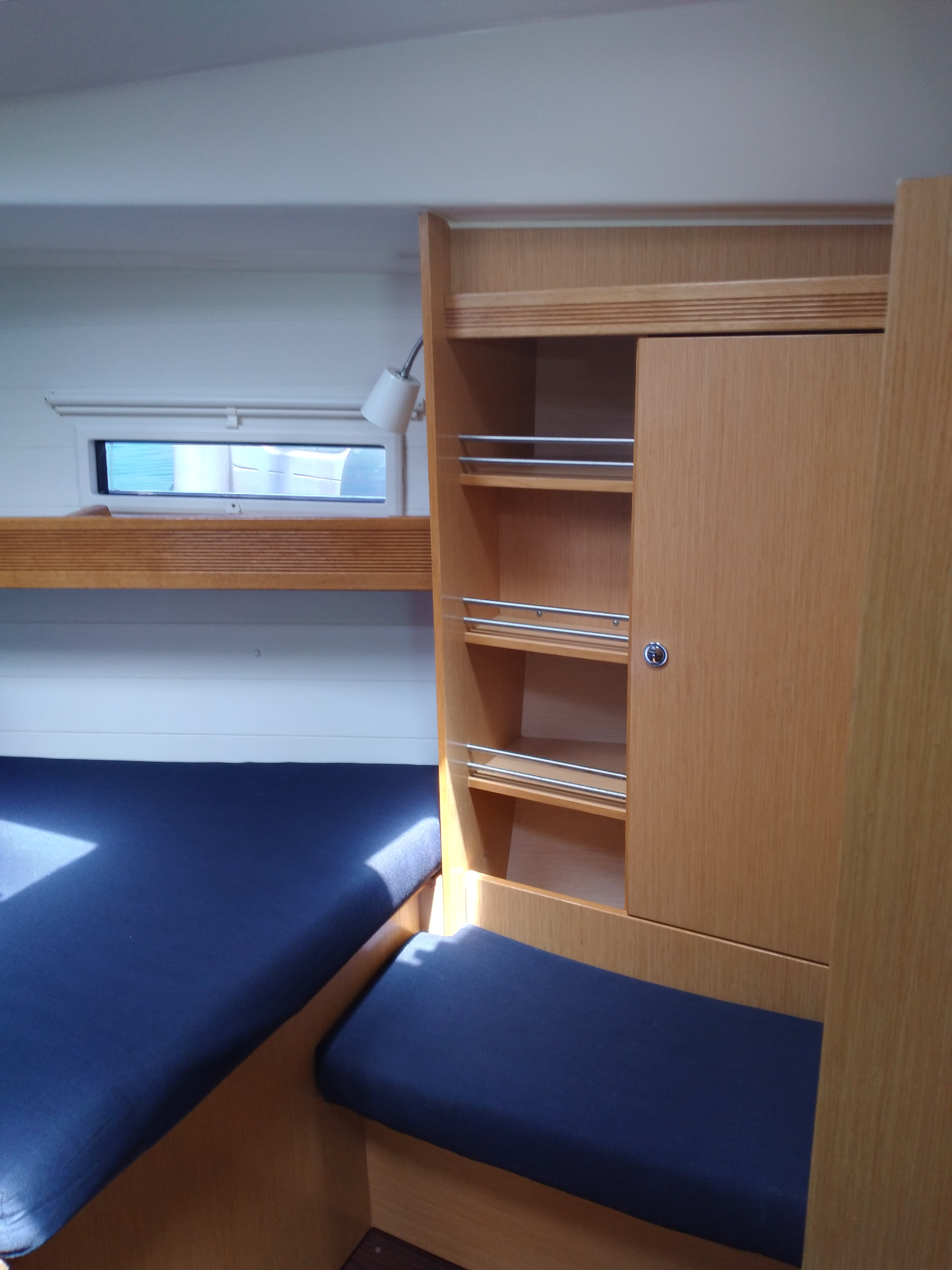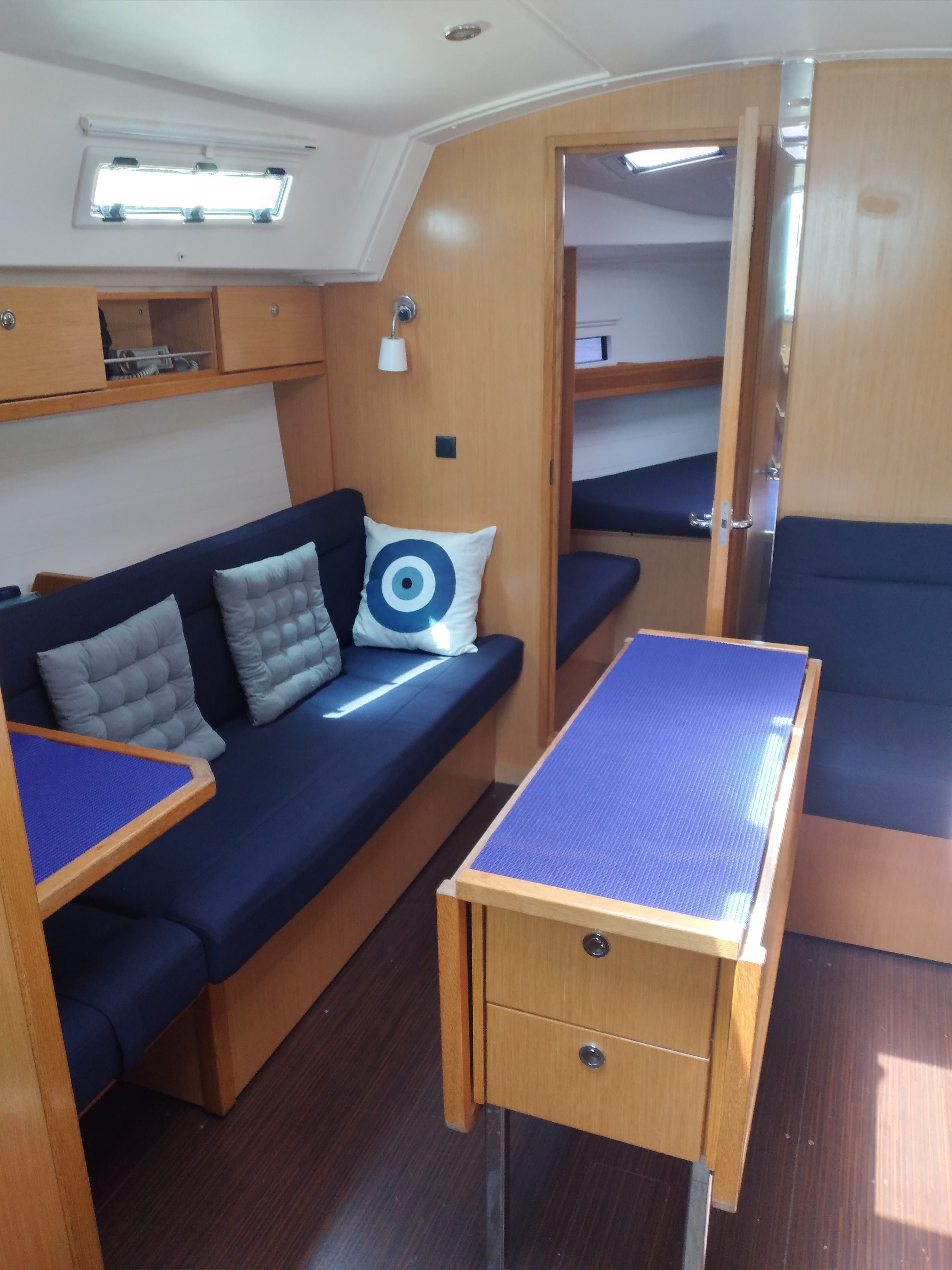 | Outside | 12V - connection, Bathing platform, Bimini top, Cockpit speakers, Cockpit cushions, Electr. anchor windlass, Snorkeling gear, Solar panels, Sprayhood |