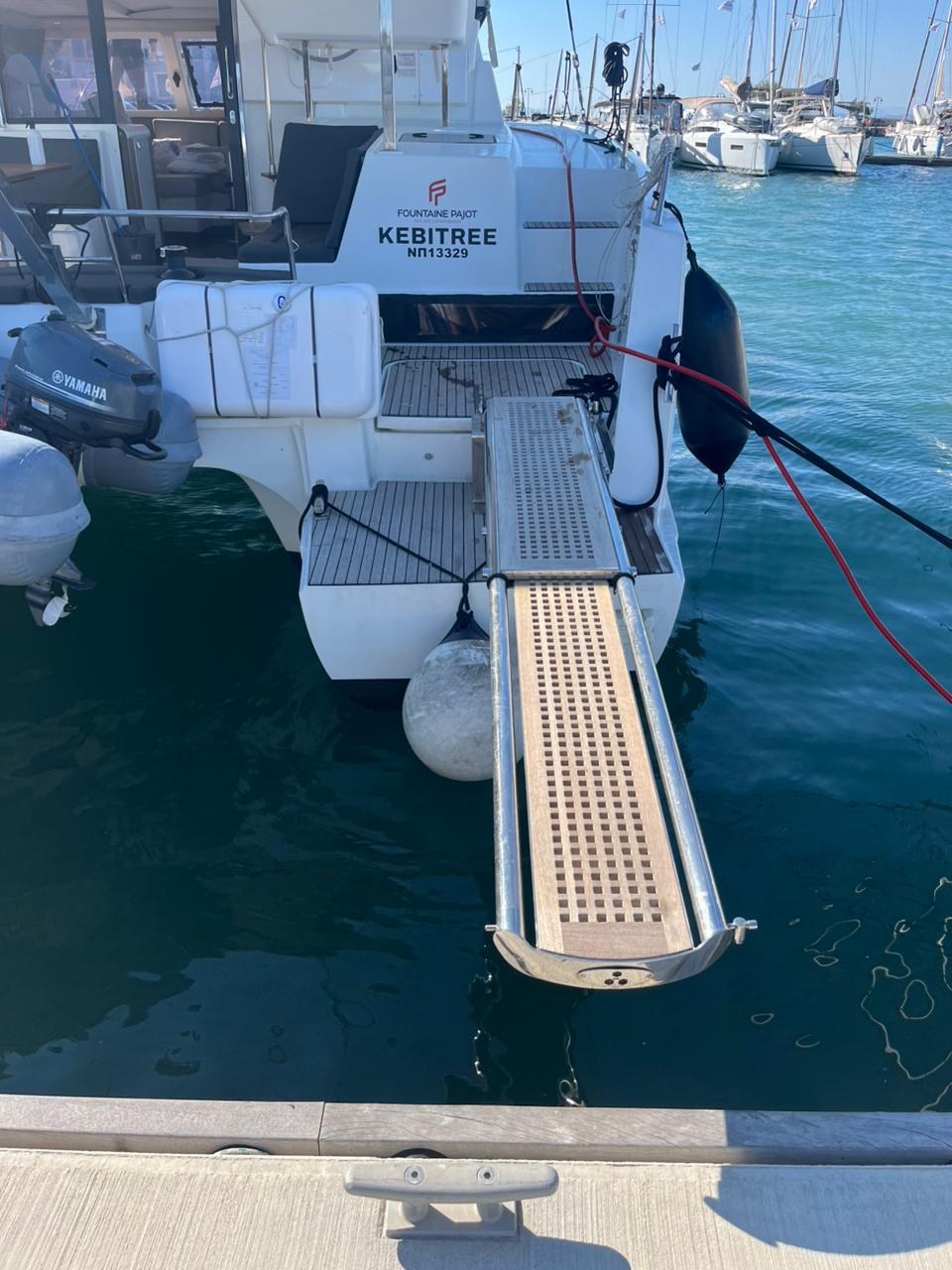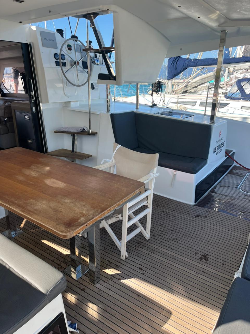 | Inside | Generator, Airconditioning (independent from shore power), Refrigerator, Convertible salon table, fans in cabins, Watermaker, WC (electr.) |
