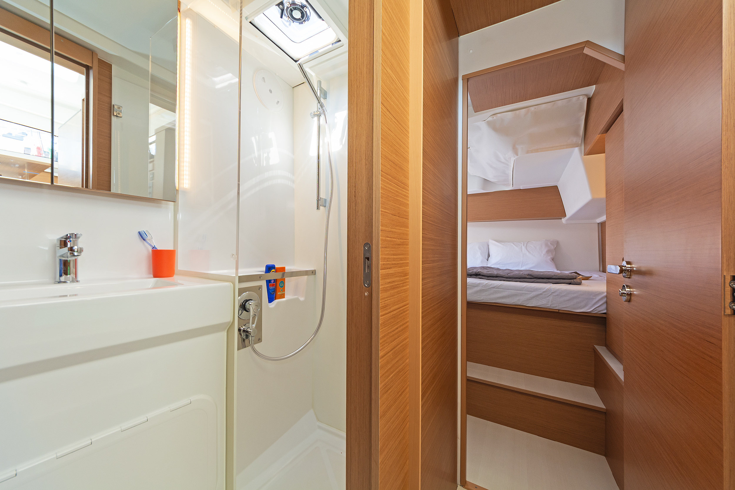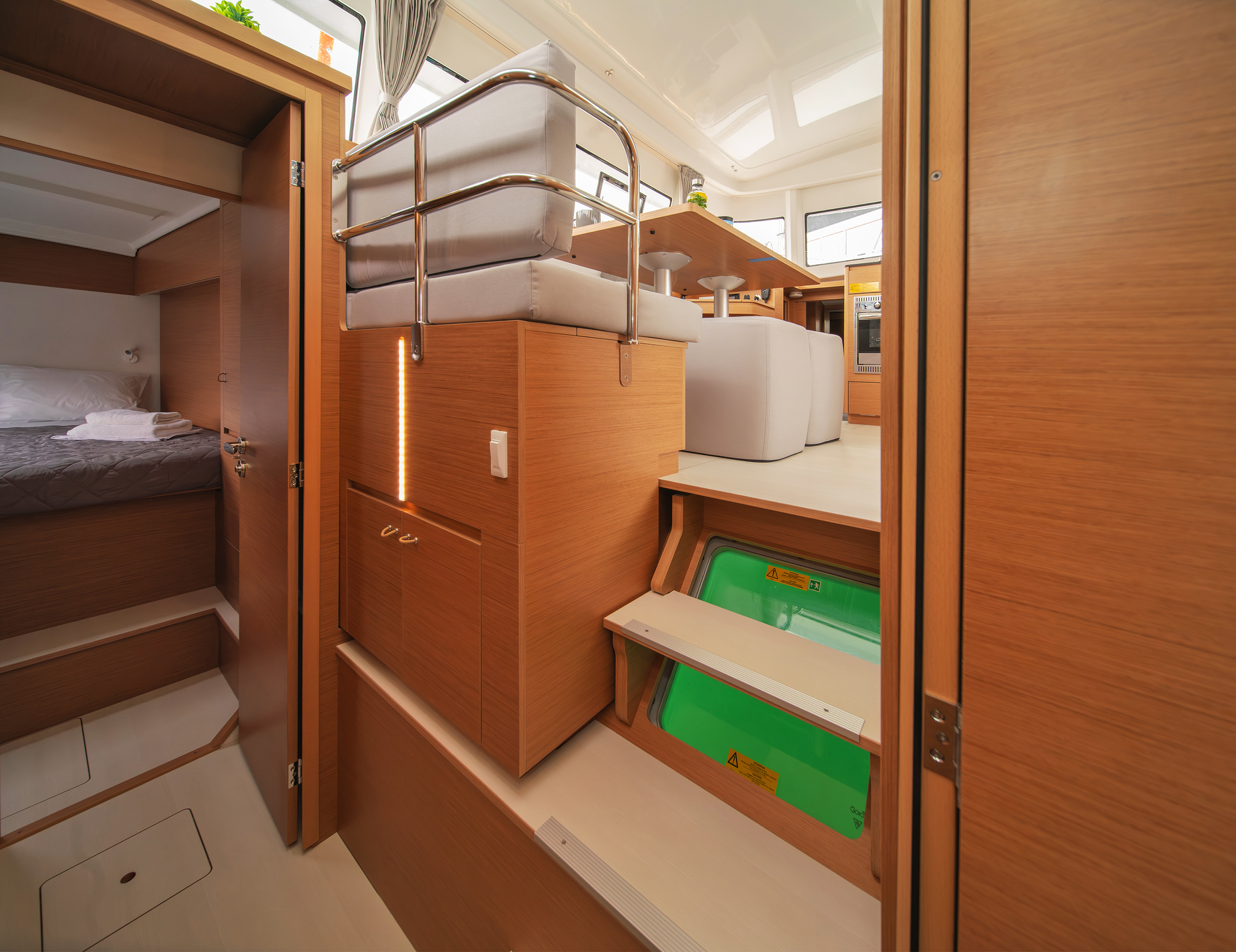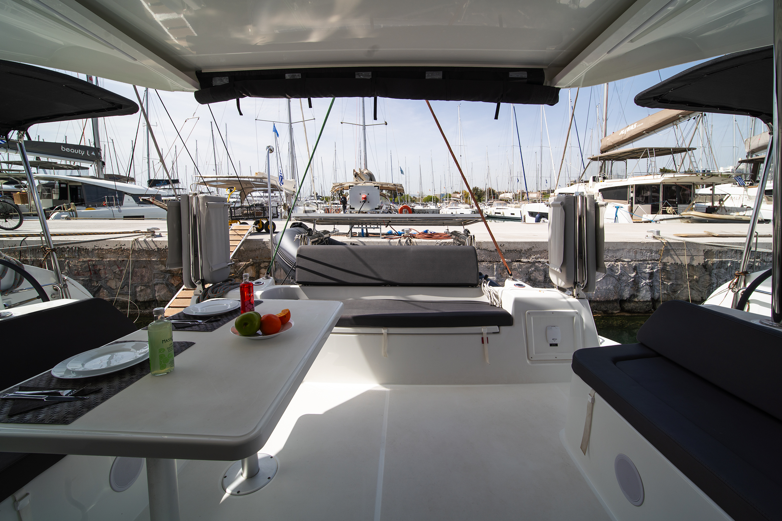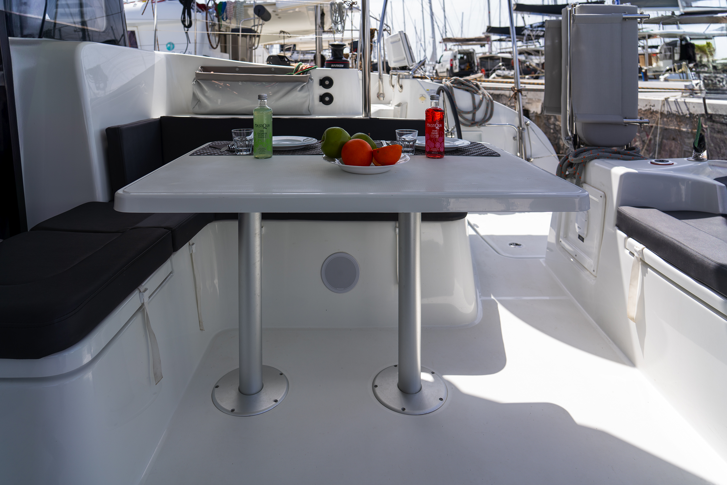 | Outside | 220V shore connection, Anchor with chain, Bathing ladder, Jerrycan of petrol, Boat hook, Cockpit shower, Cockpit speakers, Cockpit cushions, Electr. anchor windlass, electr. winch, Fender, Mooring lines, Gangway, Plastic bucket, Snorkeling gear, Solar panels, Wire (shroud) cutter, Water hose |