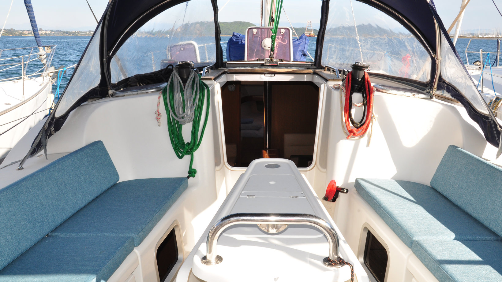 | Outside | 220V shore connection, Bimini top, Cockpit shower, Cockpit speakers, Cockpit table, Electr. anchor windlass, Gangway, Solar panels, Sprayhood, Teak in cockpit |