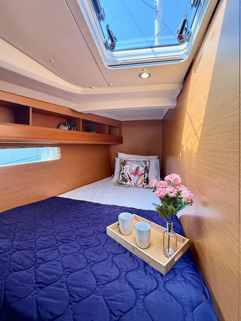 | Outside | 220V shore connection, Bathing ladder, Bimini top, Cockpit shower, Cockpit speakers, Cockpit cushions, Cockpit table, Electr. anchor windlass, Gangway, Snorkeling gear, Solar panels, Sprayhood |