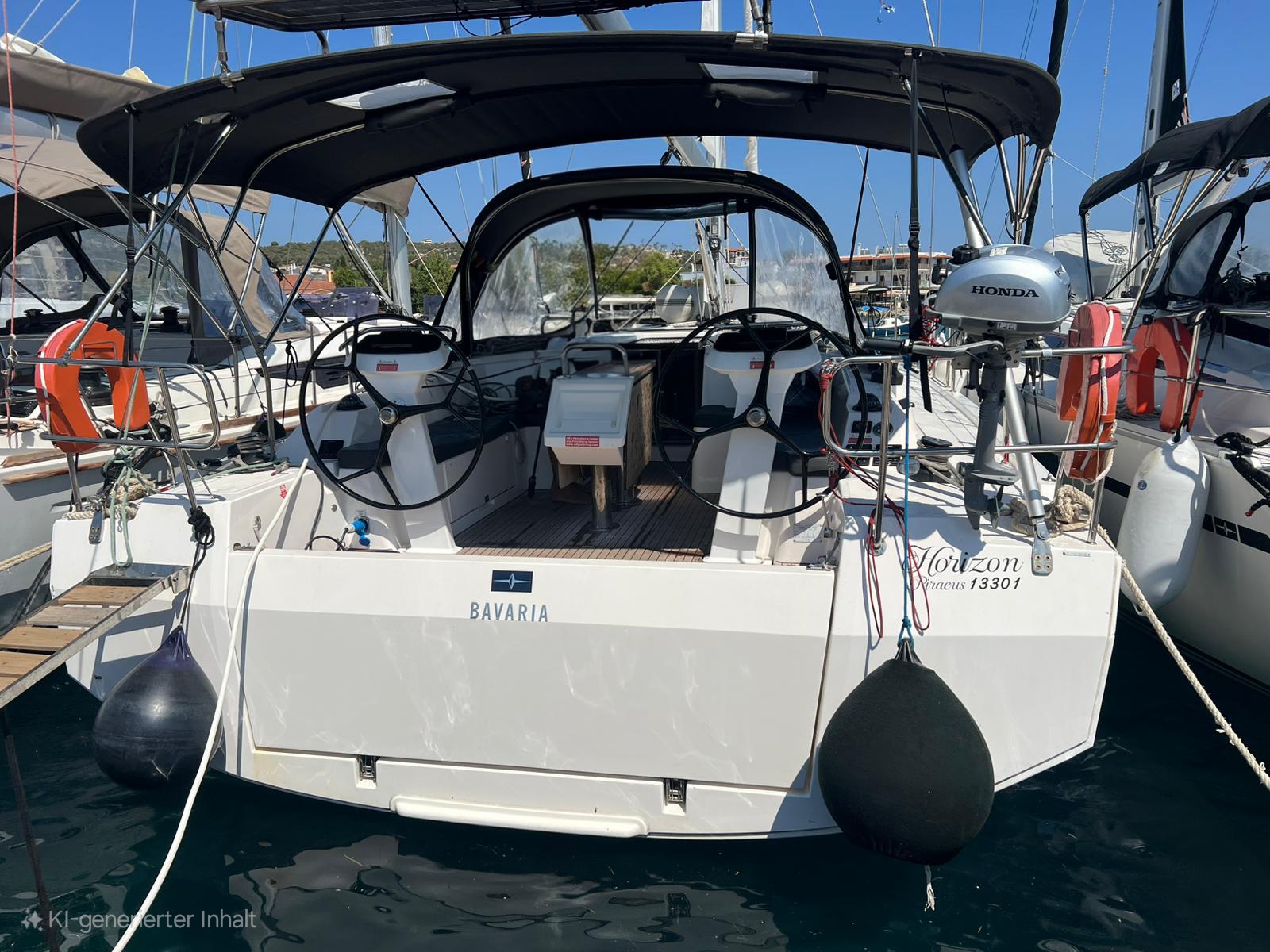 | Outside | Anchor with chain, Bimini top, Cockpit shower, Cockpit speakers, Cockpit cushions, Foldable cockpit table, Cover brush, Electr. anchor windlass, Fender, Plastic bucket, Sprayhood |