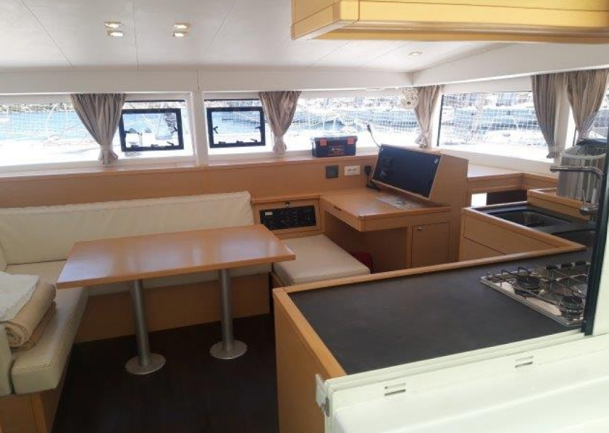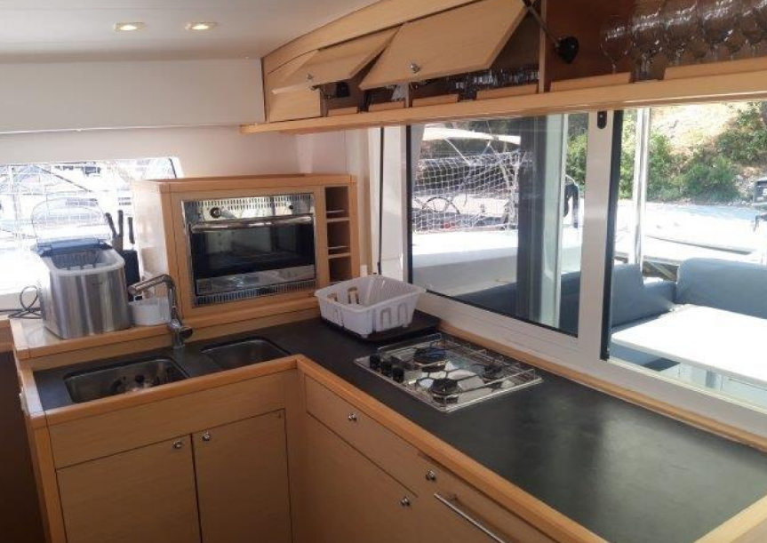 | Inside | Gas stove with oven, Freezer, Generator, Inverter 12V/220V, Airconditioning (independent from shore power), Refrigerator, Pantry equipment, Radio with CD player, Fan, Warm water, Watermaker, WC (electr.) |