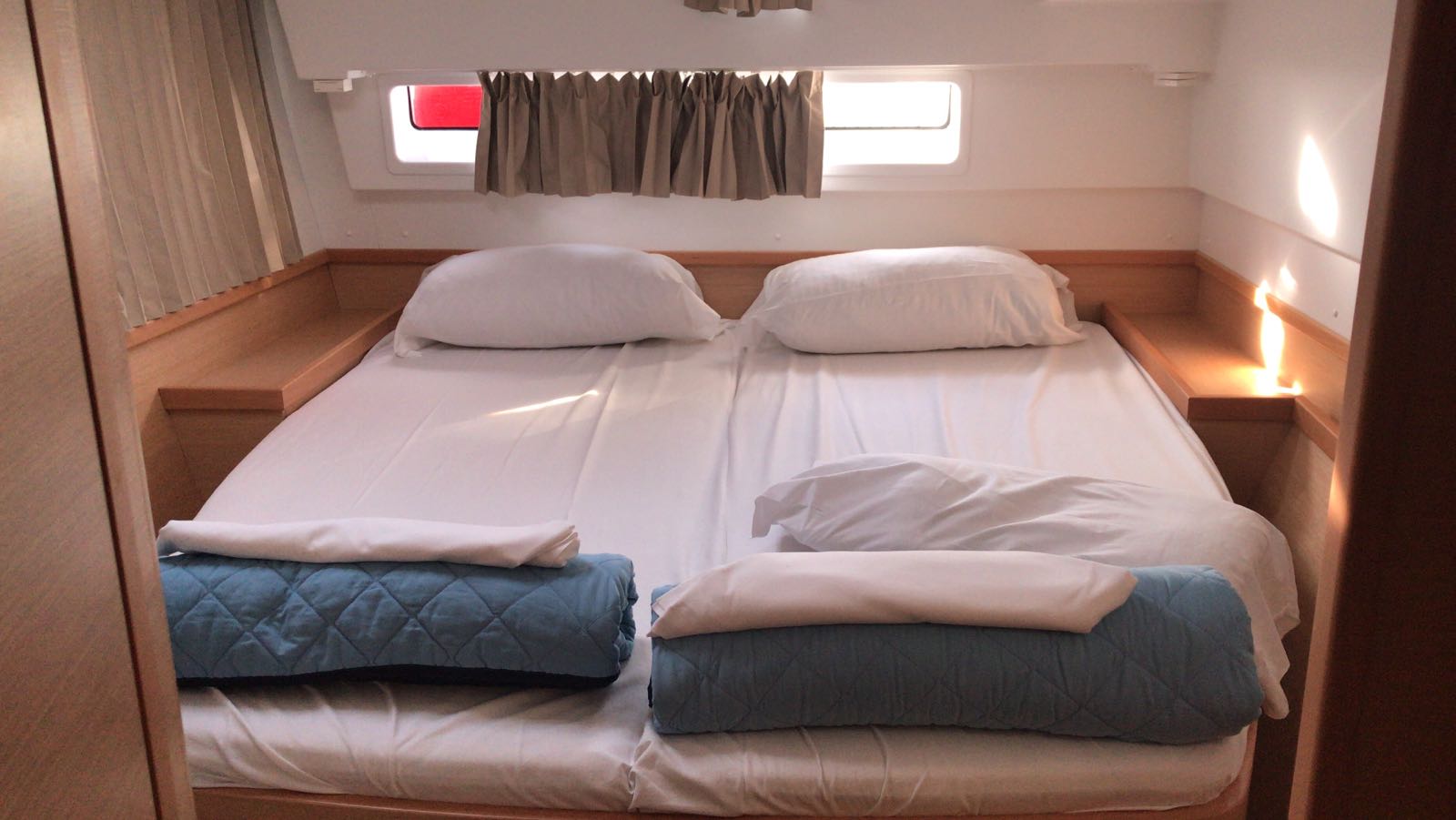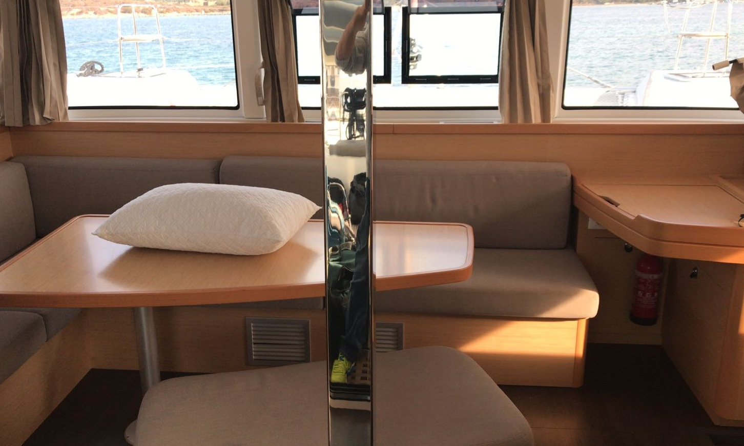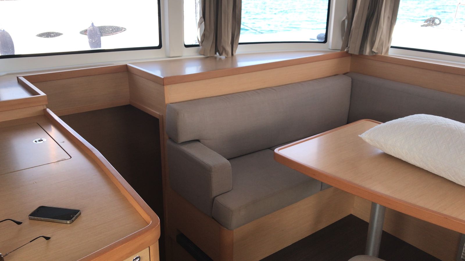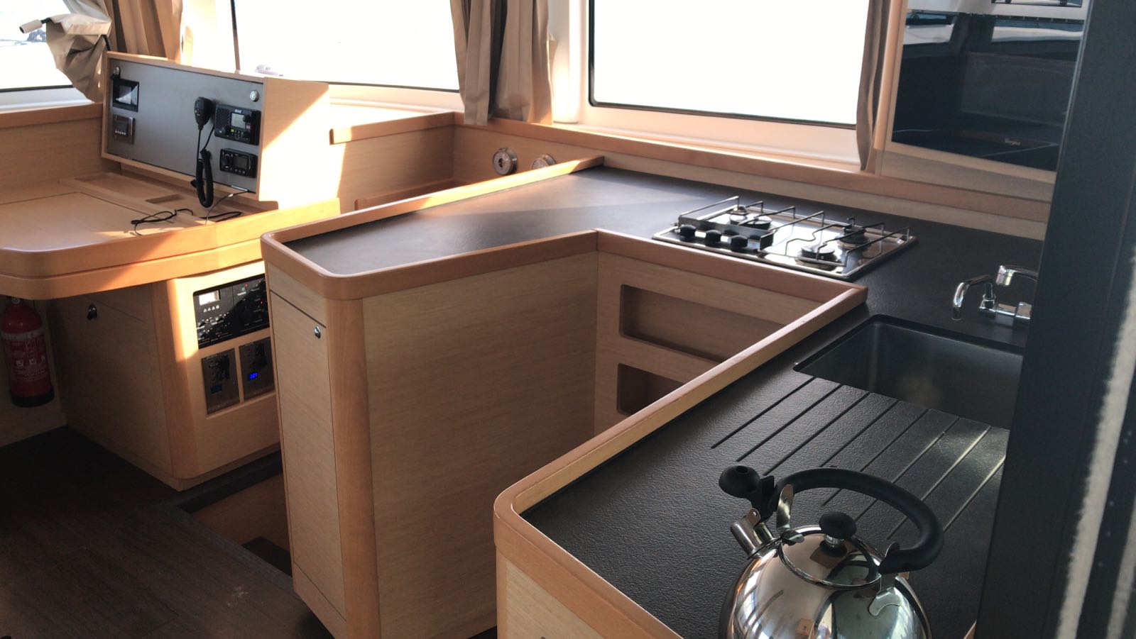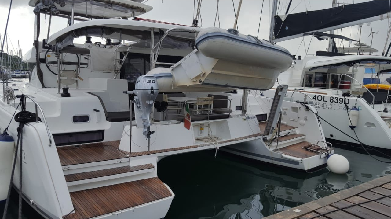 | Inside | Oven, Generator, Inverter 12V/220V, Coffee machine, Air Condition, Shore power cable, Microwave oven, Moka pot, Pantry equipment, Radio, Convertible salon table, fans in cabins, Warm water, Watermaker, WC (electr.) |