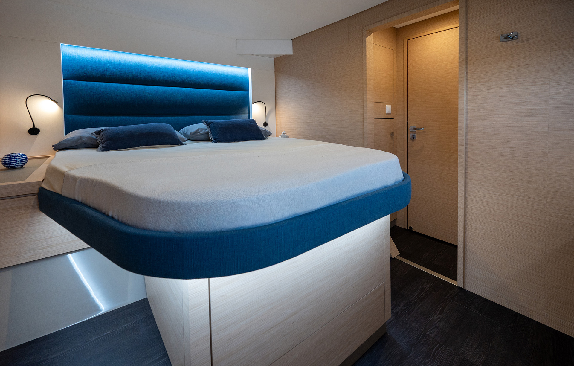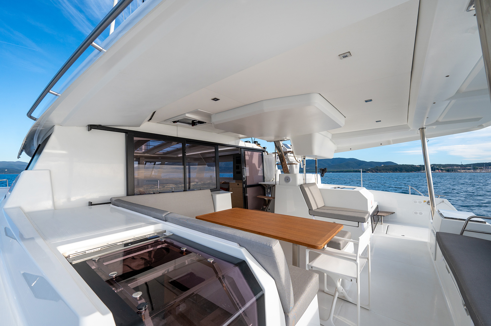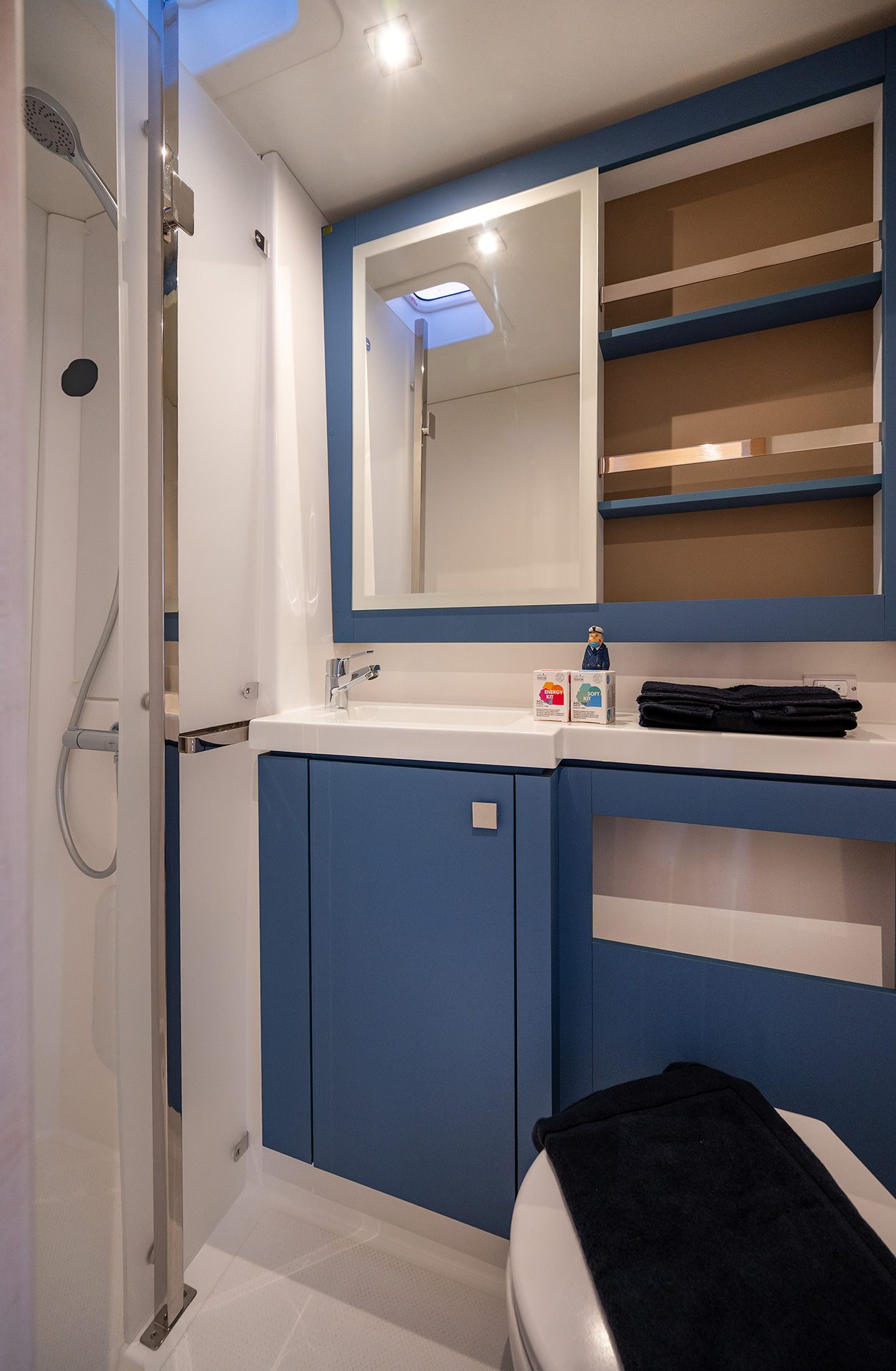 | Outside | Bathing platform (hydr.), Bimini top, Cockpit shower, Cockpit cushions, Electr. anchor windlass, electr. winch, BBQ |