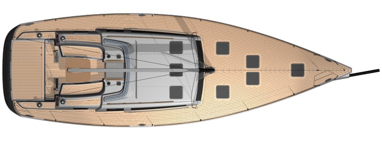 | Outside | 220V shore connection, Anchor with chain, Bathing ladder, Bimini top, Cockpit speakers, Electr. anchor windlass, Mooring lines, Lifeline system, Sails repair kit, Sprayhood, Teak deck, Winches |