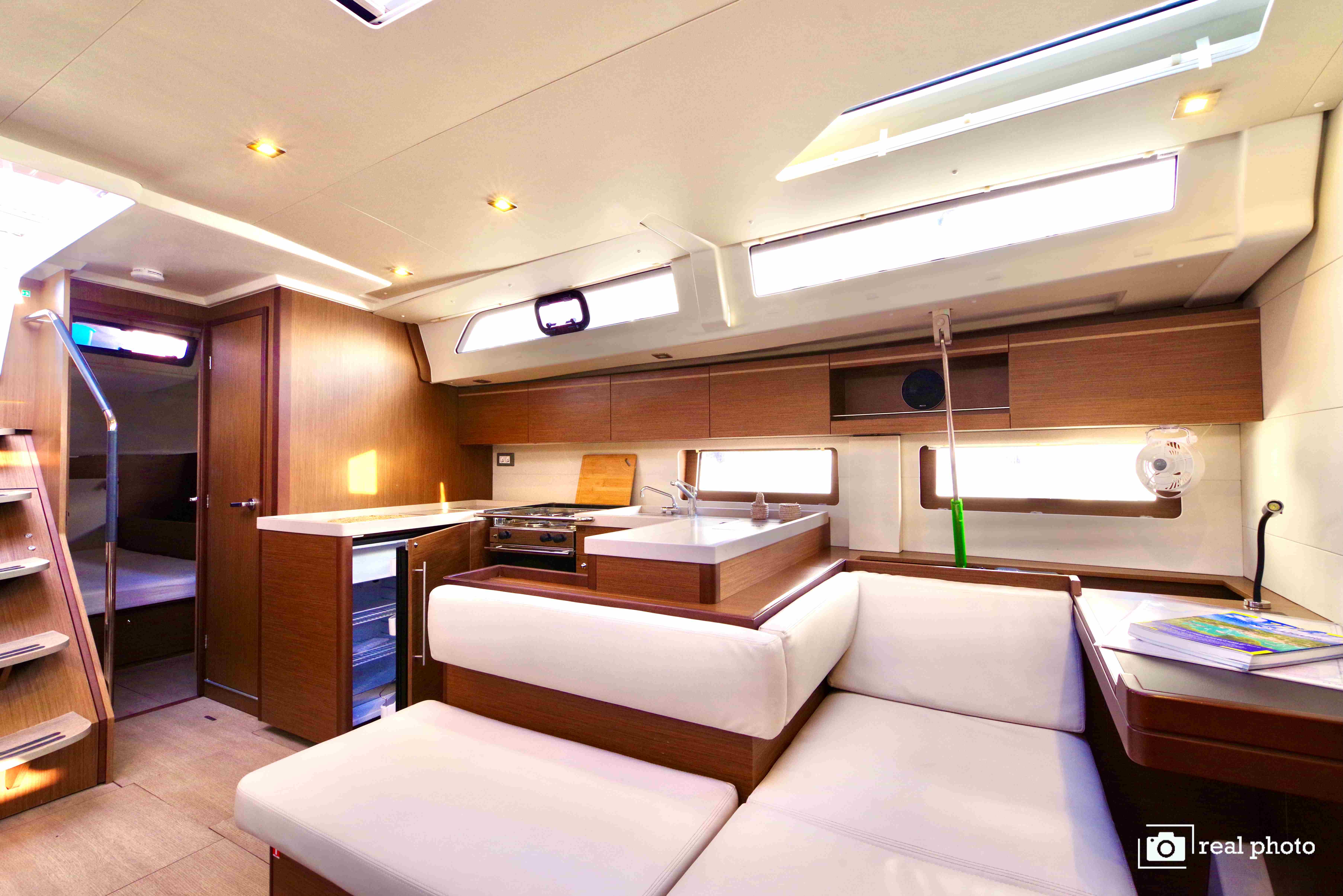 | Inside | Inverter 12V/220V, Refrigerator, Radio with MP3, Convertible salon table, fans in cabins, Warm water, Watermaker, WC (electr.) |