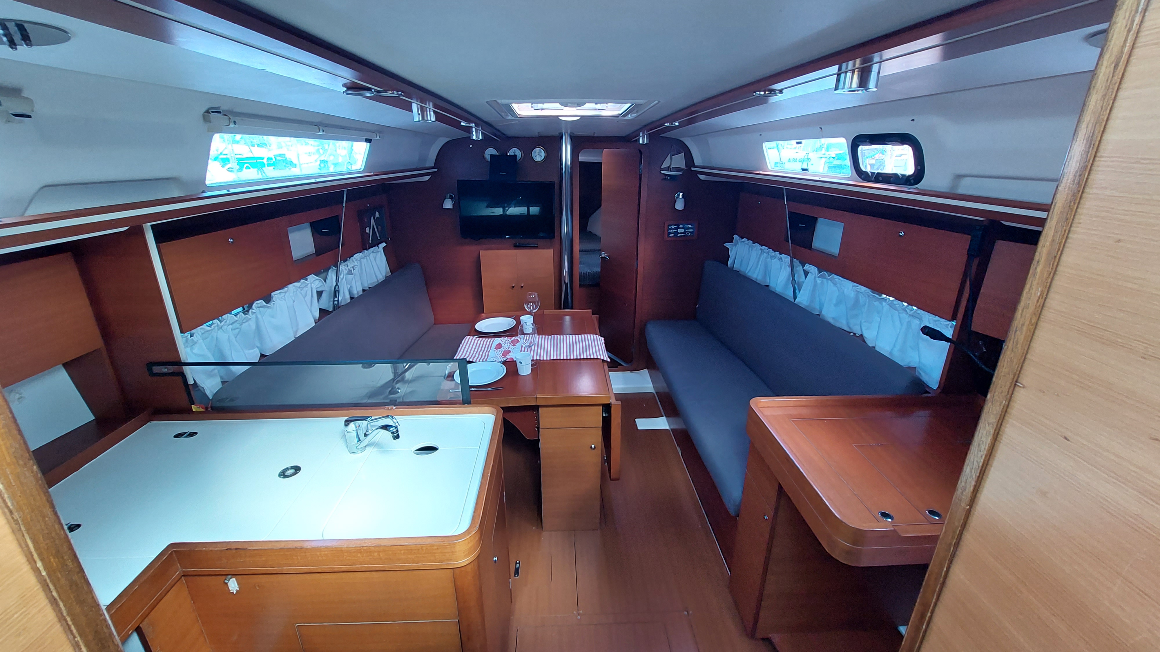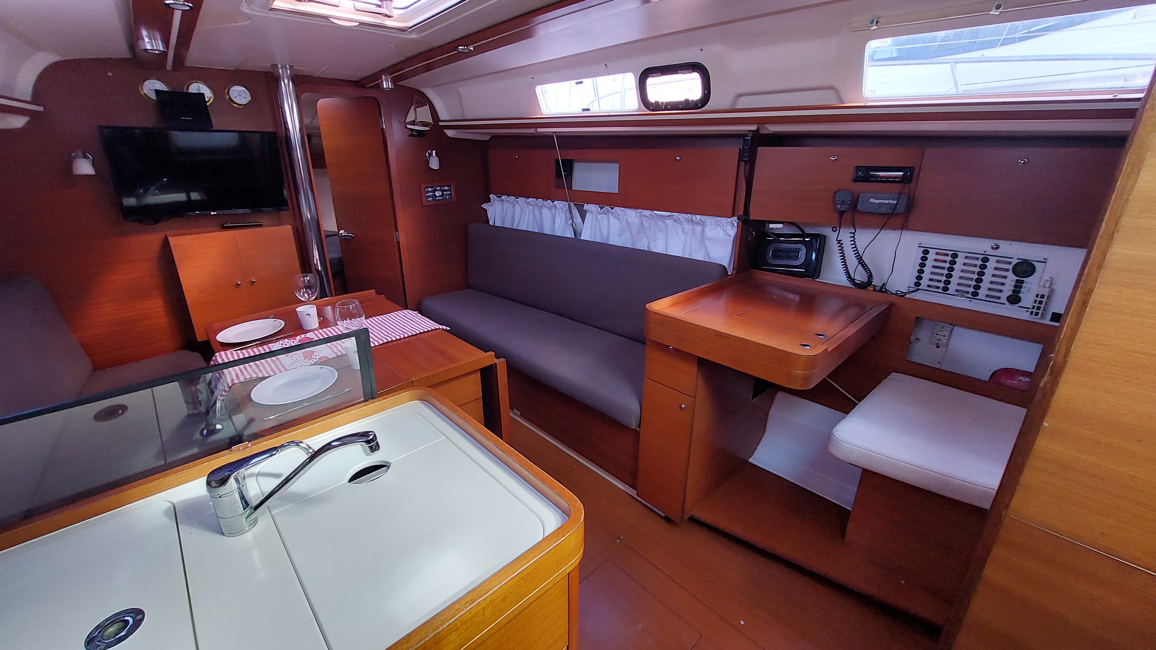 | Outside | Bathing platform, Bimini top, Cockpit speakers, Cockpit table, Electr. anchor windlass, Sprayhood |