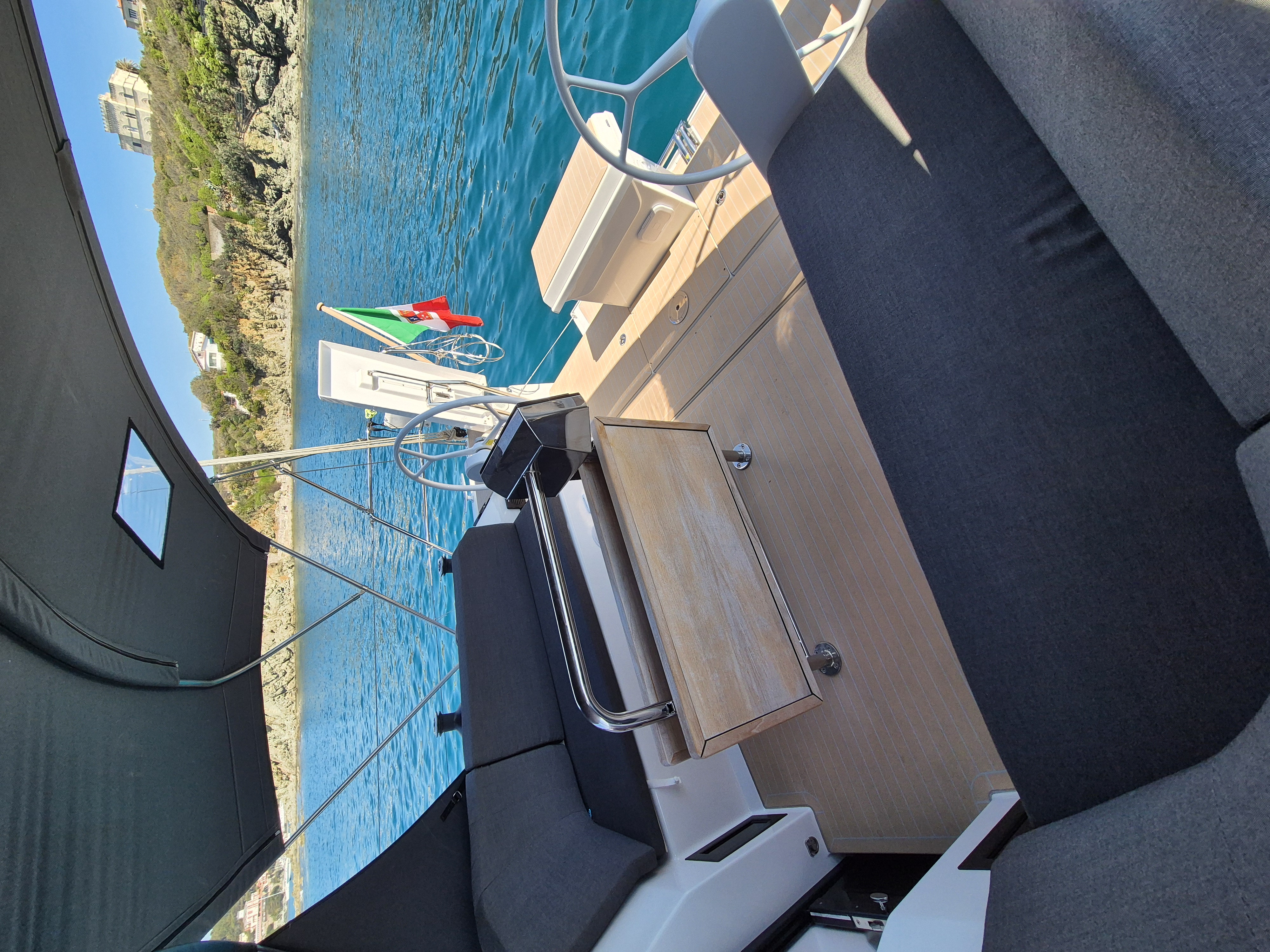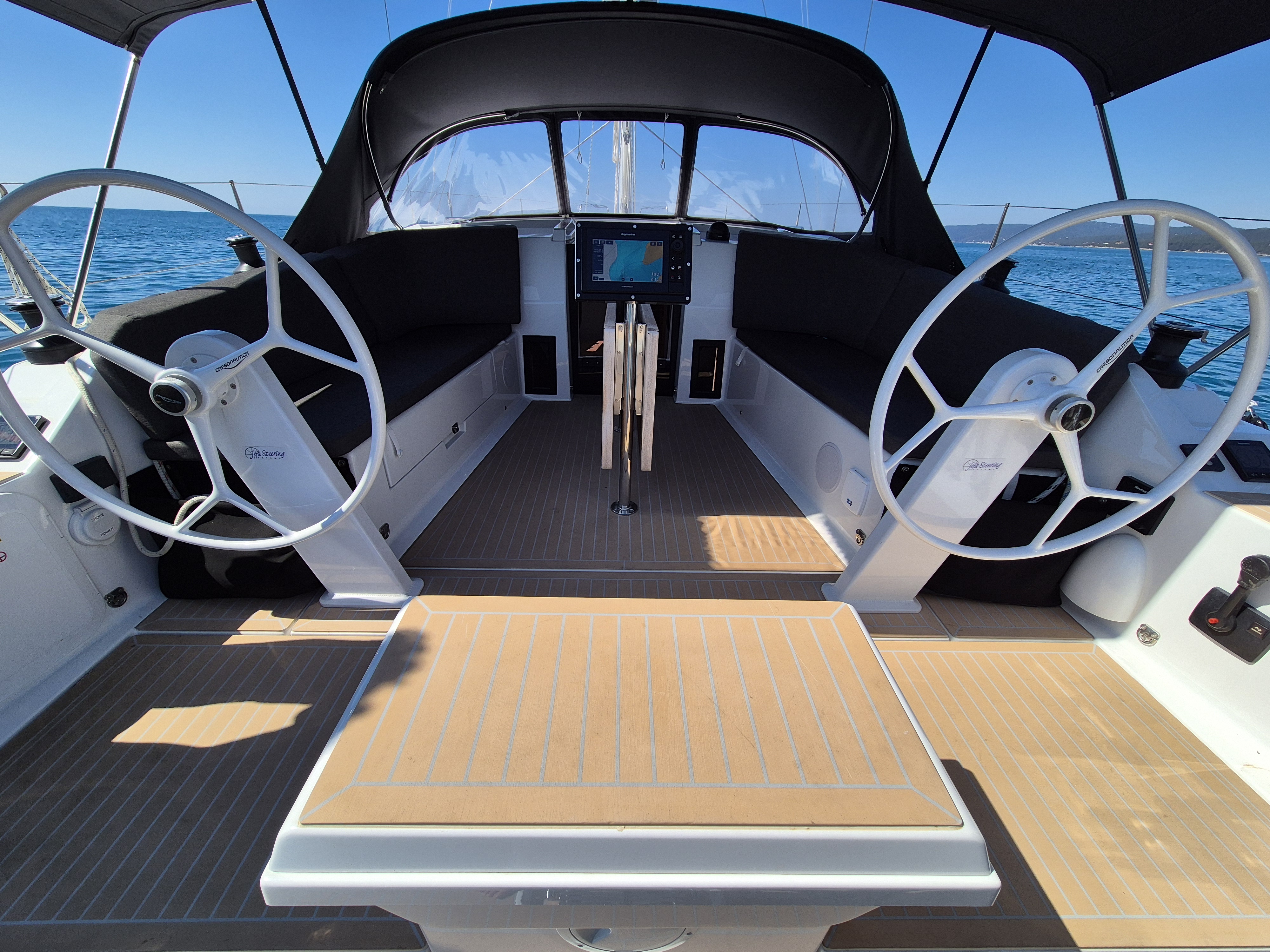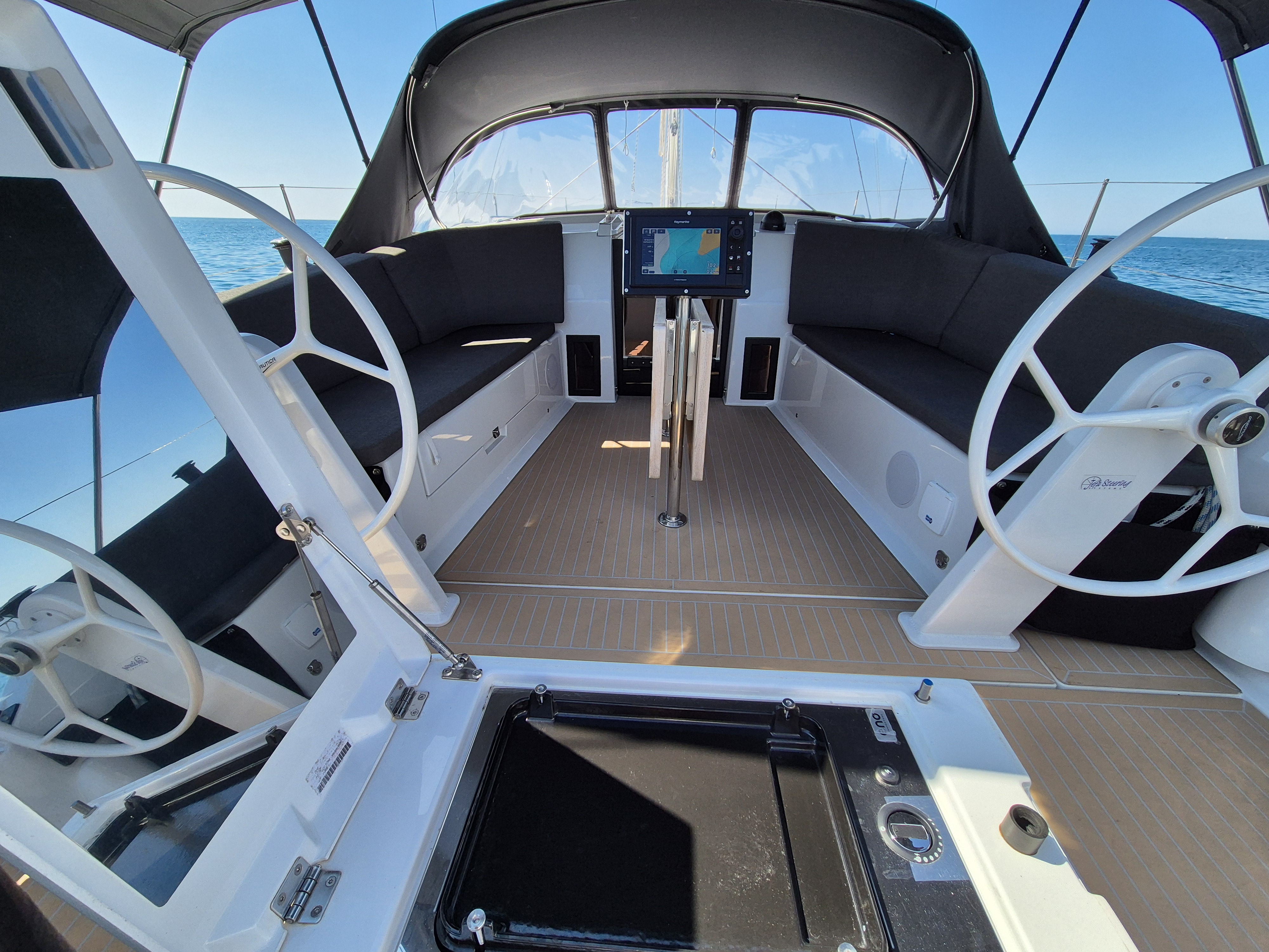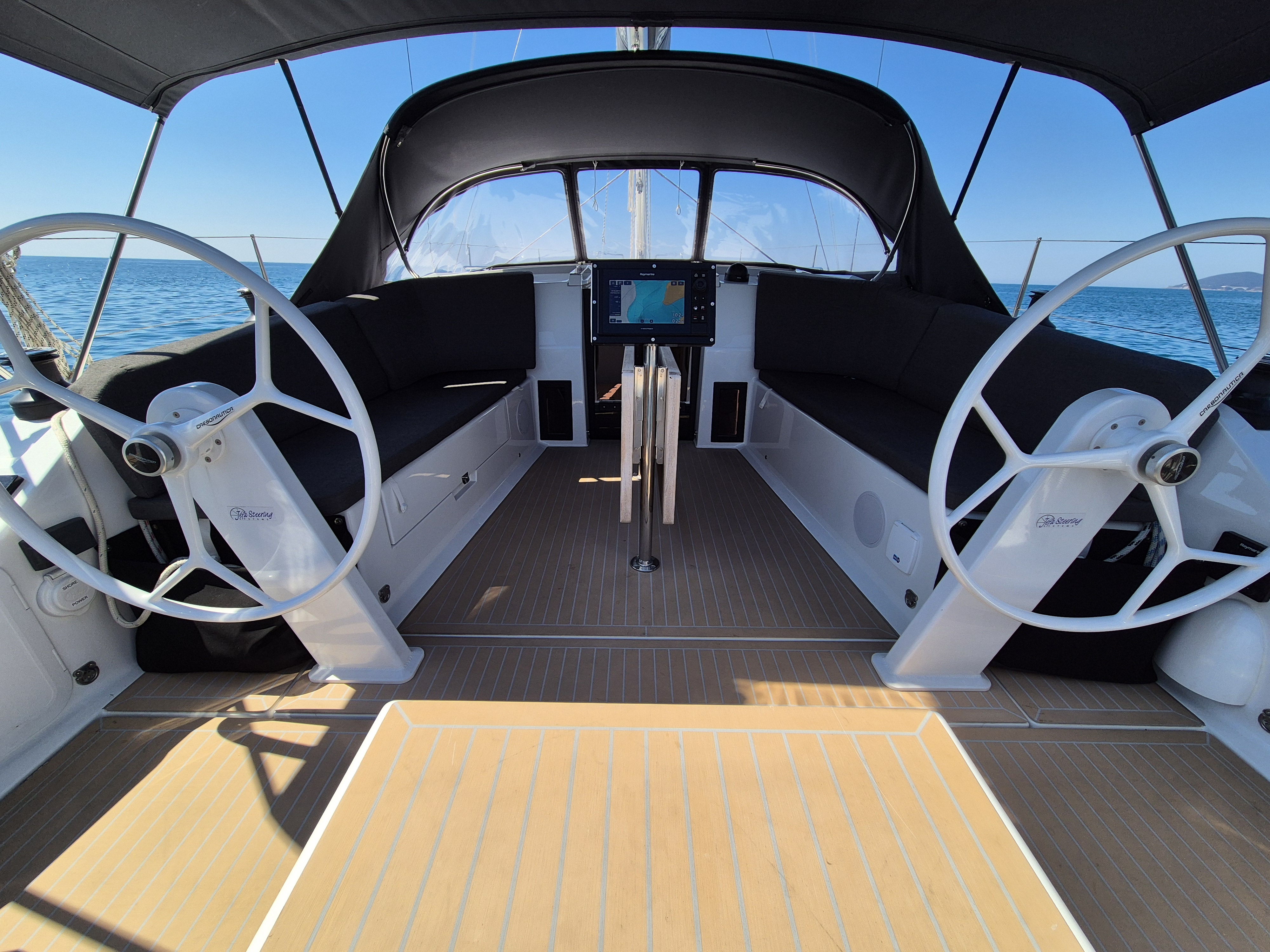 | Outside | Bathing platform, Bimini top, Cockpit speakers, Cockpit cushions, Cockpit table, Electr. anchor windlass, BBQ, Sprayhood |