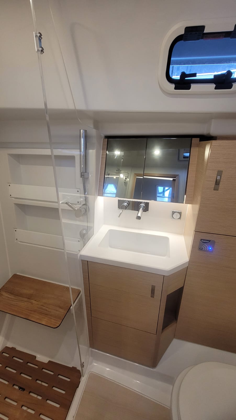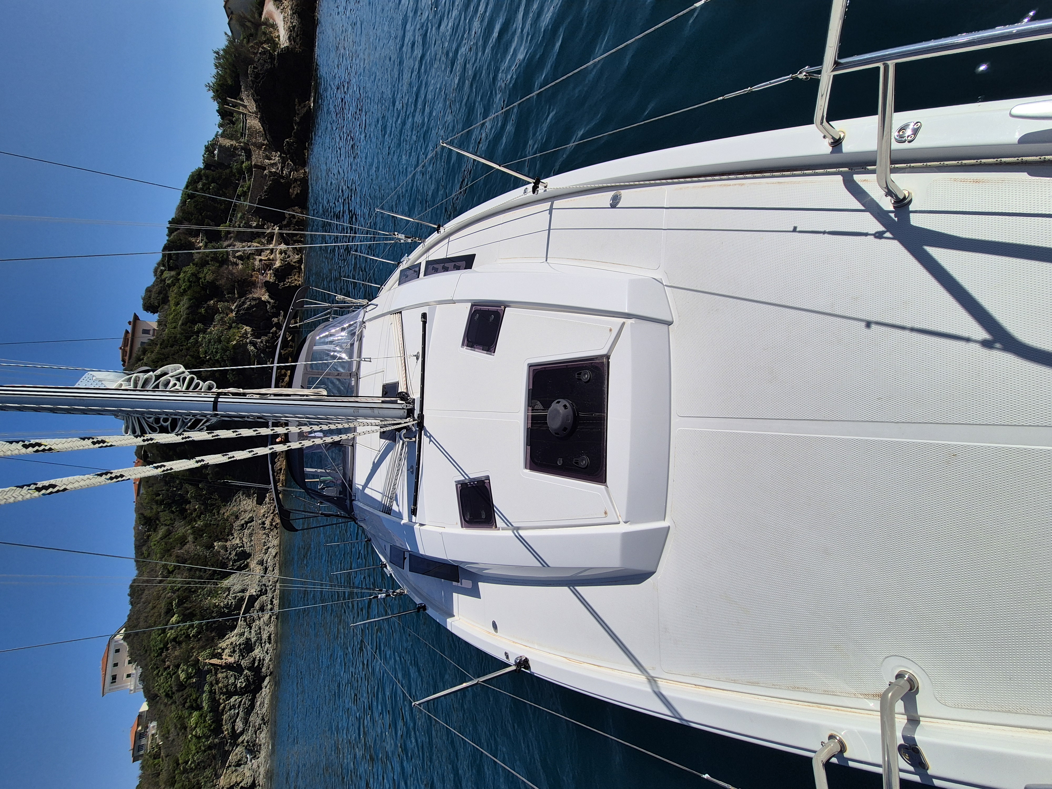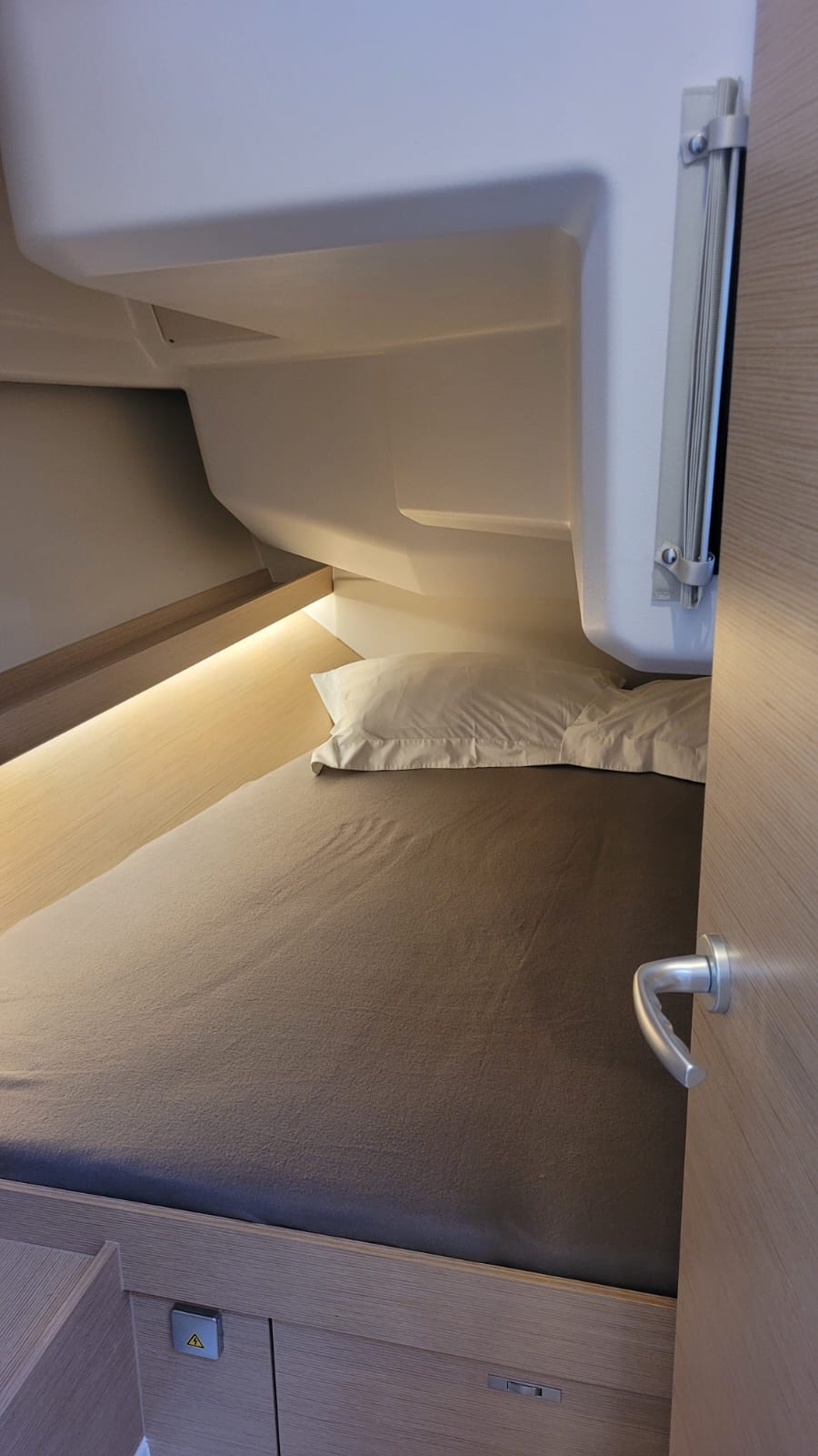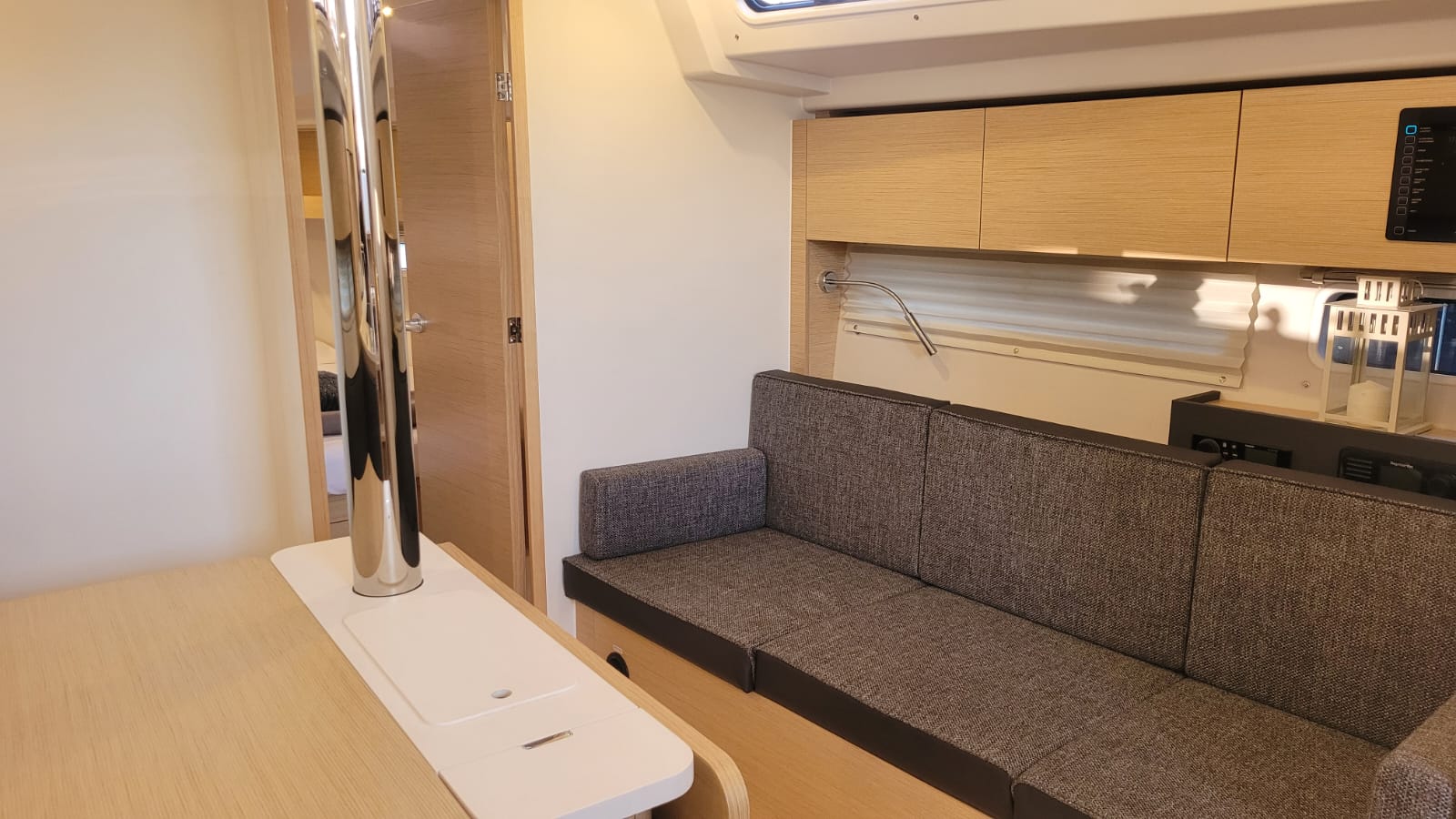 | Outside | Bathing platform, Bimini top, Cockpit speakers, Cockpit cushions, Cockpit table, Electr. anchor windlass, BBQ, Sprayhood |