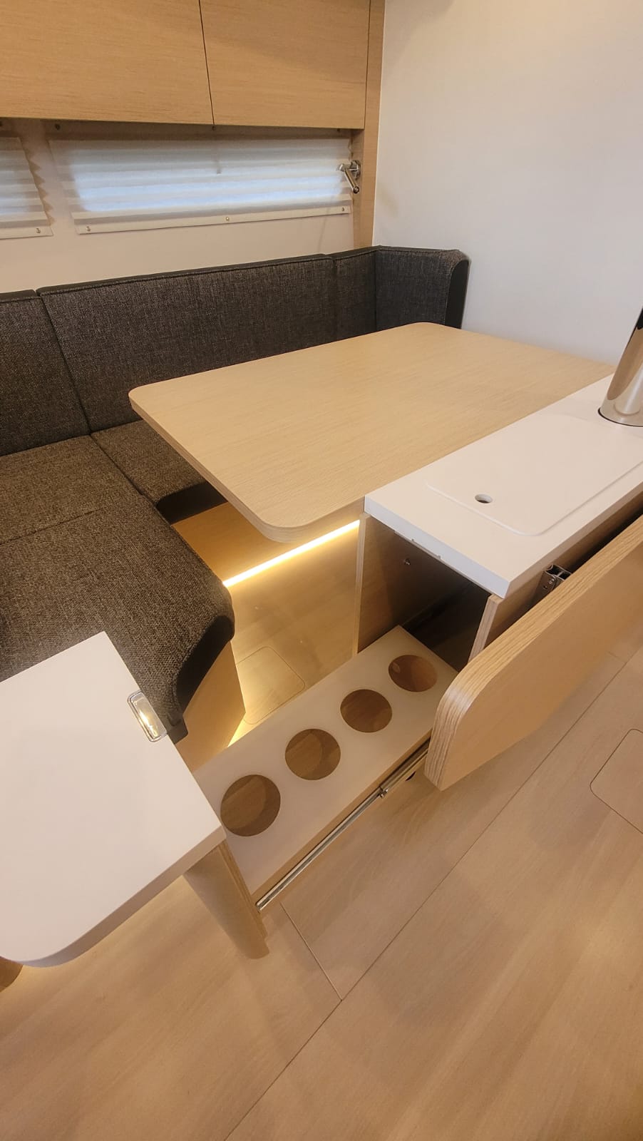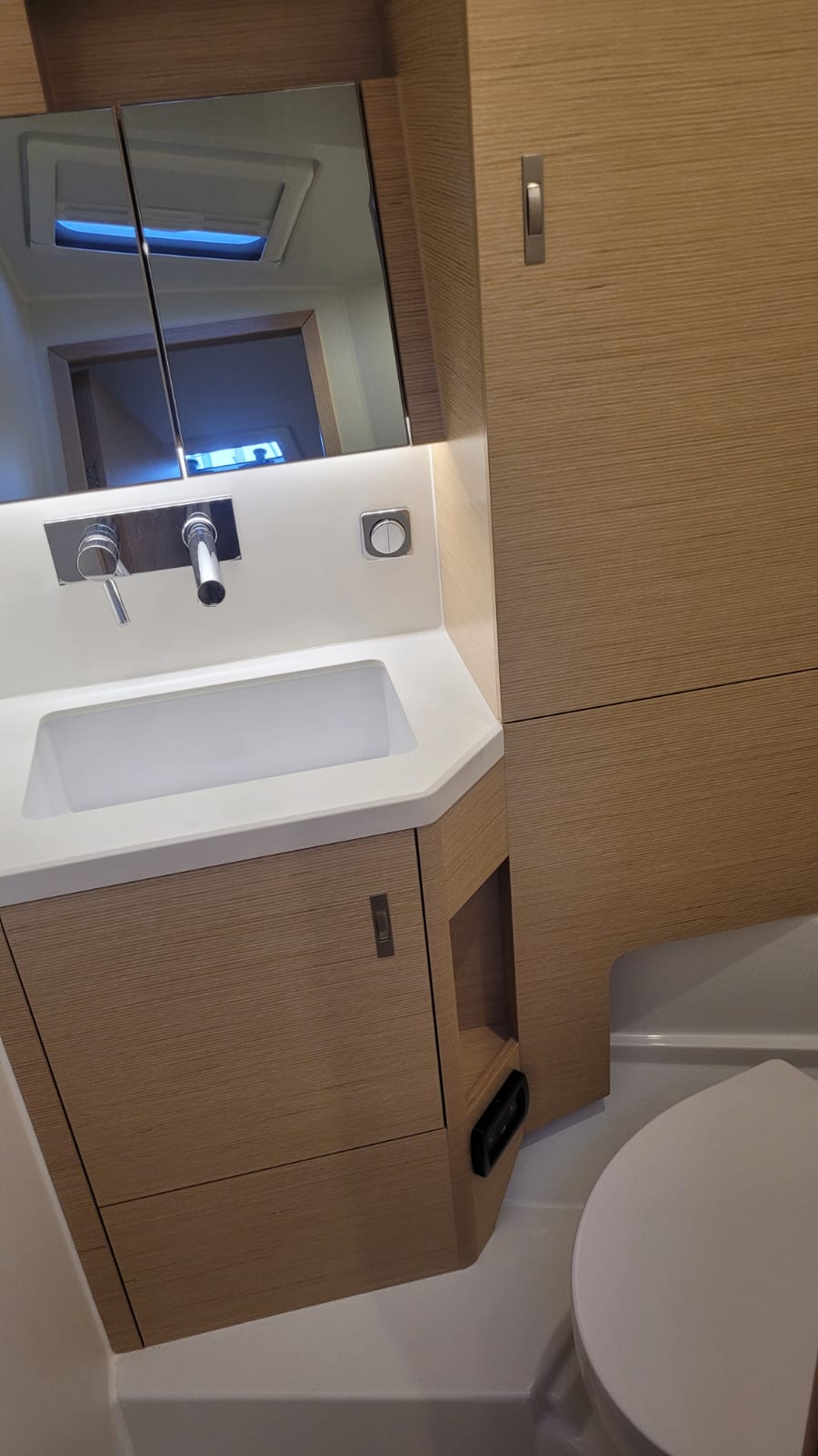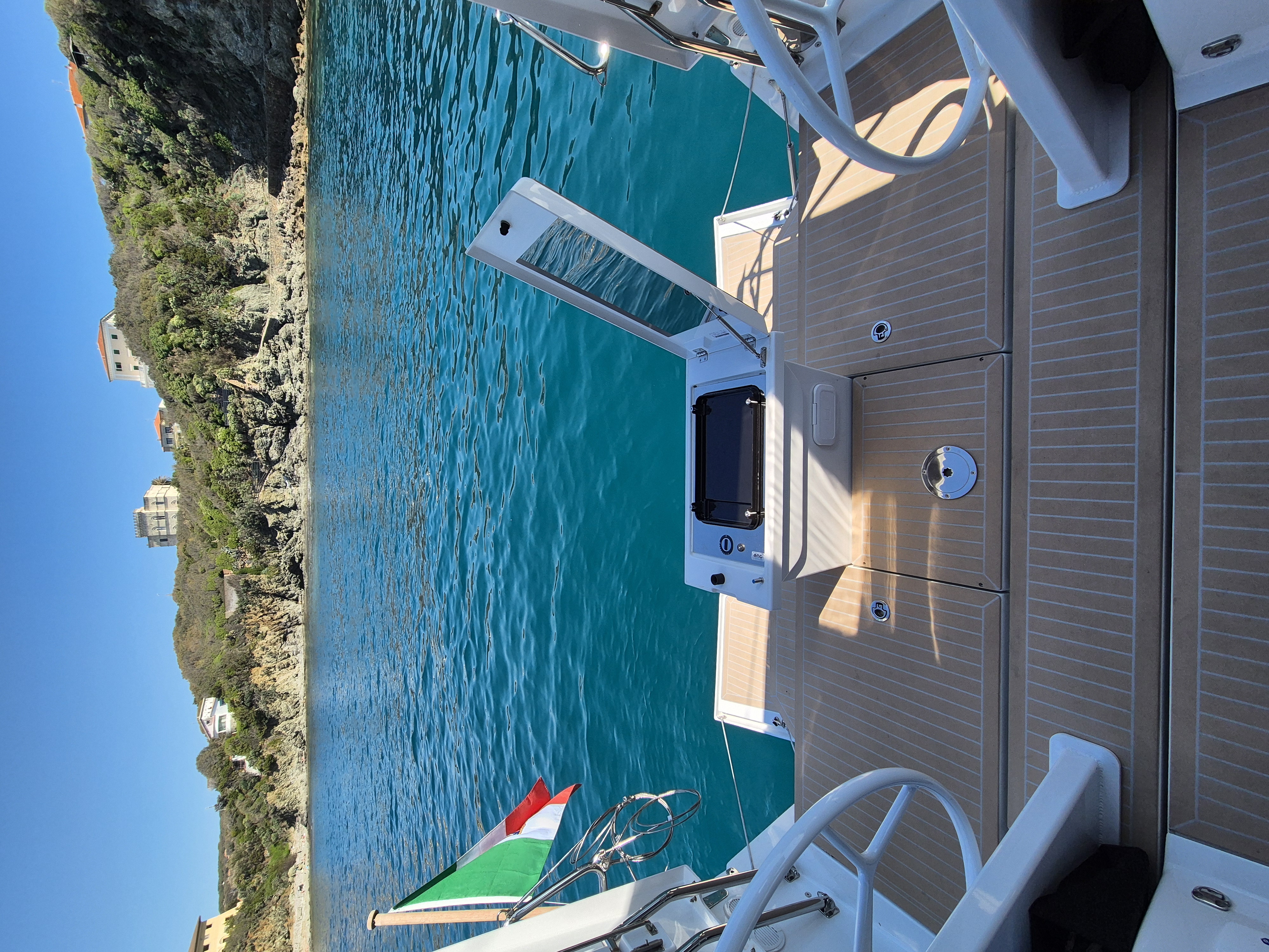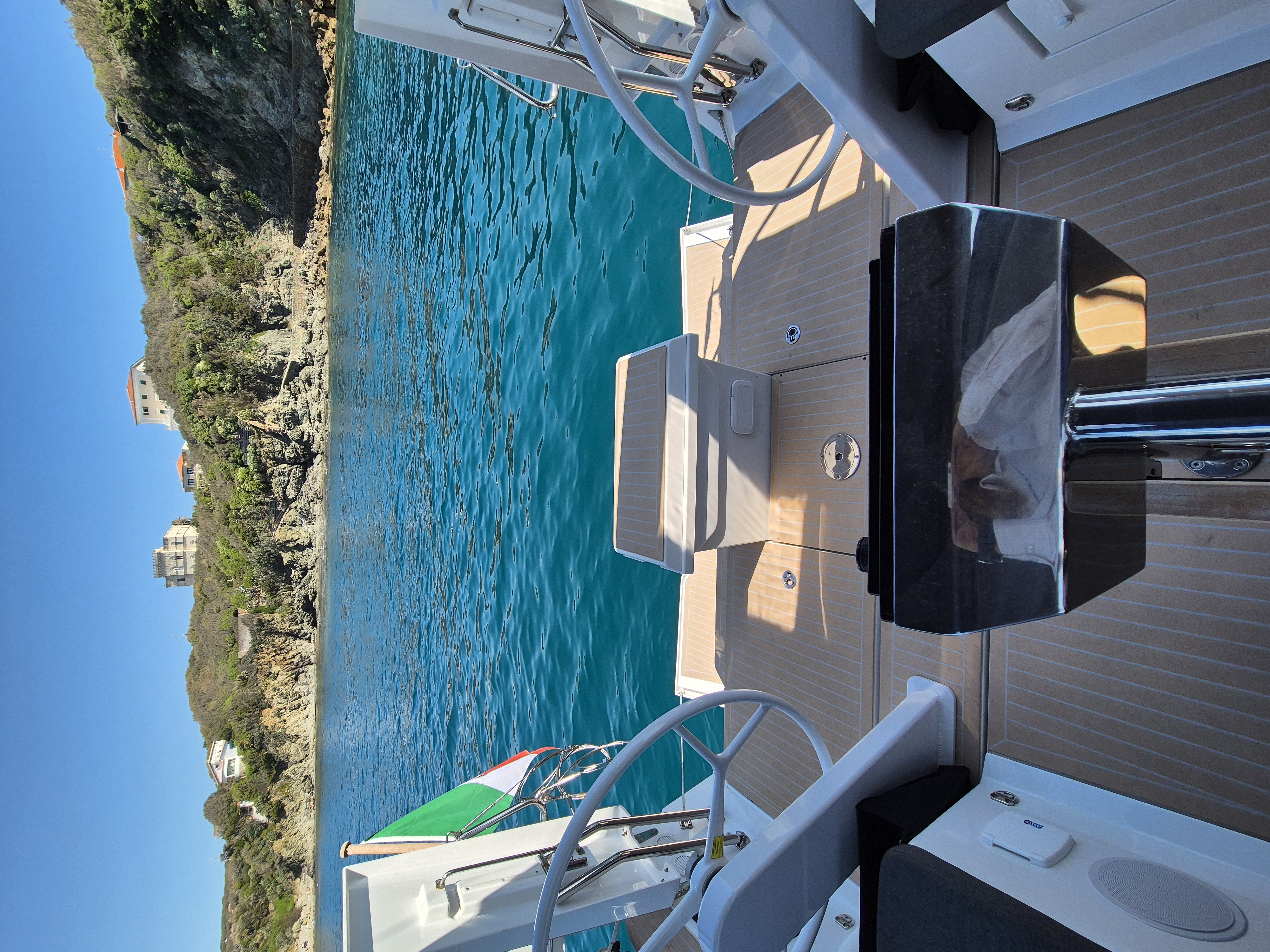 | Outside | Bathing platform, Bimini top, Cockpit speakers, Cockpit cushions, Cockpit table, Electr. anchor windlass, BBQ, Sprayhood |