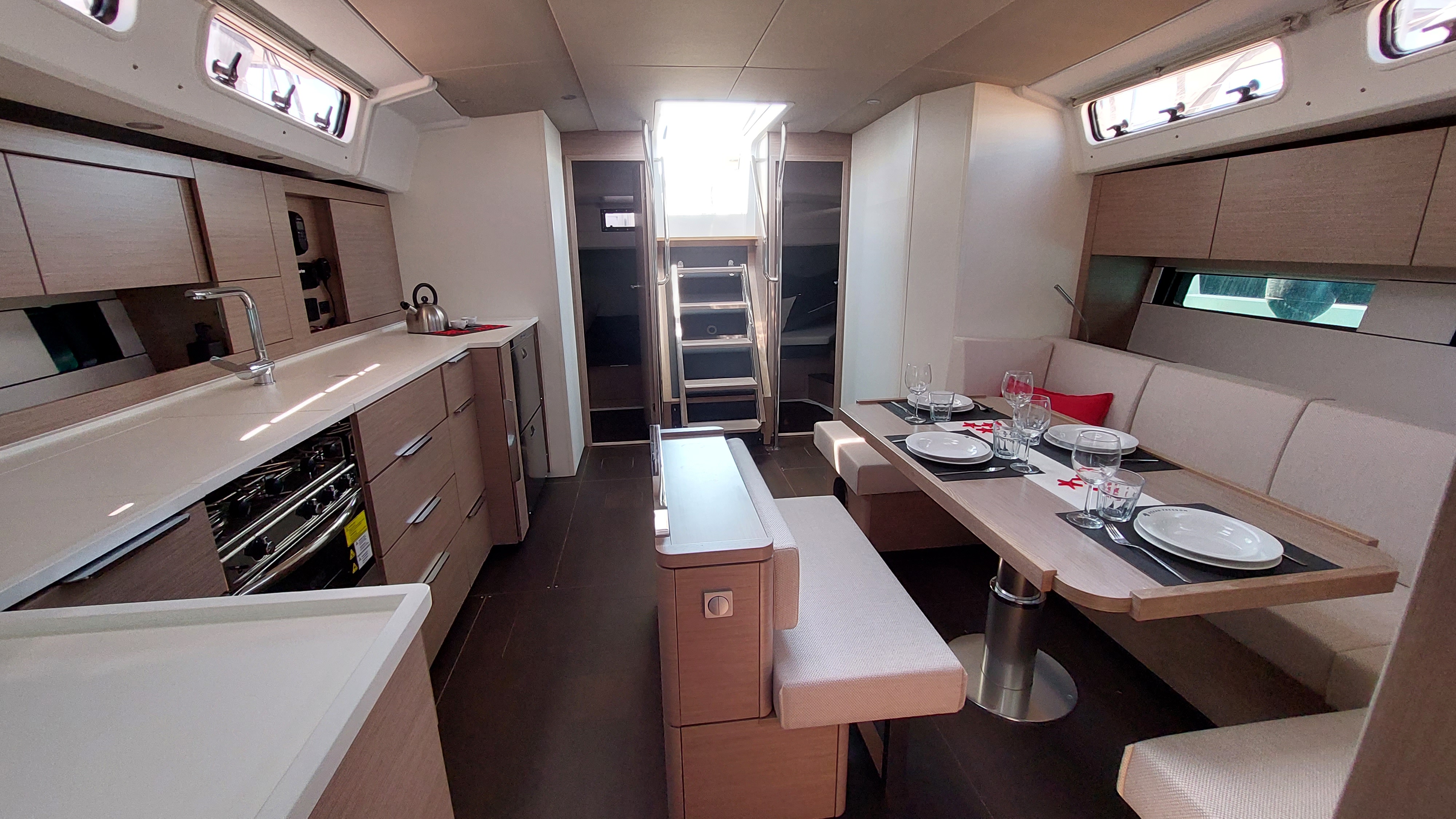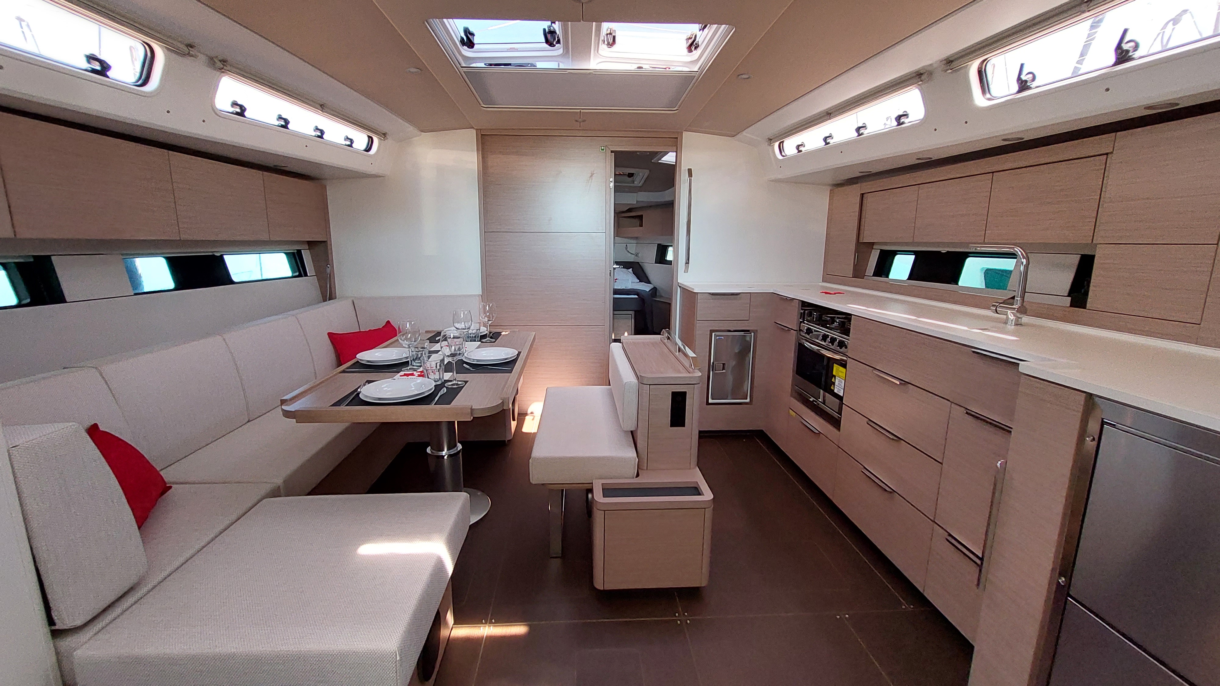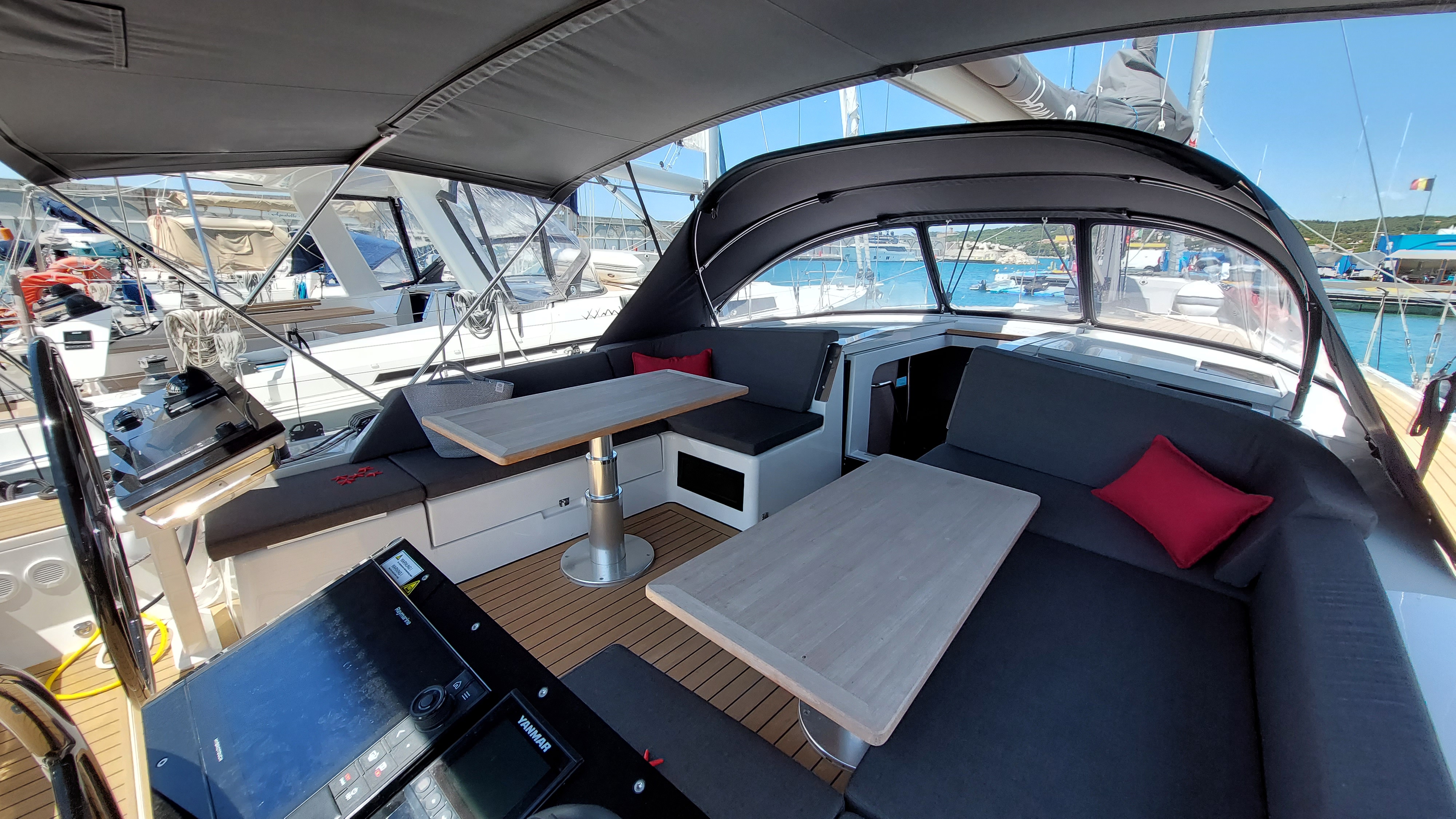 | Outside | Bathing platform, Bimini top, Cockpit speakers, Cockpit cushions, Cockpit table, Electr. anchor windlass, Sprayhood |