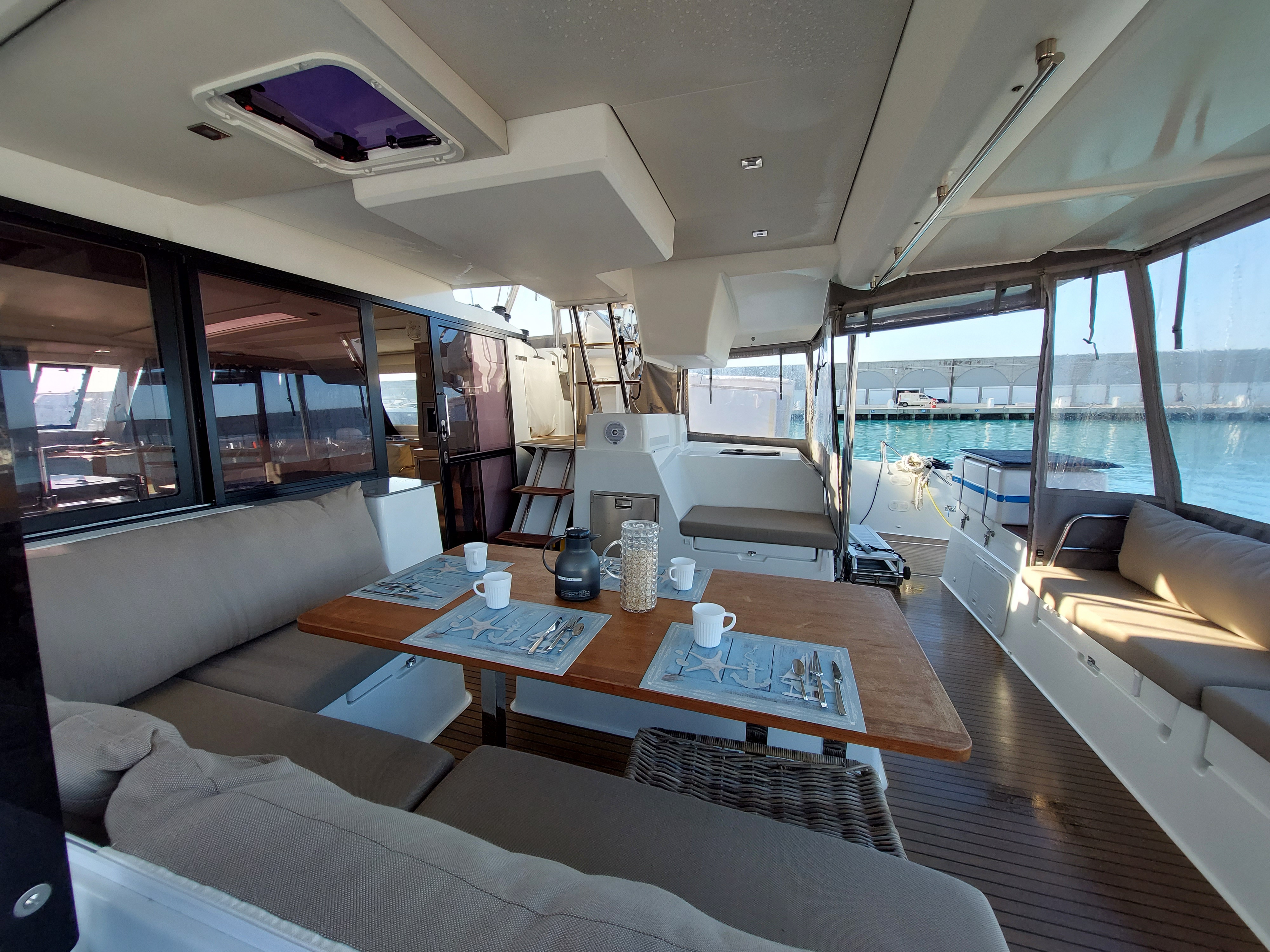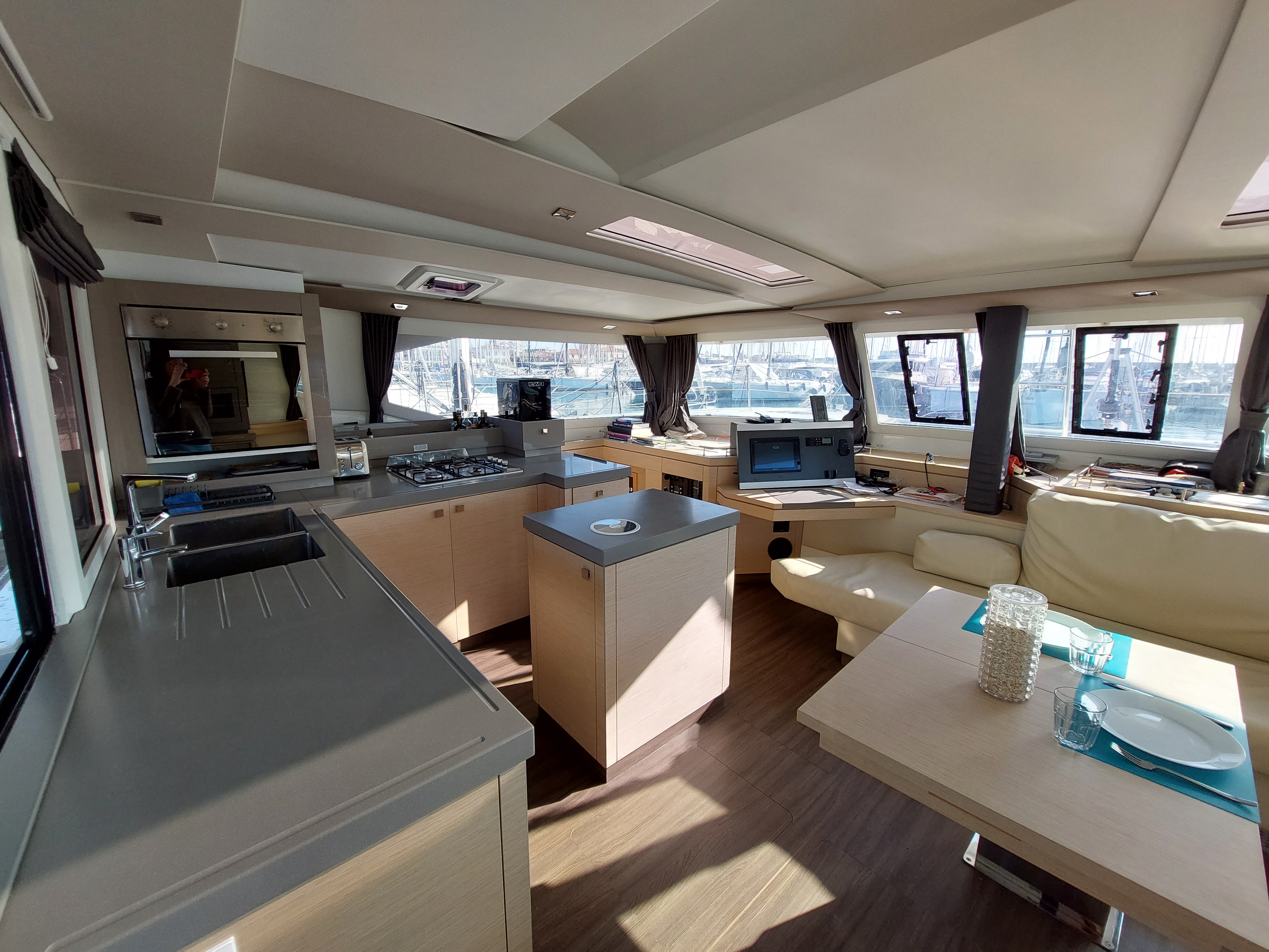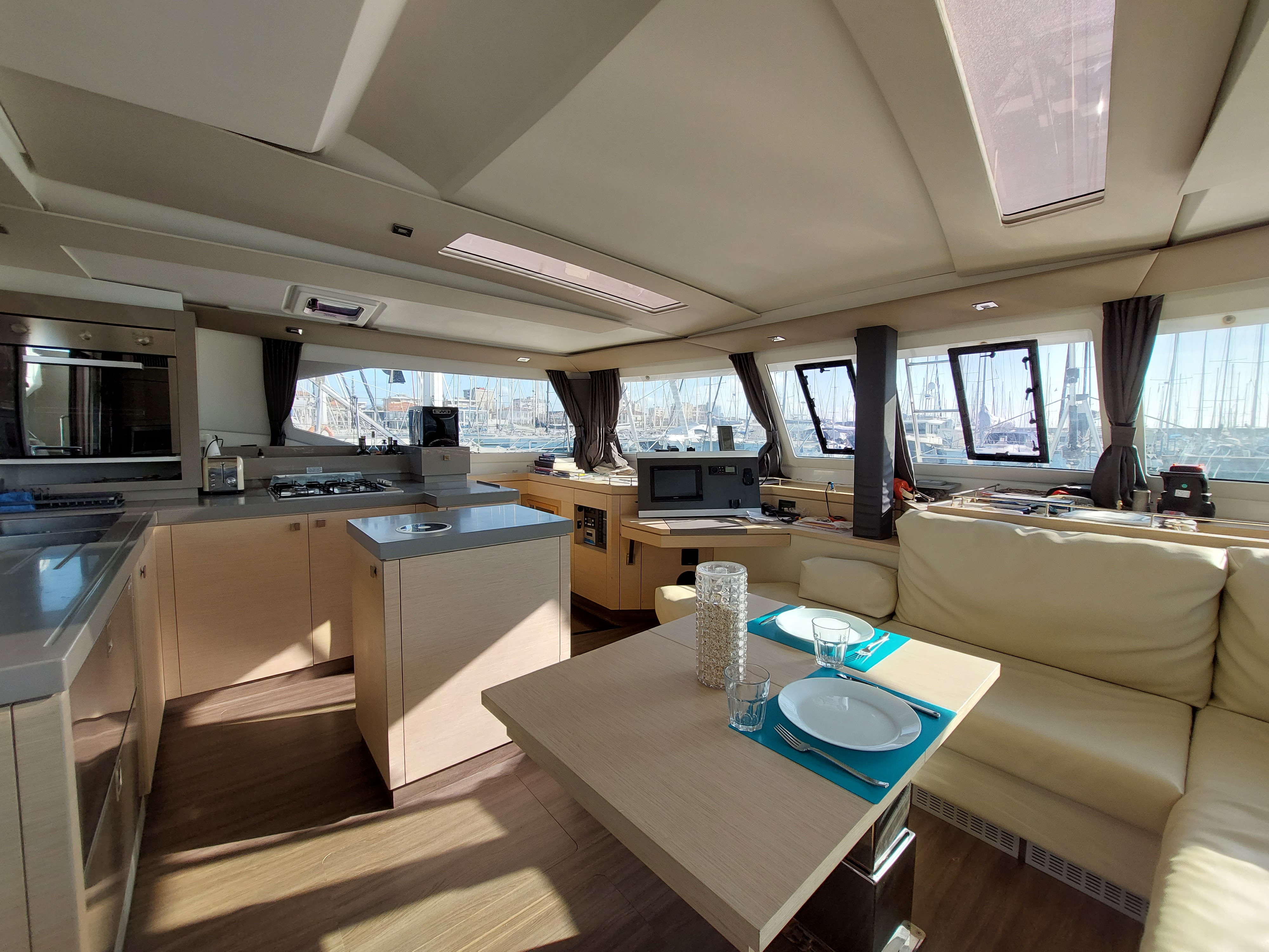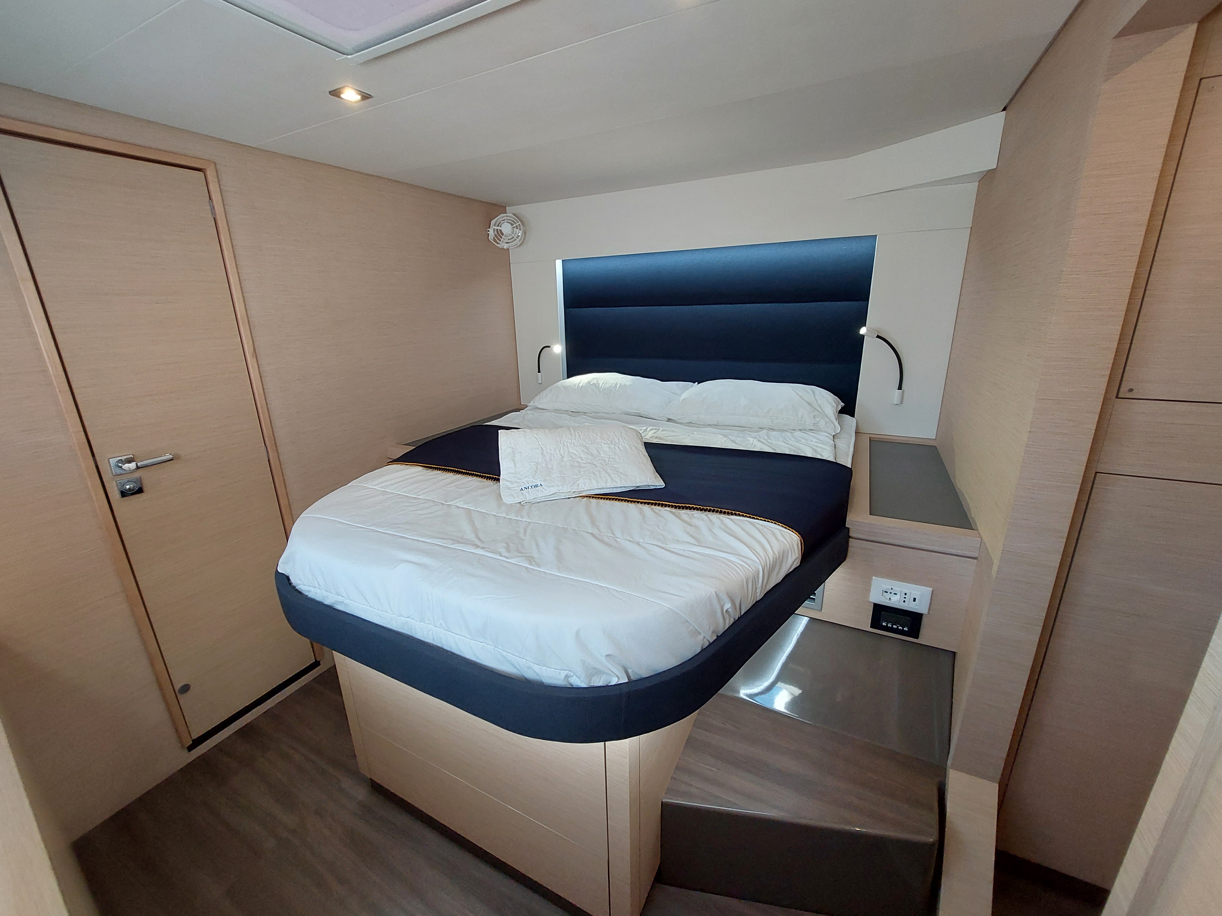 | Inside | Ice cube machine, Gas stove with oven, Generator, Dishwasher, Inverter 12V/220V, Airconditioning (independent from shore power), Refrigerator, Microwave oven, TV, Watermaker, WC (electr.) |