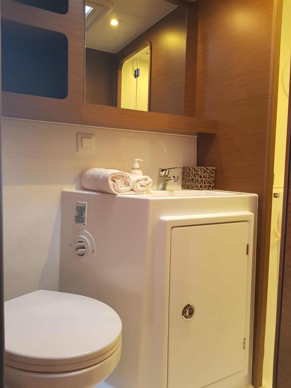| Inside | Black water tank, Freezer, Generator, Heating, Inverter 12V/220V, Coffee machine, Airconditioning (independent from shore power), Refrigerator, Radio with CD player, fans in cabins, Warm water, Watermaker, WC (electr.) |