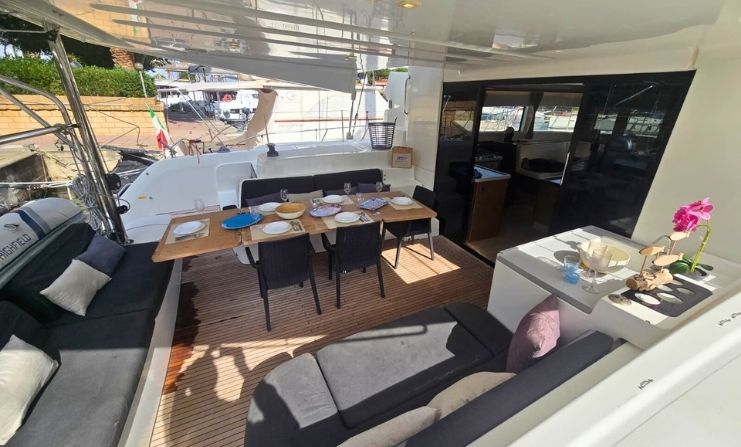 | Outside | Bimini top, Cockpit cushions, BBQ |