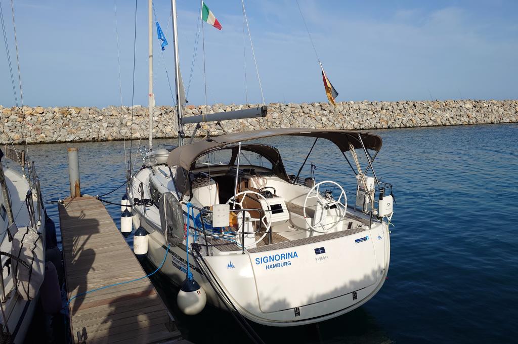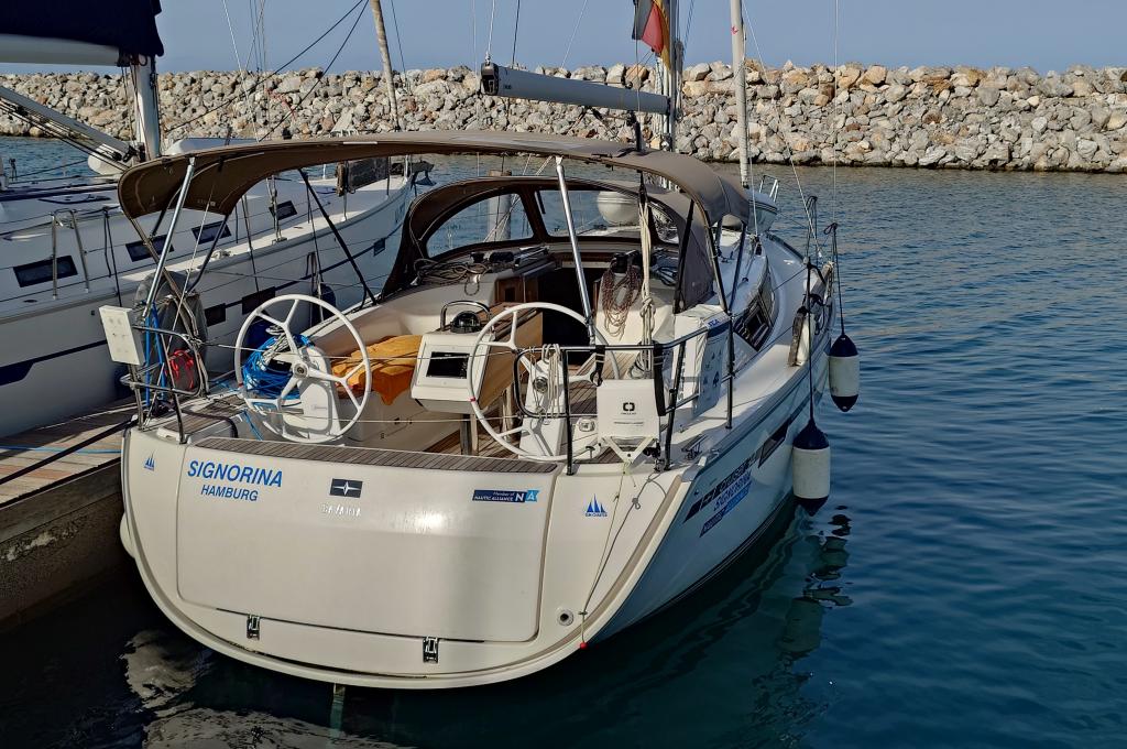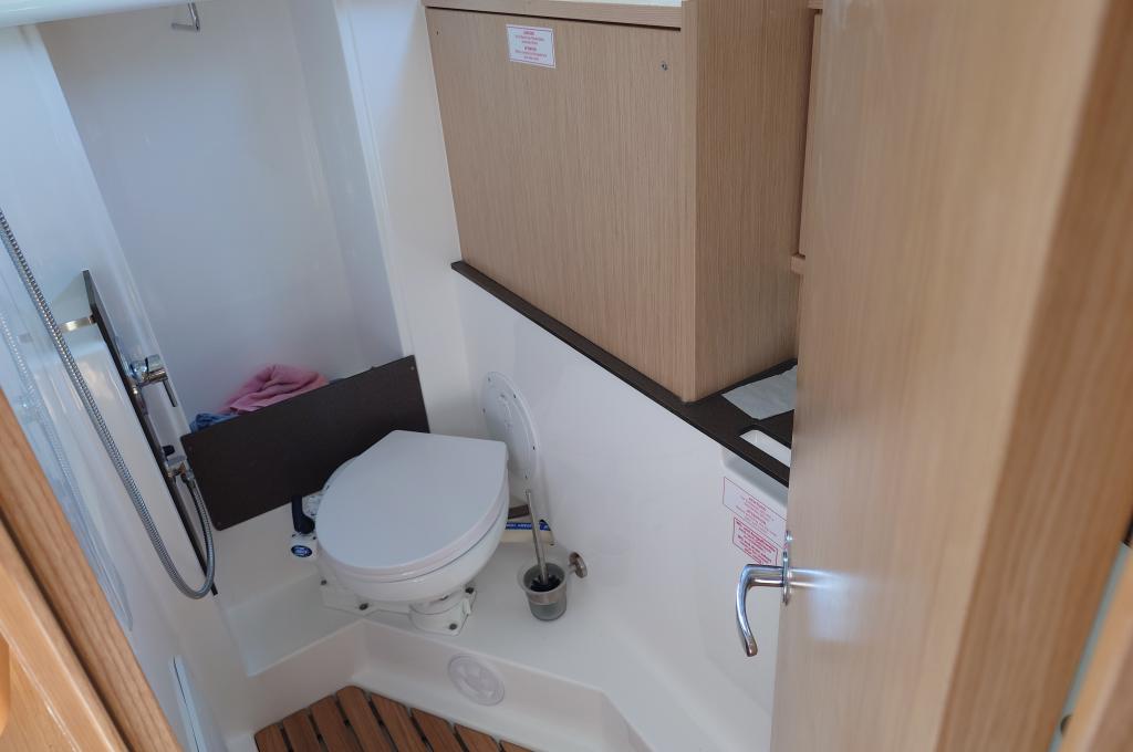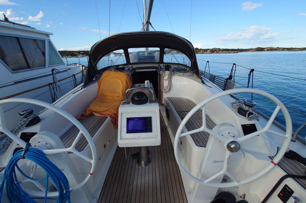 | Outside | 220V shore connection, Anchor with chain, Anchor winch, Bimini top, Boat hook, Cockpit shower, Cockpit speakers, Cockpit table, Electr. anchor windlass, Fender, Mooring lines, Gangway, Ball fender, Plastic bucket, Lifeline system, Sprayhood, Teak in cockpit, Wire (shroud) cutter, Canister for water, Water hose, Windex |