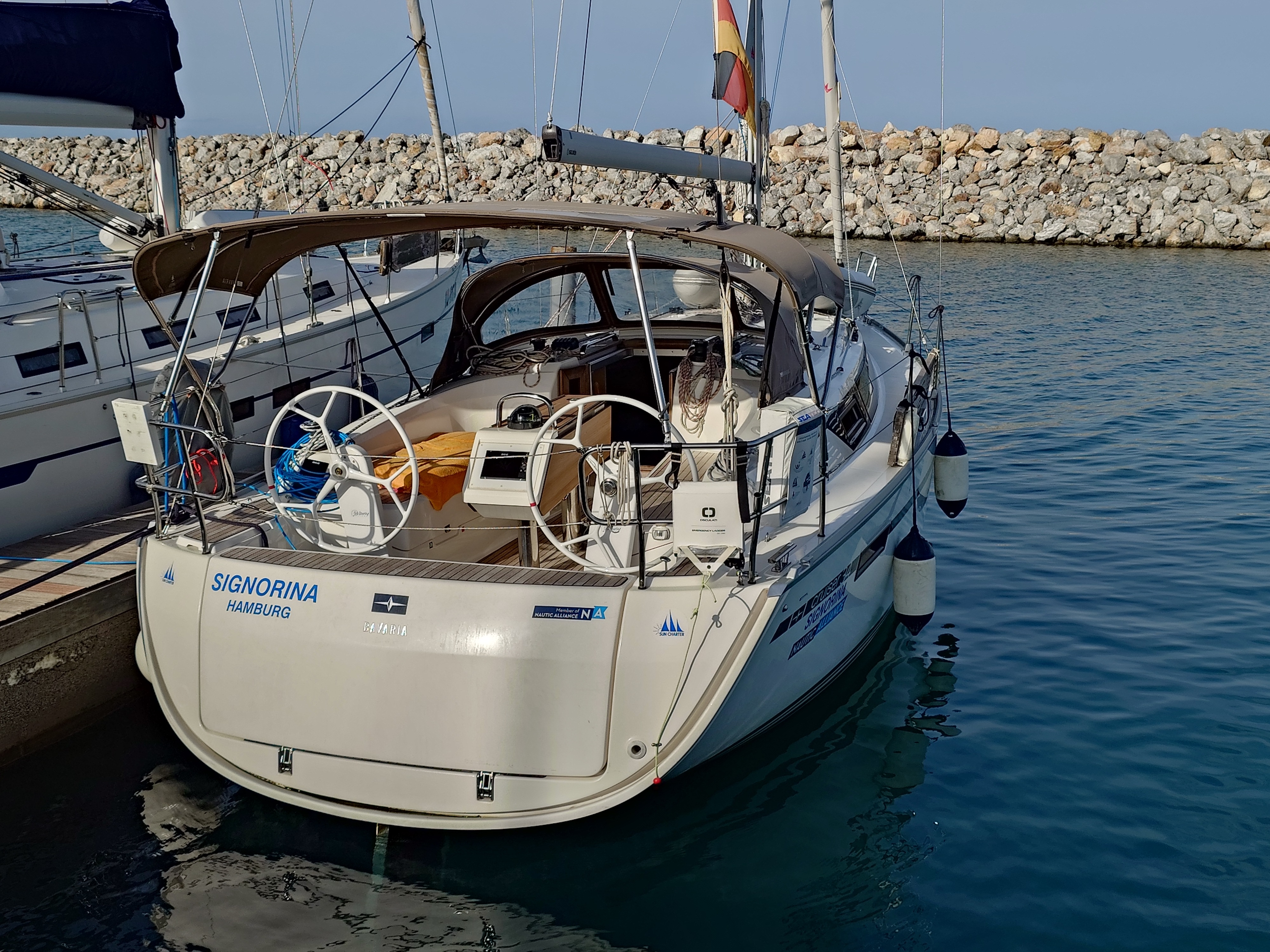 | Safety | Automatic life jackets, Autopilot, Lightning buoy, Bosun's chair, First aid kit, Tools, Fire extinguisher, Lifebelts, Engine spare parts , Fog horn, Distress signals, Radar reflector, Repair box for dinghy, Life raft, Searchlight, Torchlight, VHF with AIS, Second anchor |