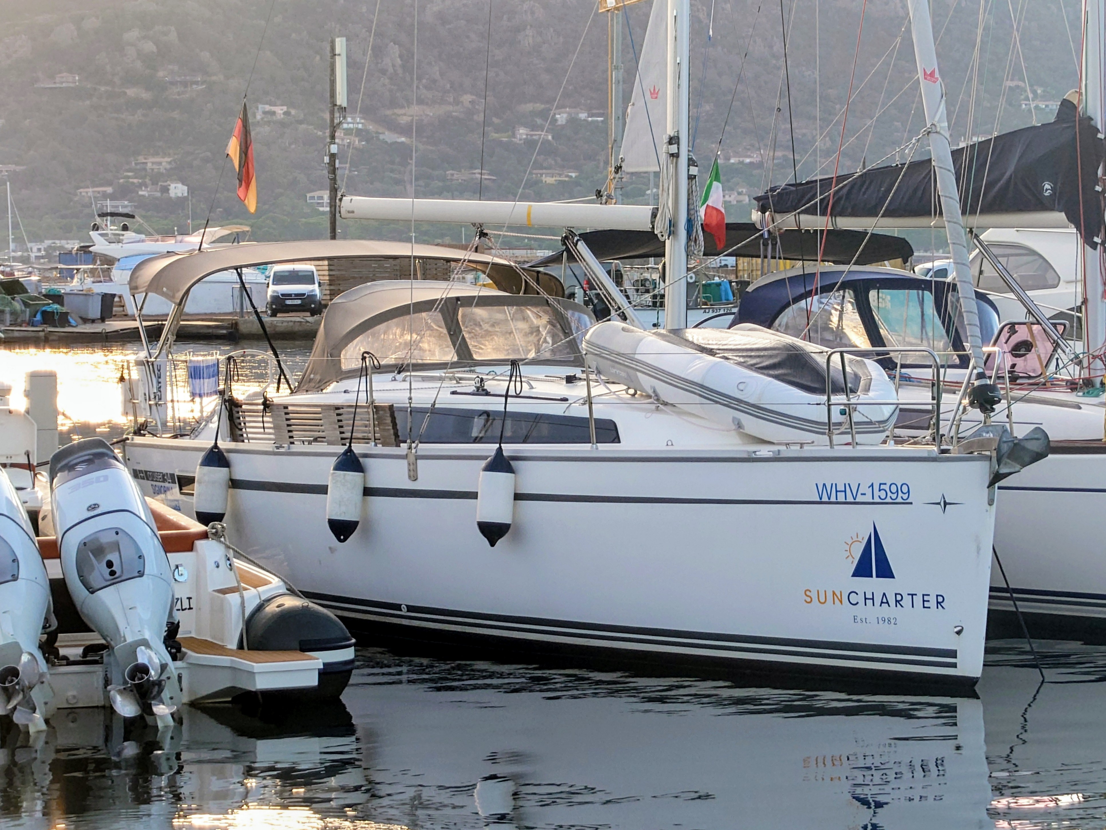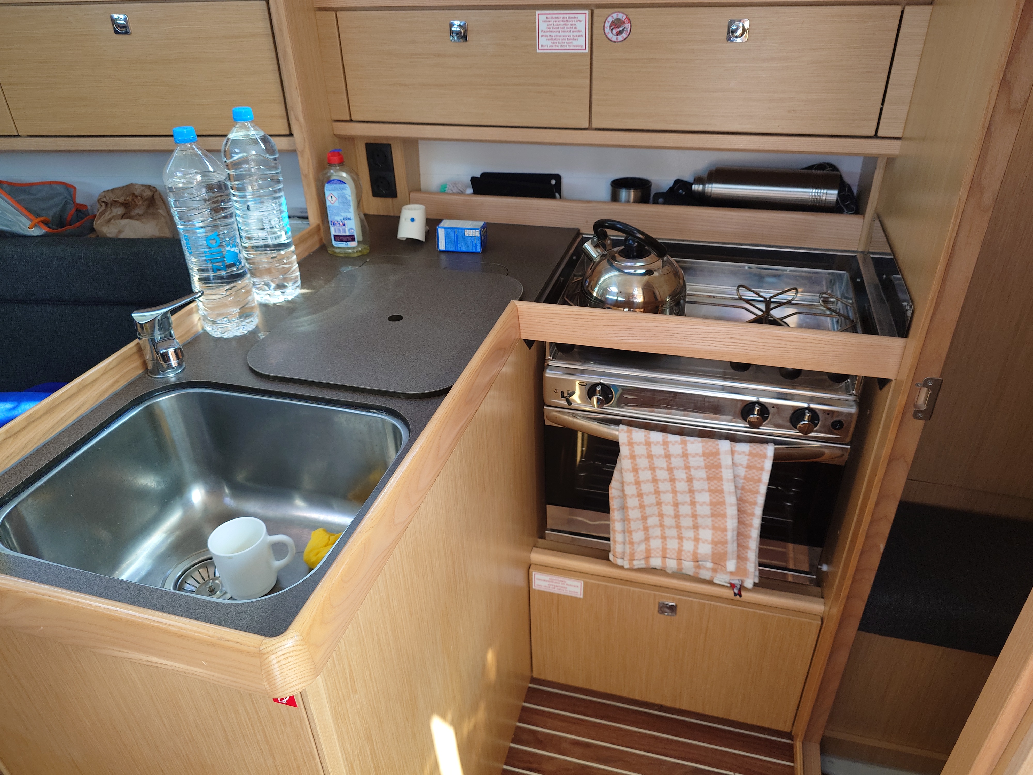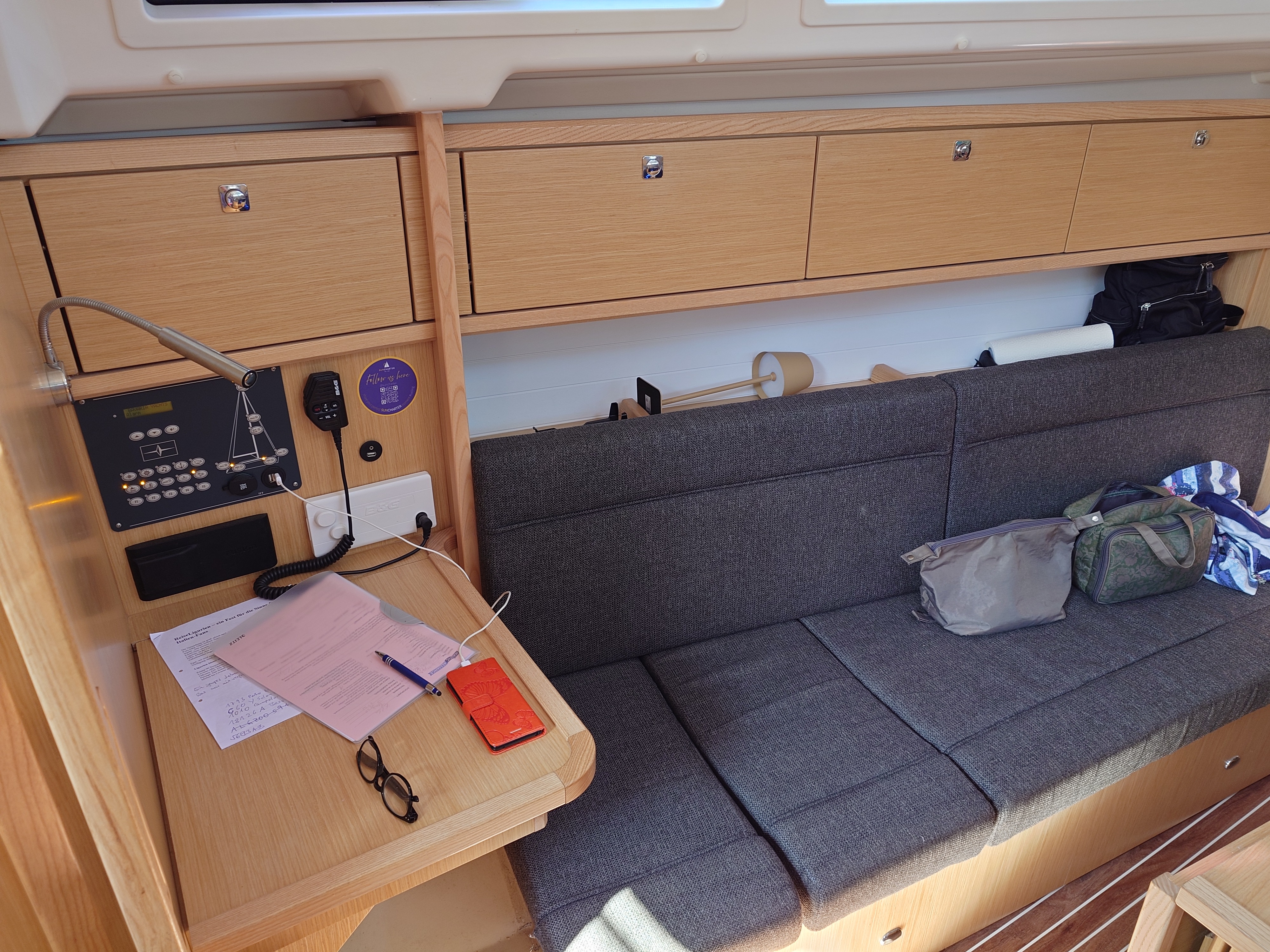 | Inside | Clock, Refrigerator, Battery charger, Dinghy (byboat) pump, Pantry equipment, Radio with USB, Bluetooth and AUX-In, USB Socket, Warm water |