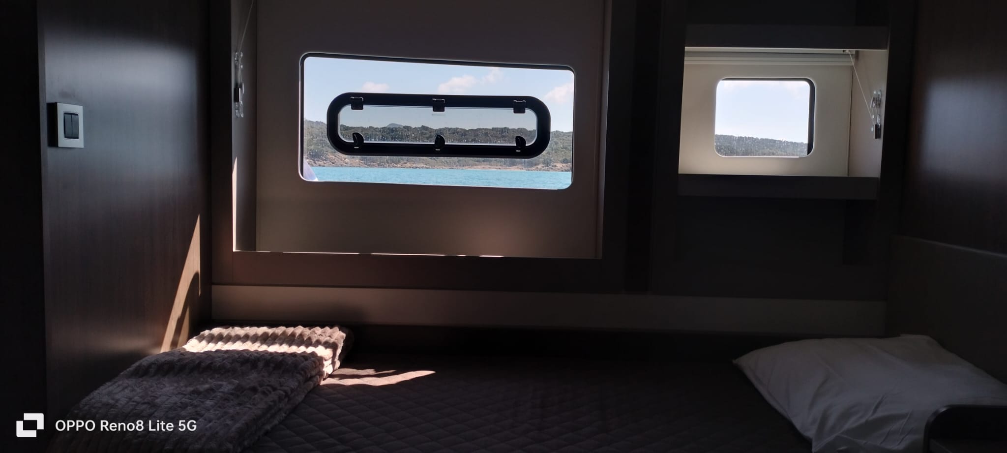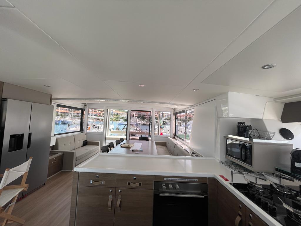 | Inside | Oven, Freezer, Generator, Heating, Inverter 12V/220V, Airconditioning (independent from shore power), Refrigerator, Speakers in saloon, Microwave oven, Pantry equipment, Radio with bluetooth, Watermaker, WC (electr.) |