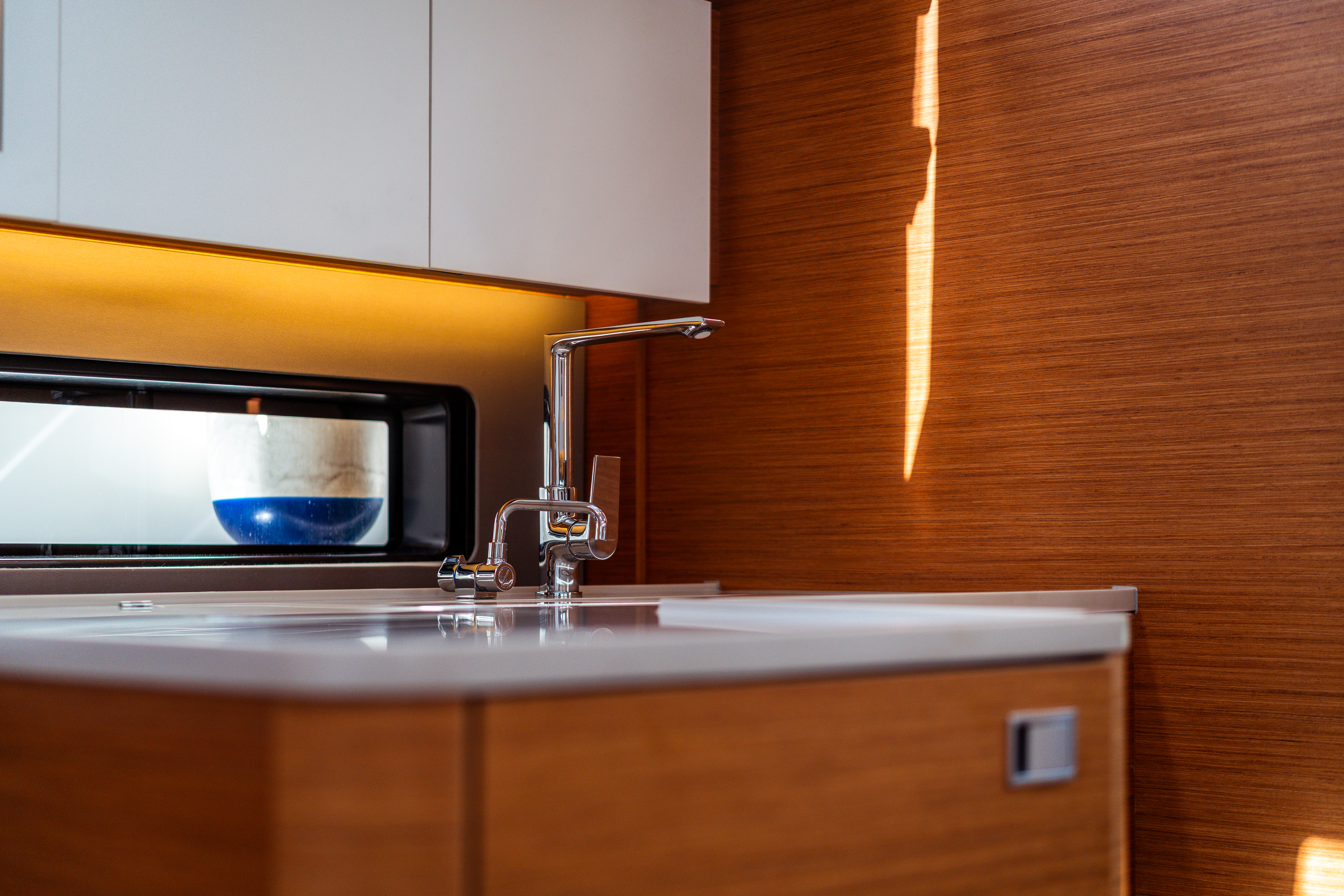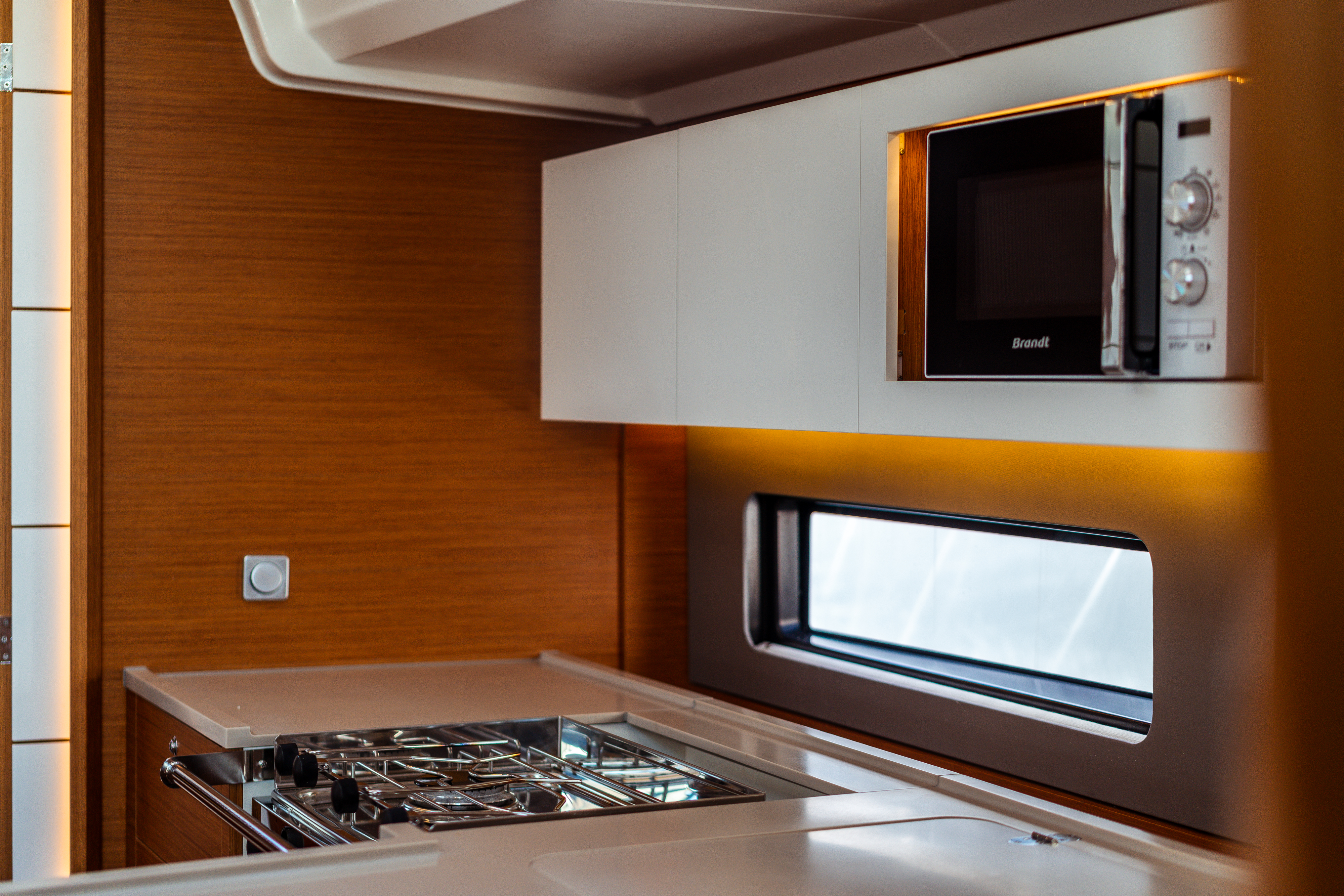 | Inside | Gas stove with oven, Inverter 12V/220V, Speakers in saloon, Microwave oven, Pantry equipment, Radio with bluetooth, Convertible salon table, USB sockets in the cabins, Cabin & dining area fan |