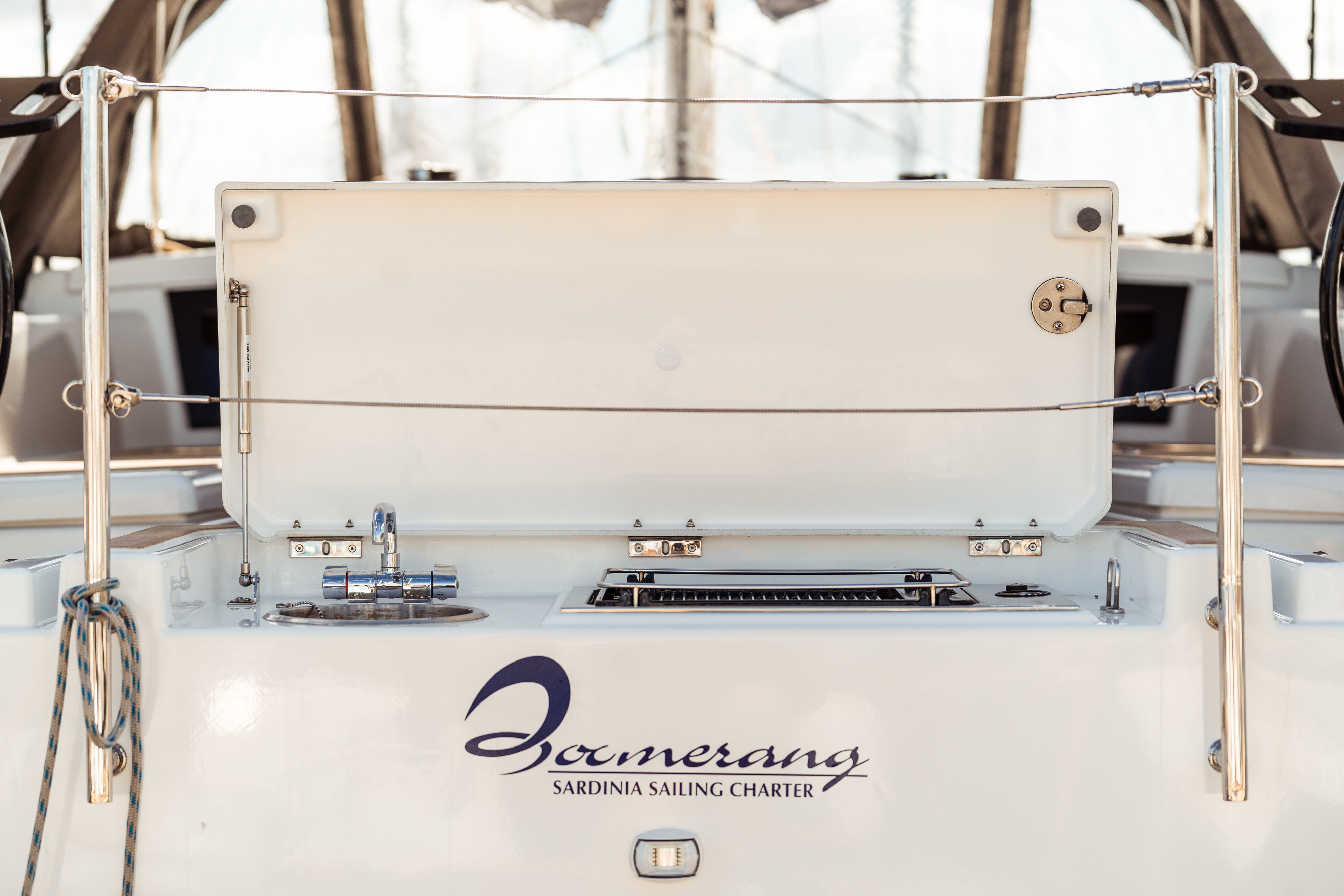 | Outside | Anchor with chain, Bimini top, Boat hook, Brush and sponge, Cockpit shower, Cockpit speakers, Cockpit light, Cockpit table, Electr. anchor windlass, Fender, Mooring lines, Gangway, BBQ, Hardtop, Snorkeling gear, Sprayhood, Water hose, Windex |
