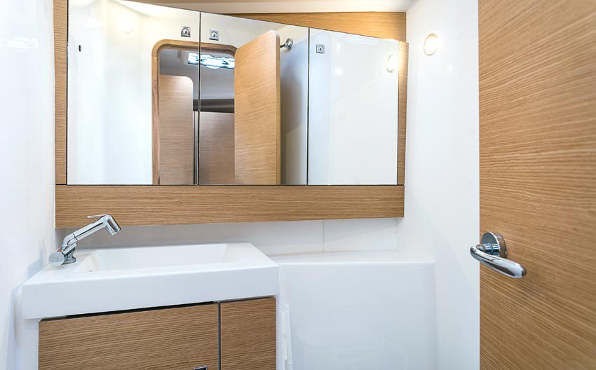 | Inside | Gas stove with oven, Refrigerator, Speakers in saloon, Microwave oven, Pantry equipment, Radio with CD player, Radio with USB, Convertible salon table, Cabin & dining area fan , Warm water, Kettle, WC (electr.) |