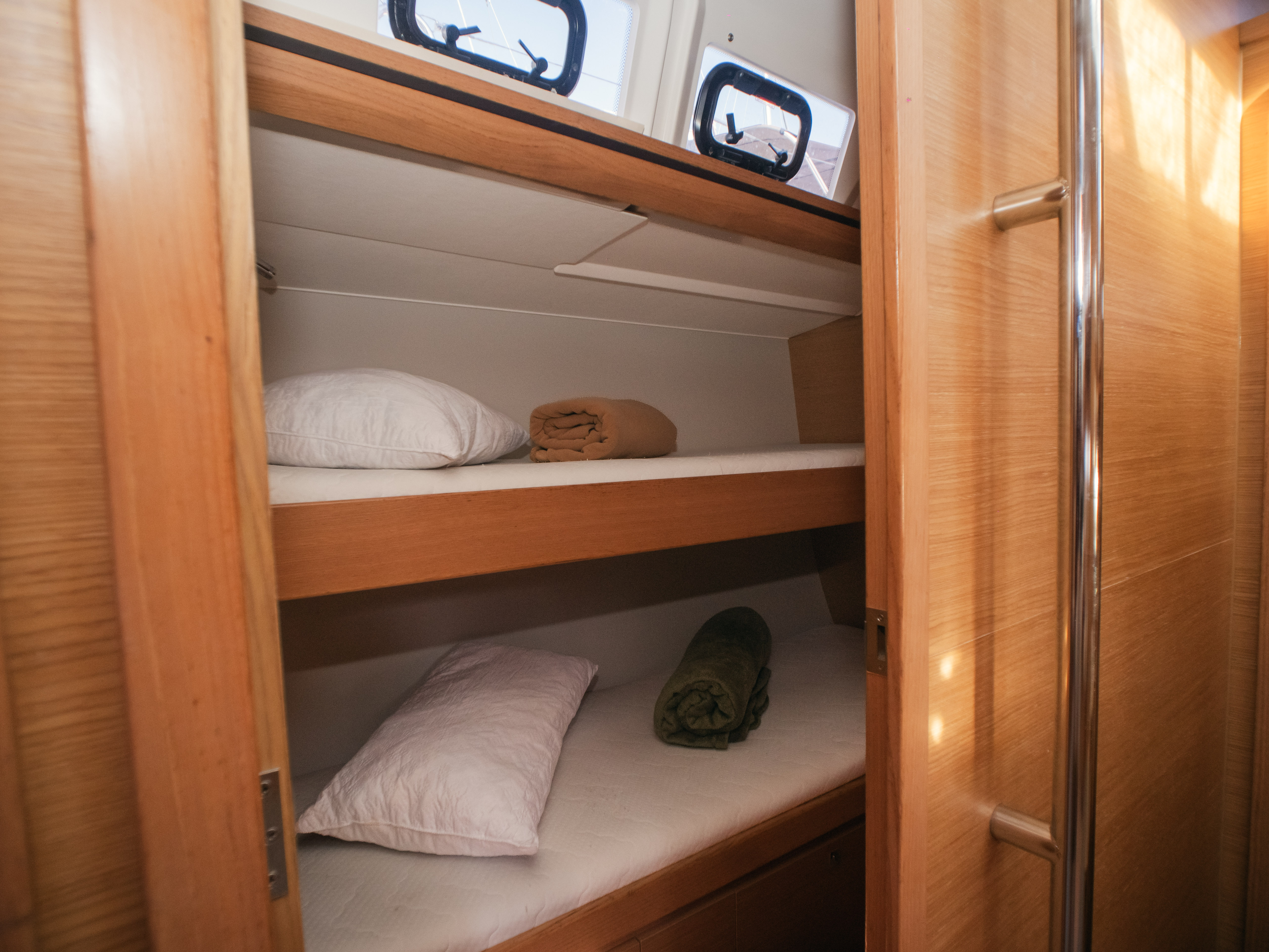 | Safety | Automatic life jackets, Autopilot, First aid kit, Tools, Bowthruster, Fire extinguisher, Flags, Fog horn, Emergency tiller, Distress signals, Life buoy light, Life raft, Safety belt, Torchlight, VHF Radio, Second anchor |