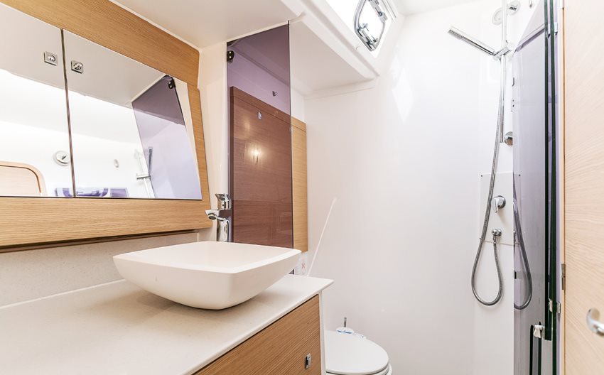 | Inside | Gas stove with oven, Freezer, Generator, Inverter 12V/220V, Coffee machine, Airconditioning (independent from shore power), Refrigerator, Speakers in saloon, Microwave oven, Pantry equipment, Radio with USB, Convertible salon table, Cabin & dining area fan , WC (electr.) |