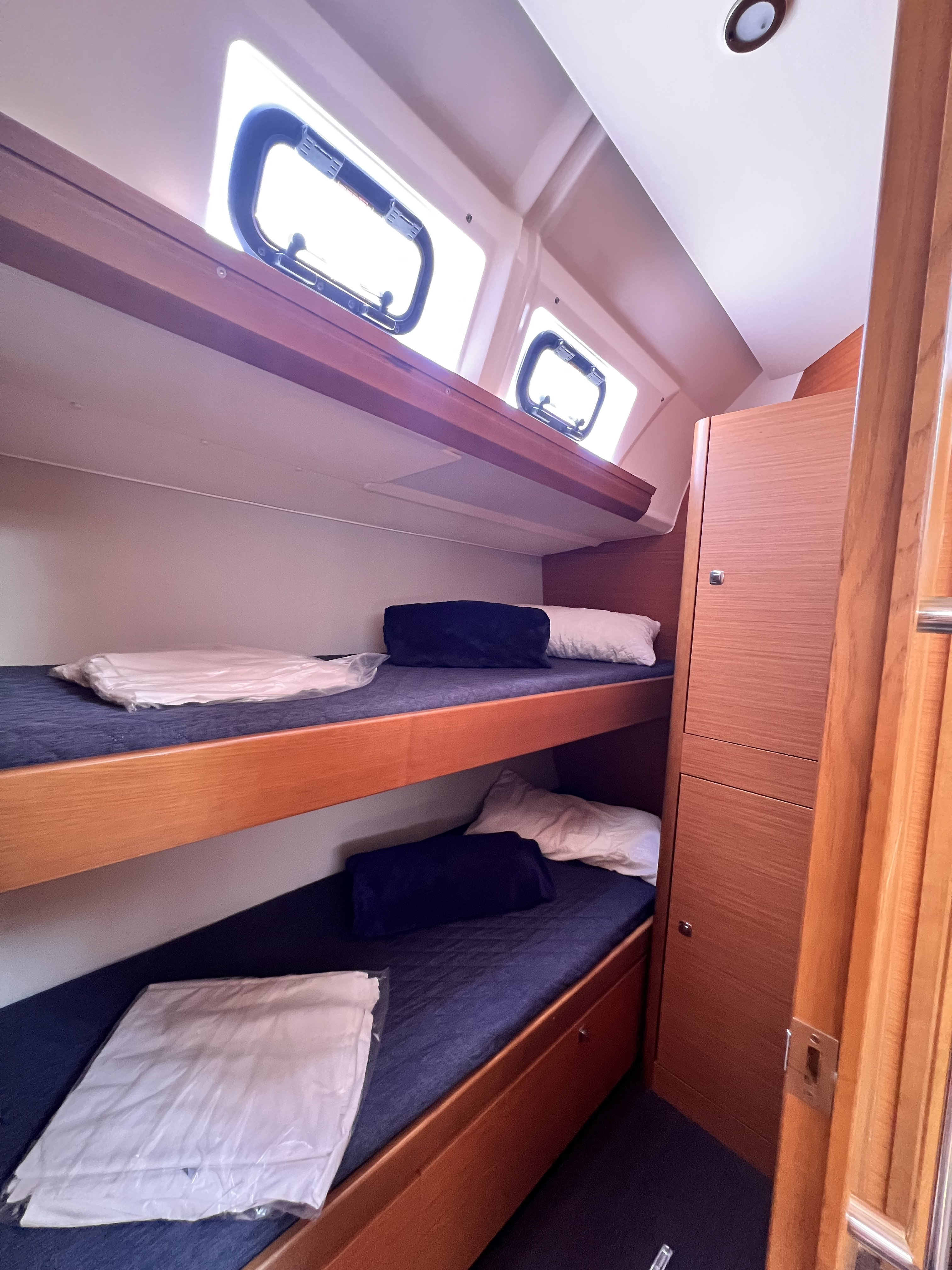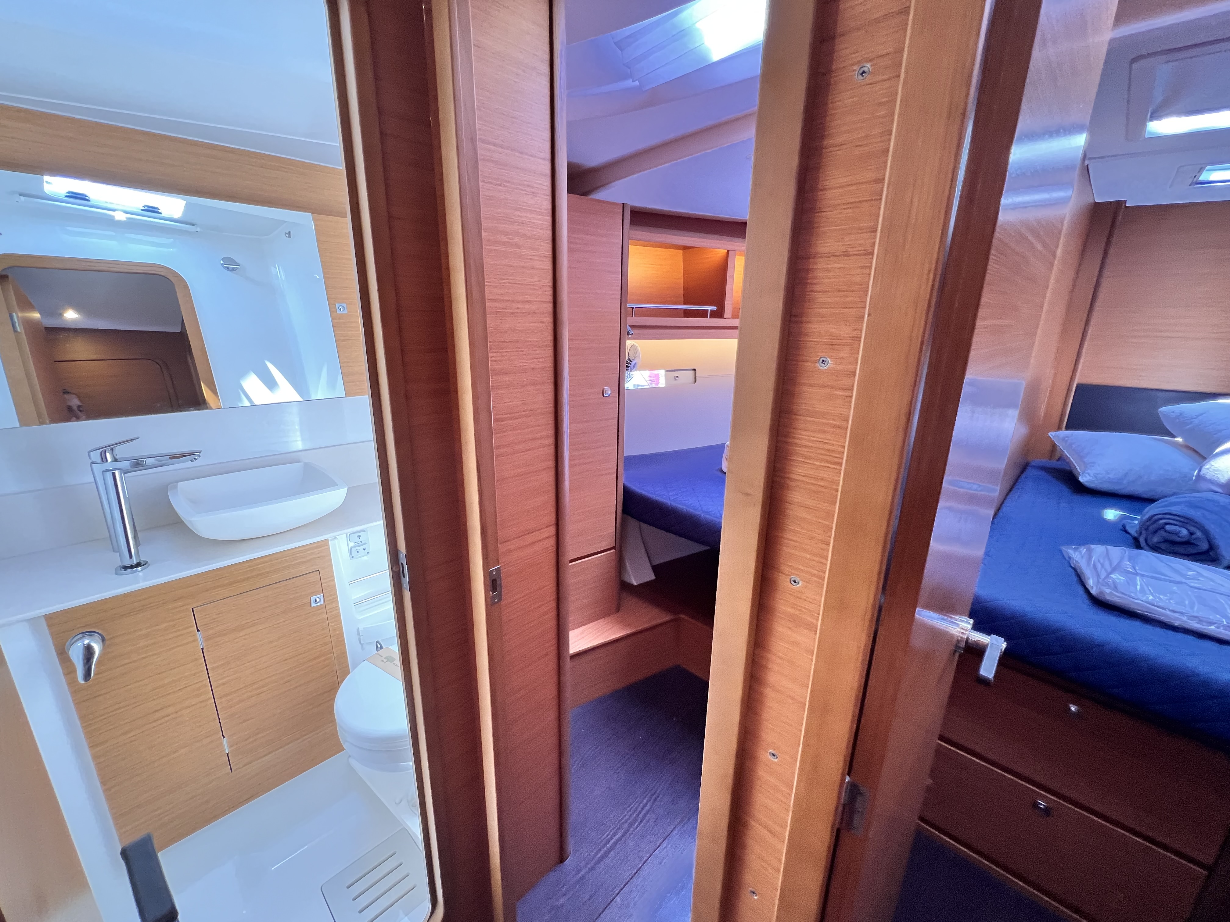| Safety | Automatic life jackets, Autopilot, First aid kit, Tools, Bowthruster, Fire extinguisher, Flags, Fog horn, Emergency tiller, Distress signals, Life buoy light, Life raft, Safety belt, Torchlight, VHF Radio, Second anchor |
