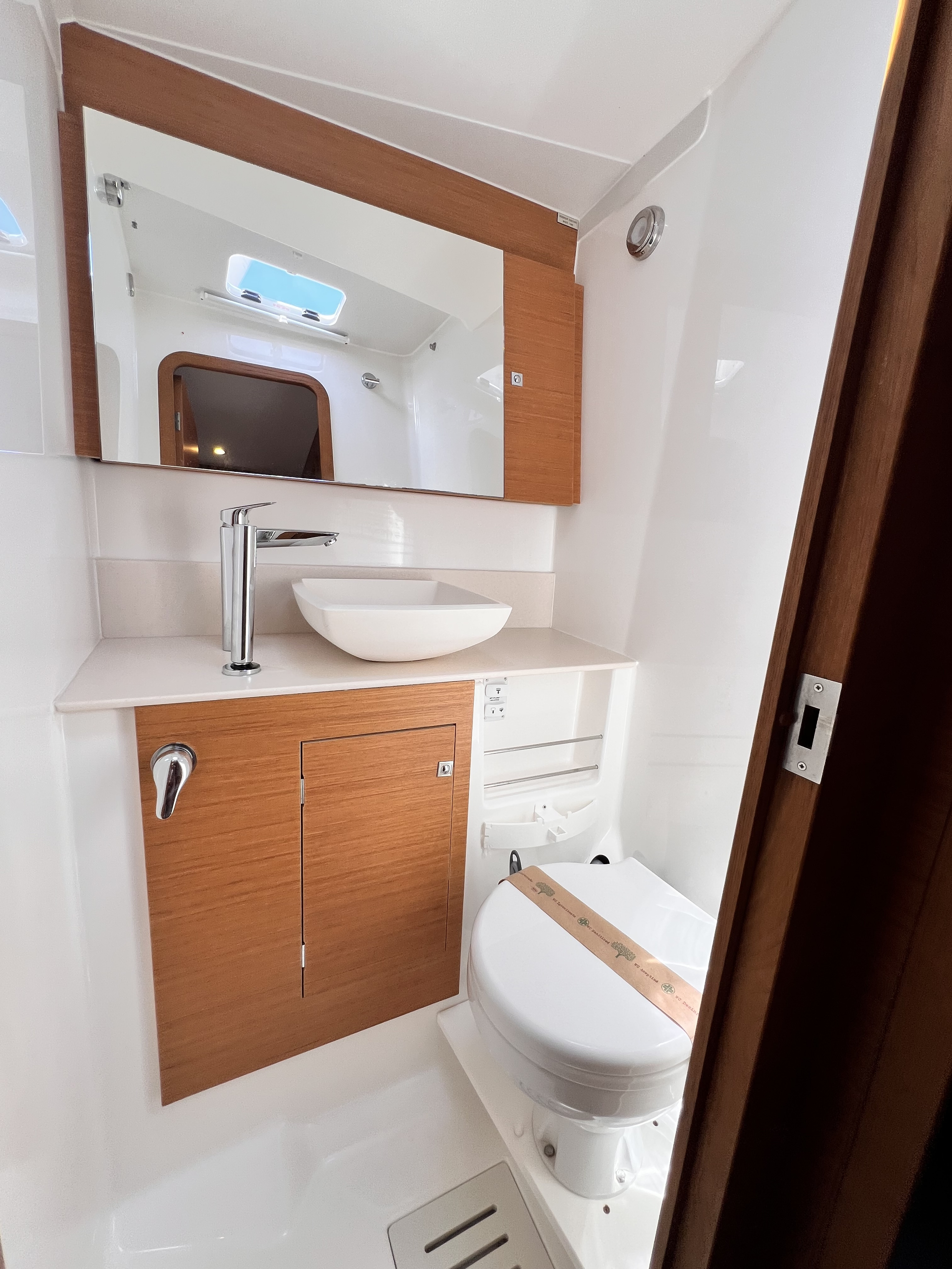 | Inside | Gas stove with oven, Freezer, Generator, Inverter 12V/220V, Coffee machine, Airconditioning (independent from shore power), Refrigerator, Speakers in saloon, Microwave oven, Pantry equipment, Radio with USB, Convertible salon table, USB sockets in the cabins, Cabin & dining area fan , WC (electr.) |