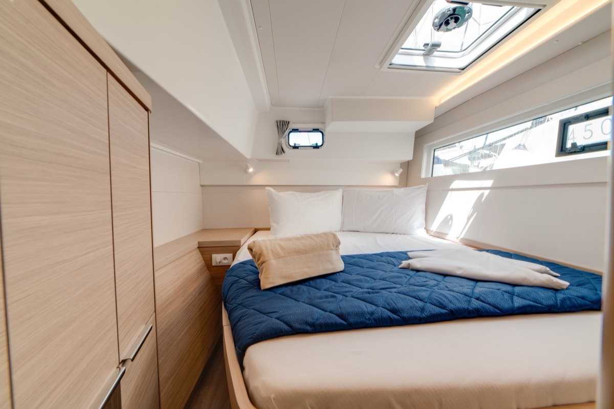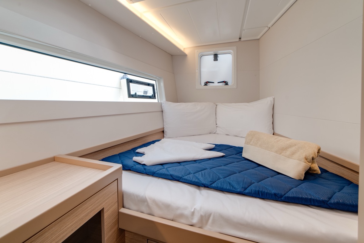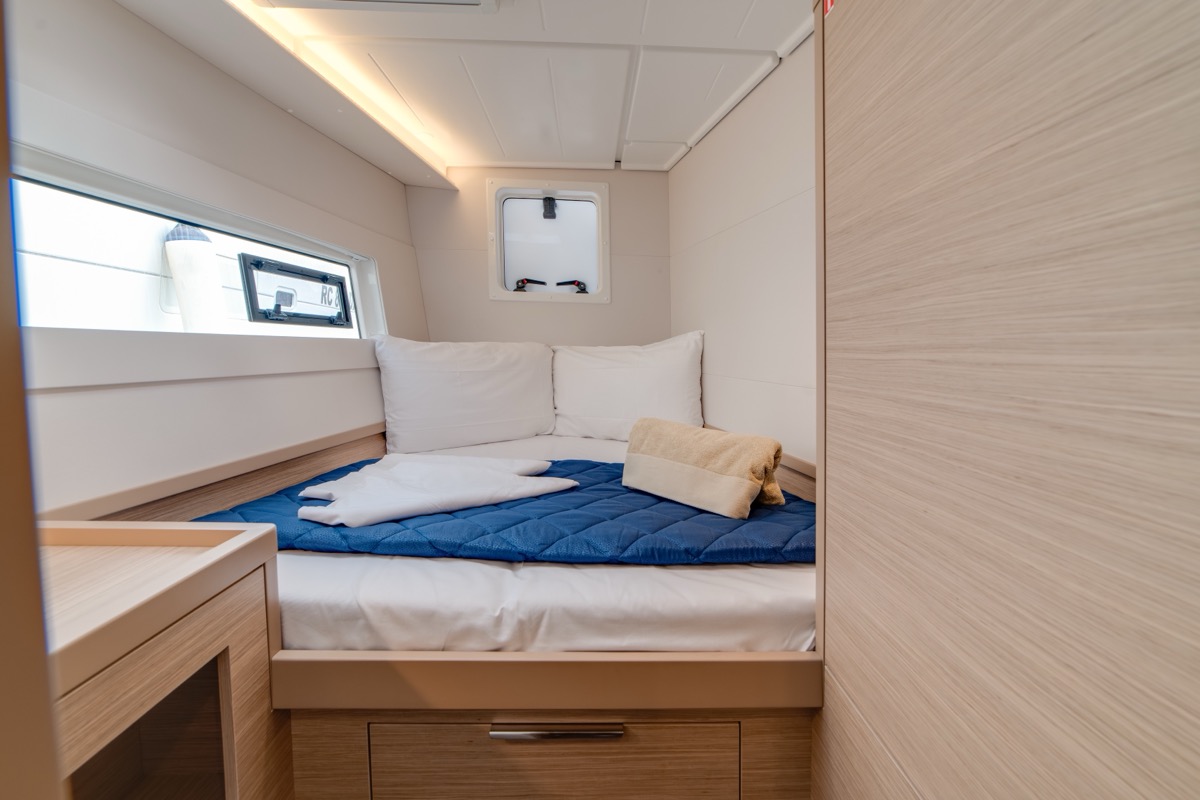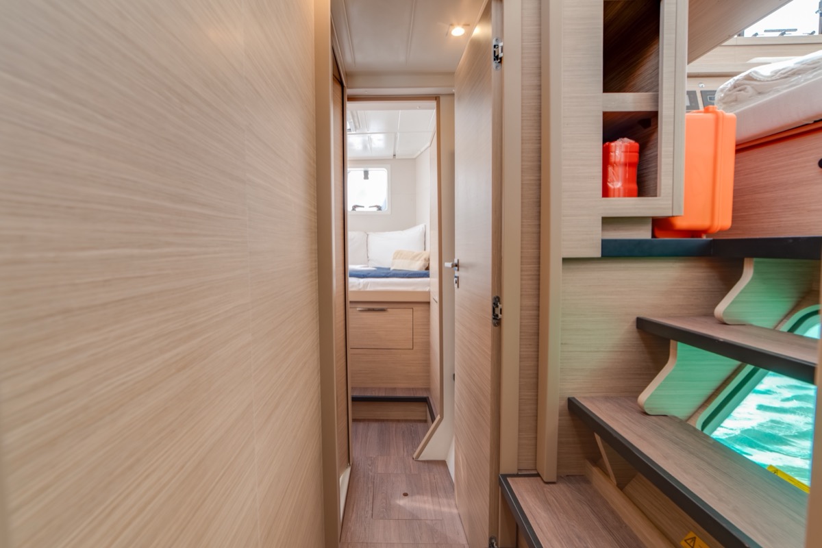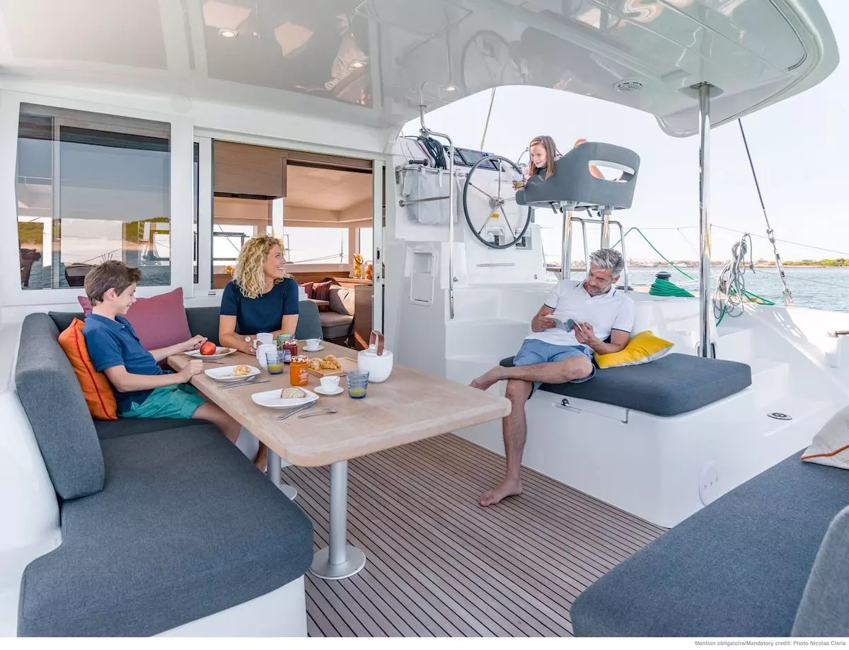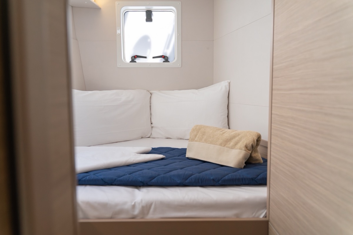 | Safety | Automatic life jackets, Autopilot, Bosun's chair, First aid kit, Solid life vests, Fire extinguisher, Emergency tiller, Distress signals, Life raft, VHF Radio, Second anchor |