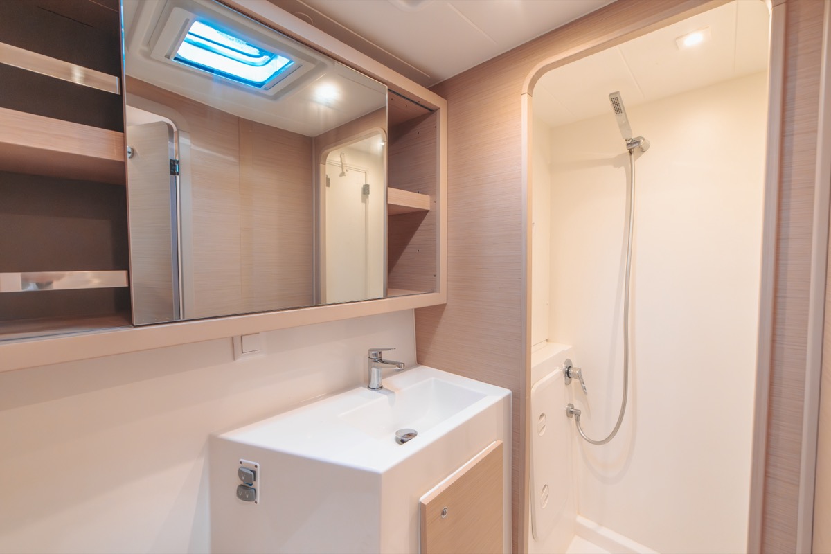 | Inside | Oven, Inverter 12V/220V, Shore power cable, Moka pot, Pantry equipment, Radio, USB sockets in the cabins, fans in cabins, Warm water, Watermaker, WC (electr.) |