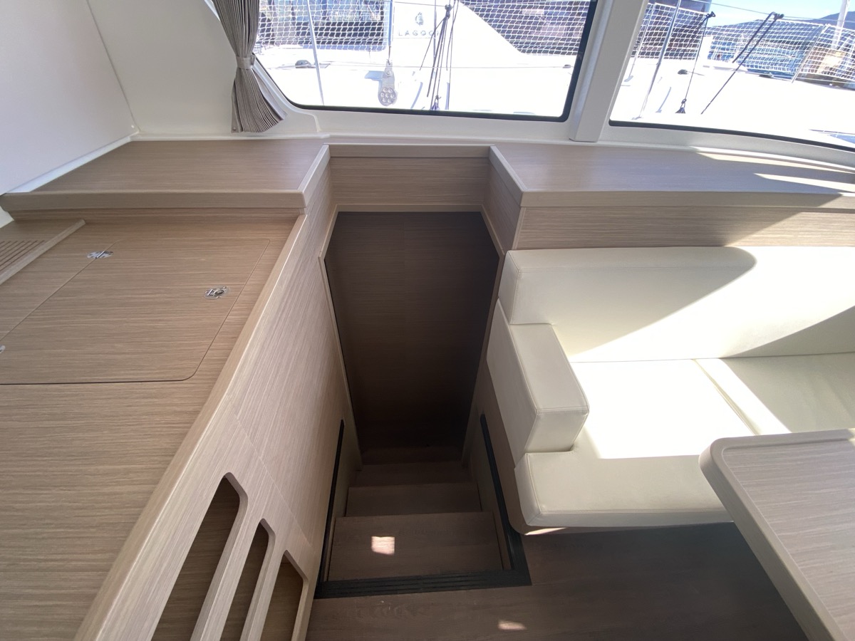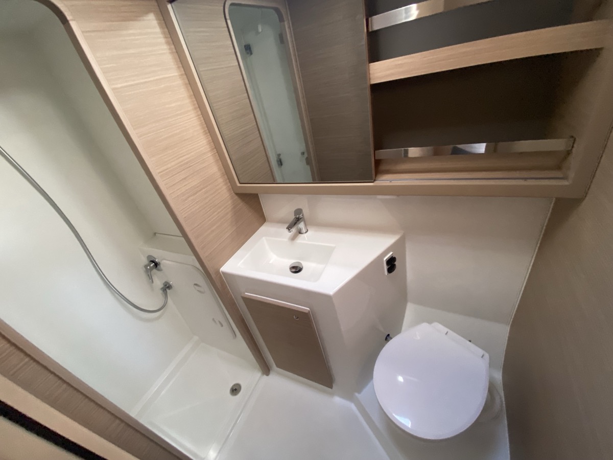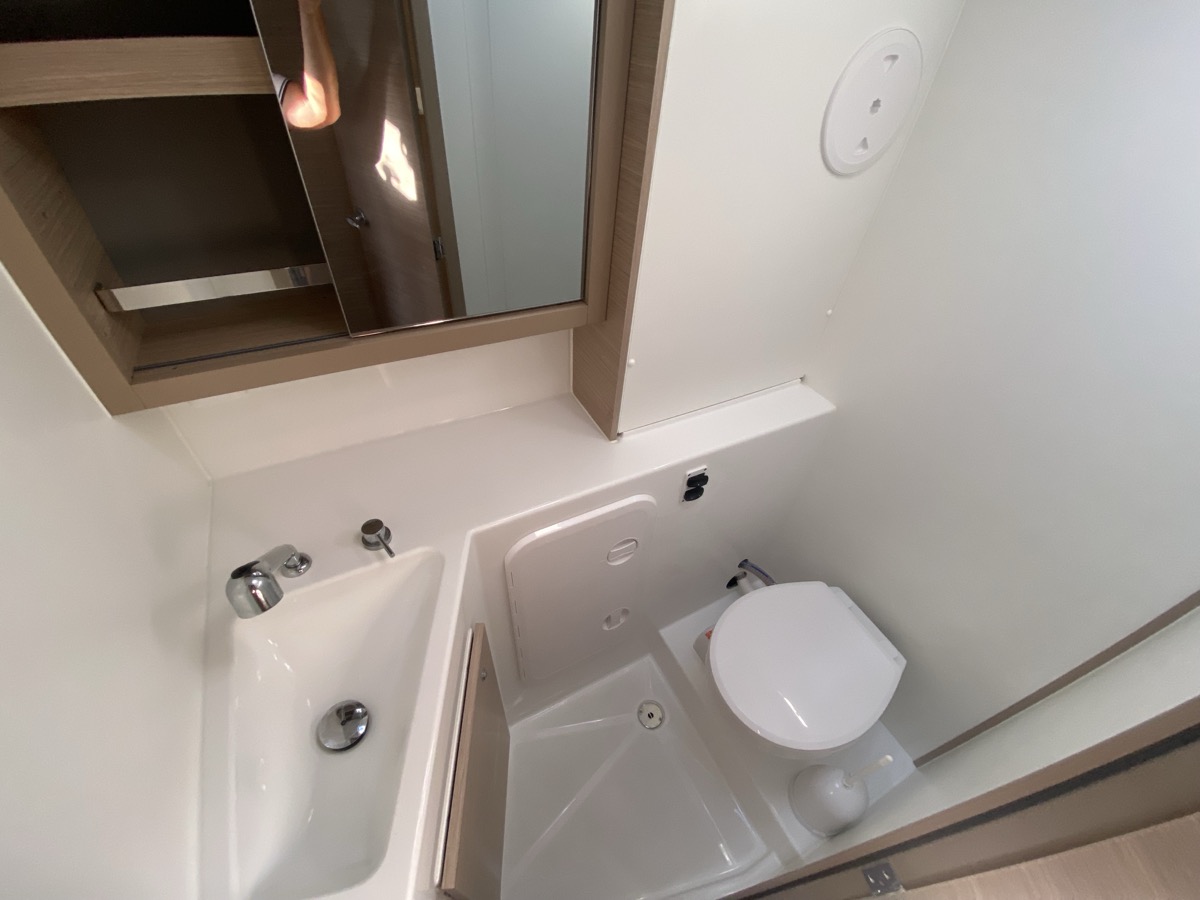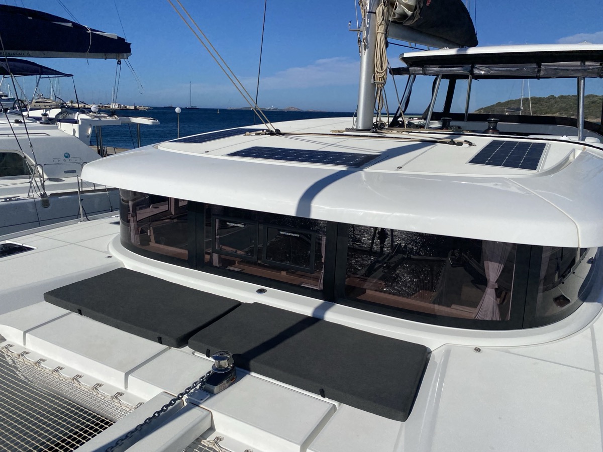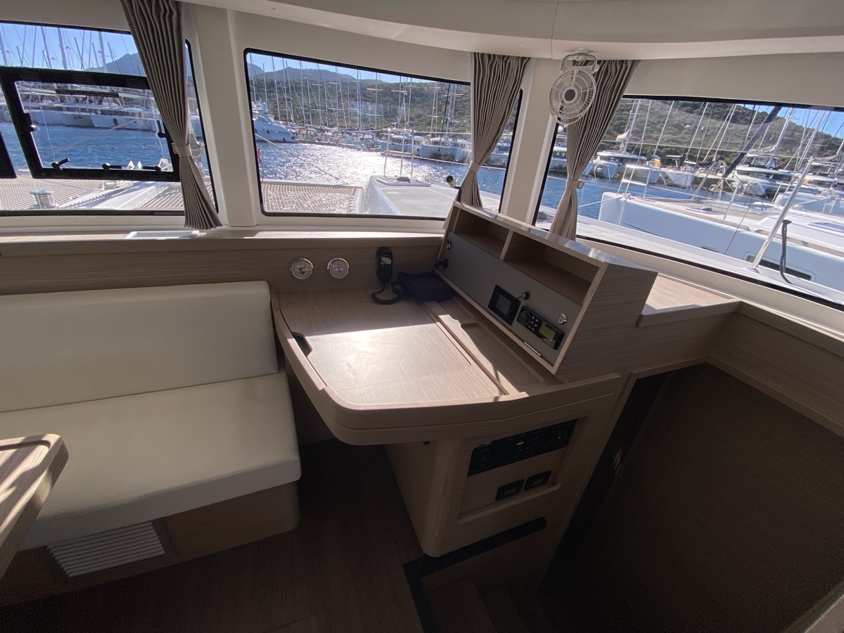 | Inside | Oven, Inverter 12V/220V, Coffee machine, Dock A/C 220V (cool&heat), Shore power cable, Moka pot, Pantry equipment, Radio, Convertible salon table, USB sockets in the cabins, Fan, fans in cabins, Warm water, Watermaker, WC (electr.), Inverter |