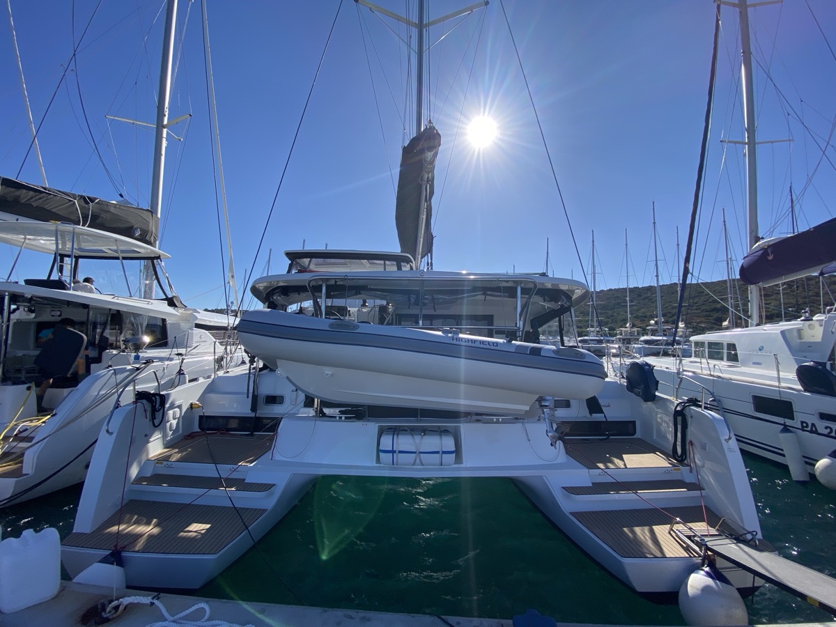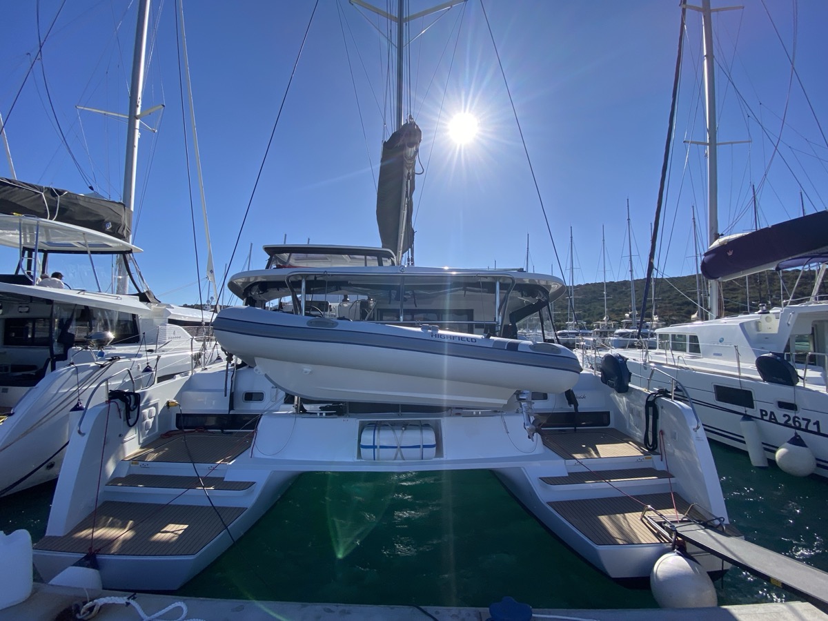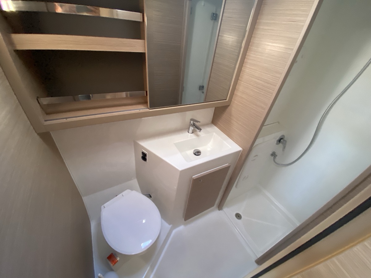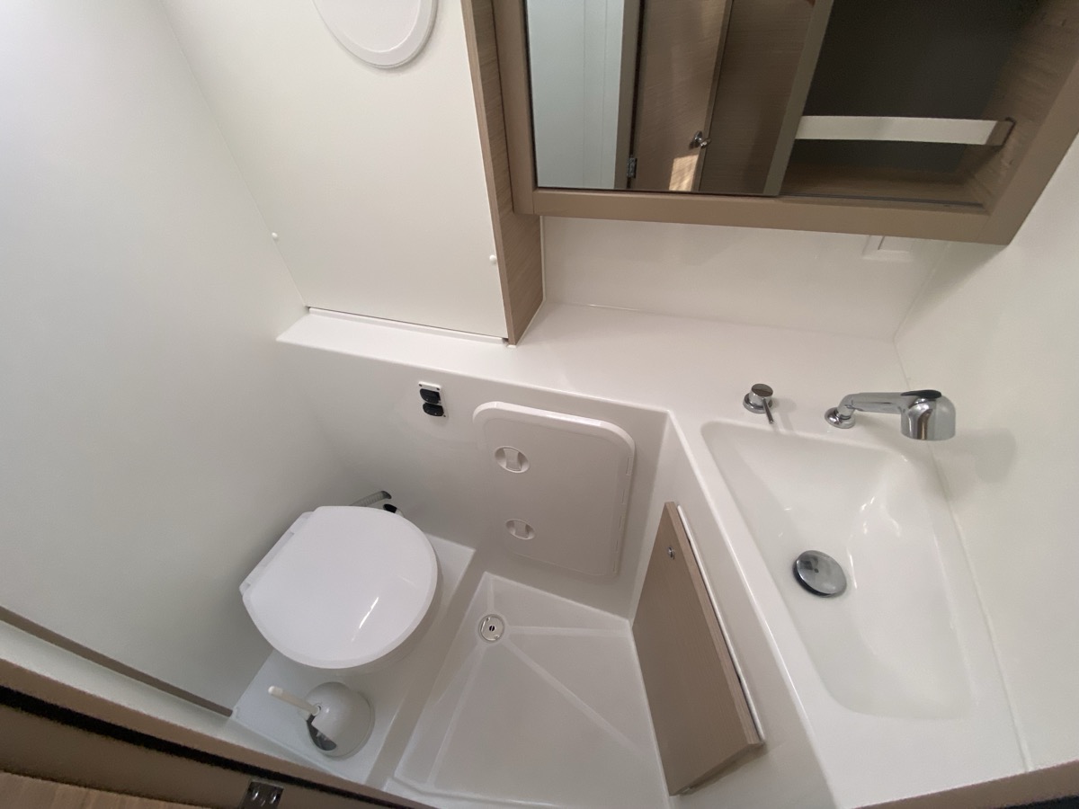 | Inside | Oven, Inverter 12V/220V, Coffee machine, Dock A/C 220V (cool&heat), Shore power cable, Moka pot, Pantry equipment, Radio, Convertible salon table, USB sockets in the cabins, Fan, fans in cabins, Warm water, Watermaker, WC (electr.), Inverter |