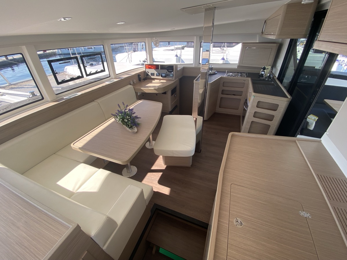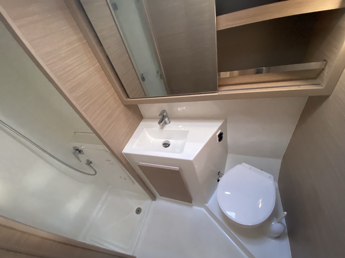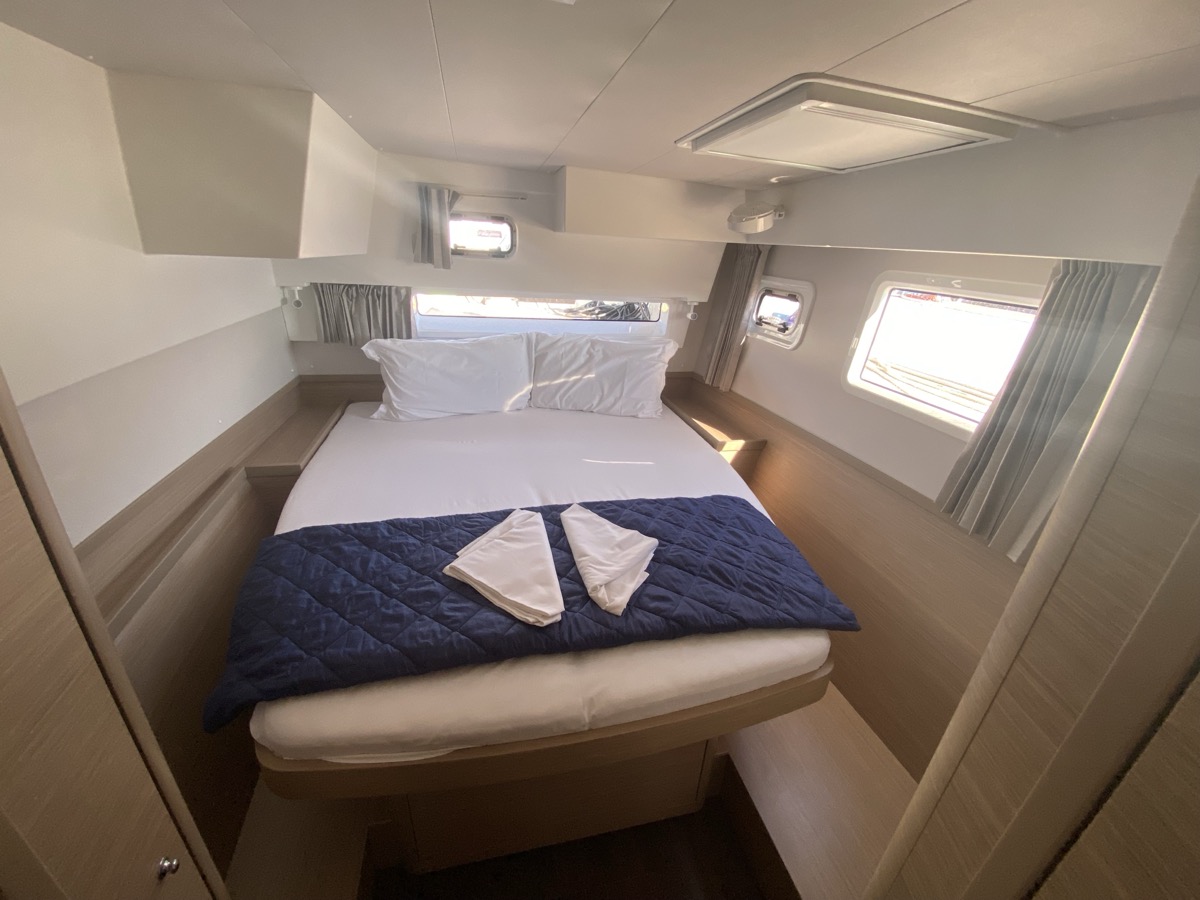 | Inside | Oven, Generator, Inverter 12V/220V, Coffee machine, Air Condition, Airconditioning (independent from shore power), Shore power cable, Moka pot, Pantry equipment, Radio, Convertible salon table, USB sockets in the cabins, Fan, fans in cabins, Warm water, Watermaker, WC (electr.) |