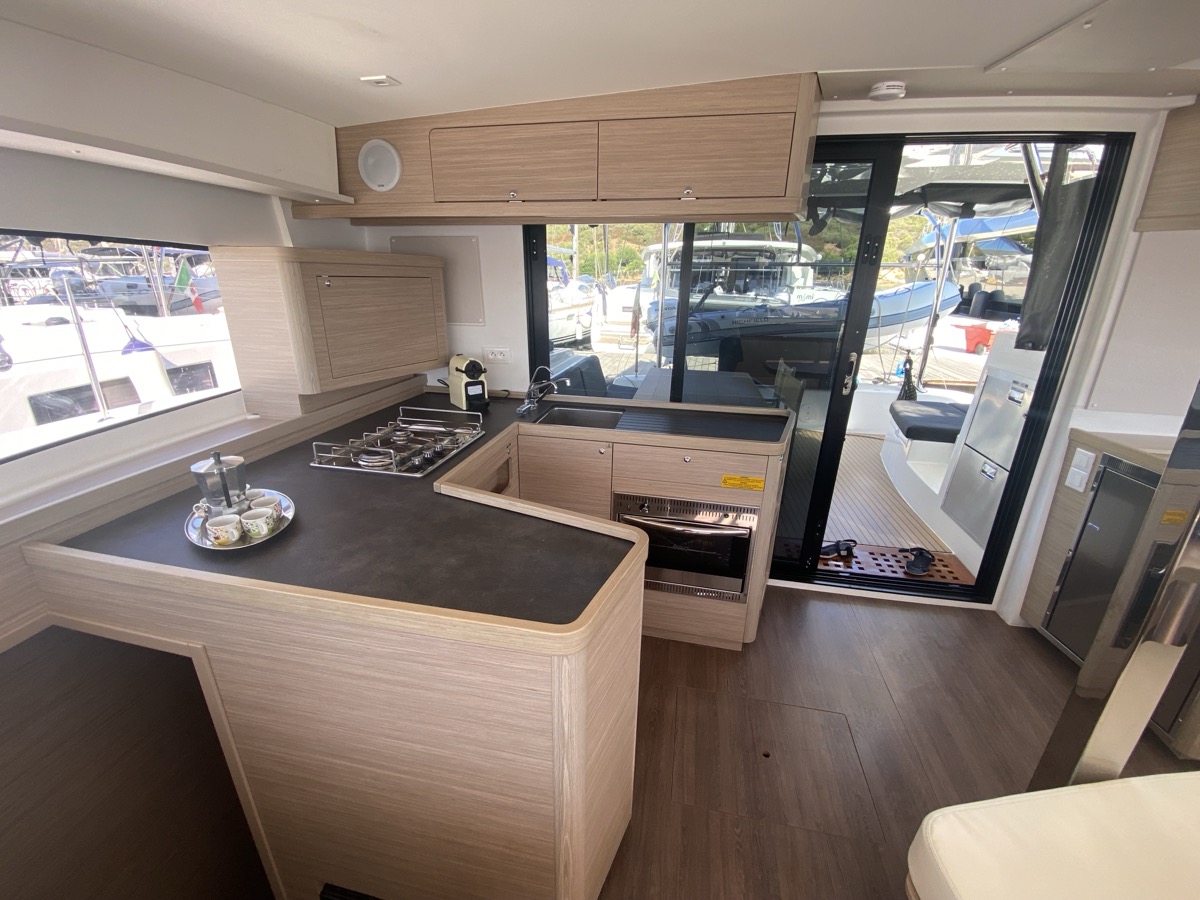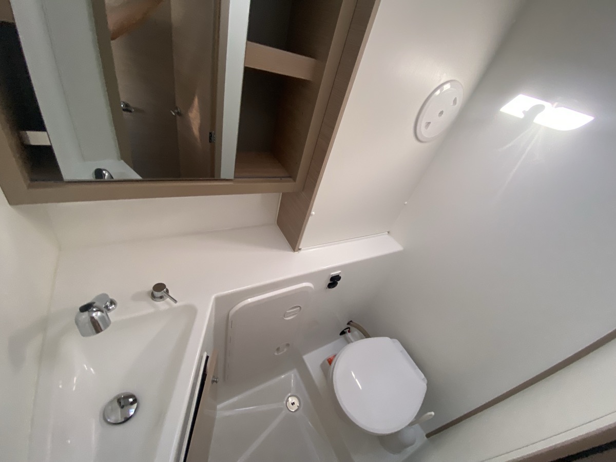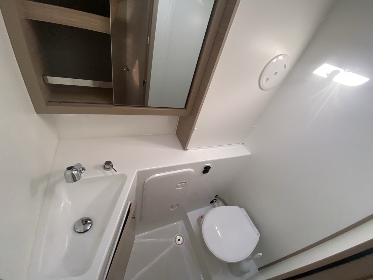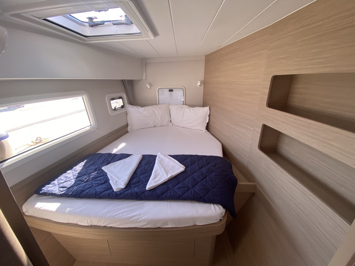 | Inside | Oven, Generator, Inverter 12V/220V, Coffee machine, Air Condition, Airconditioning (independent from shore power), Shore power cable, Moka pot, Pantry equipment, Radio, Convertible salon table, USB sockets in the cabins, Fan, fans in cabins, Warm water, Watermaker, WC (electr.) |