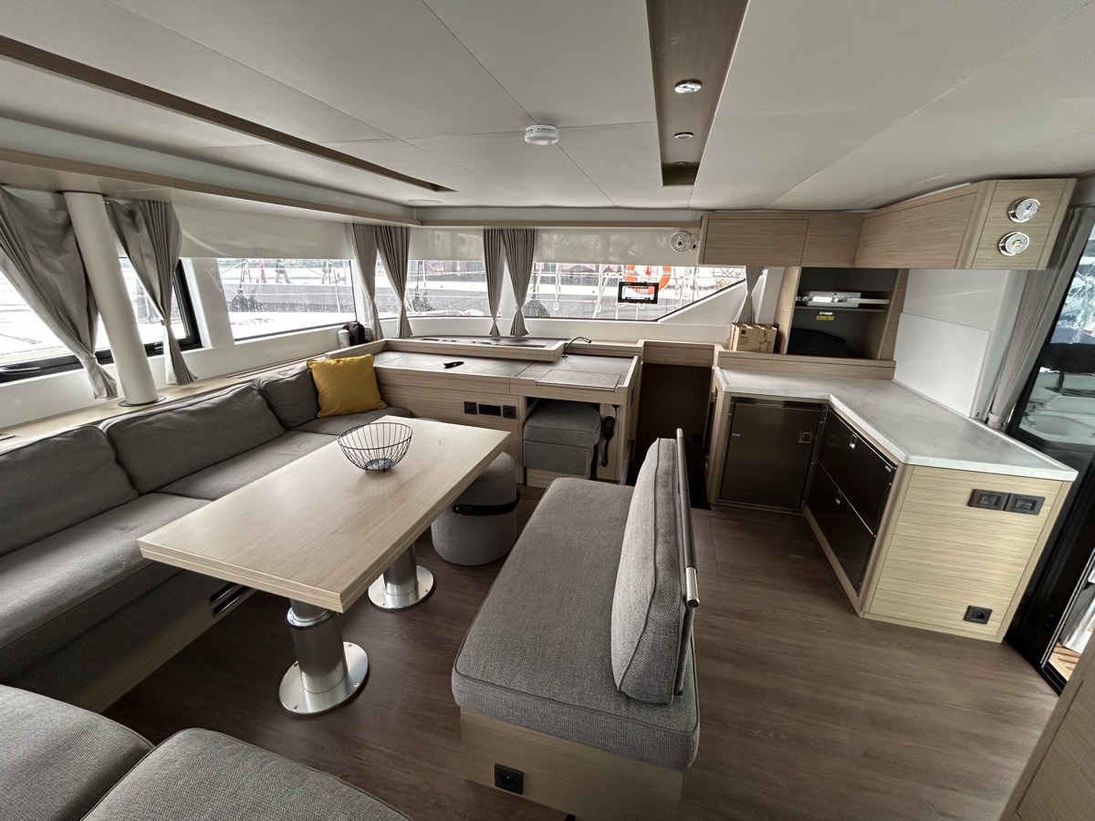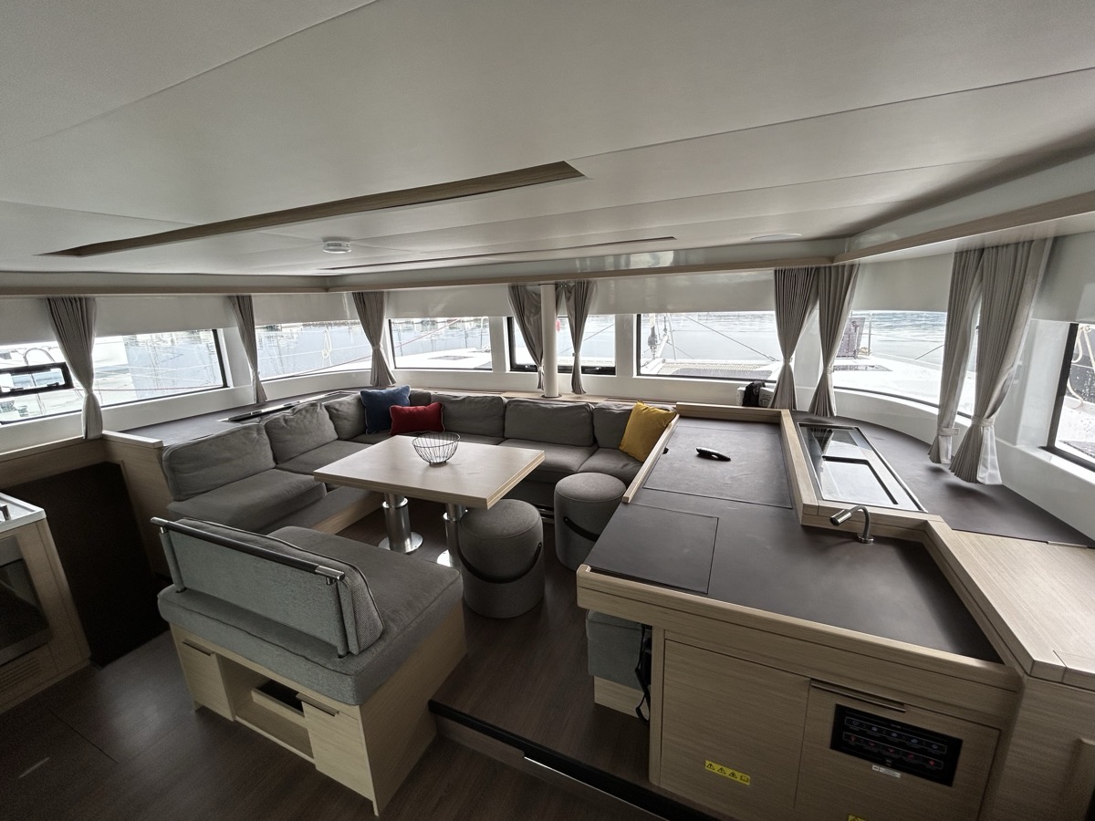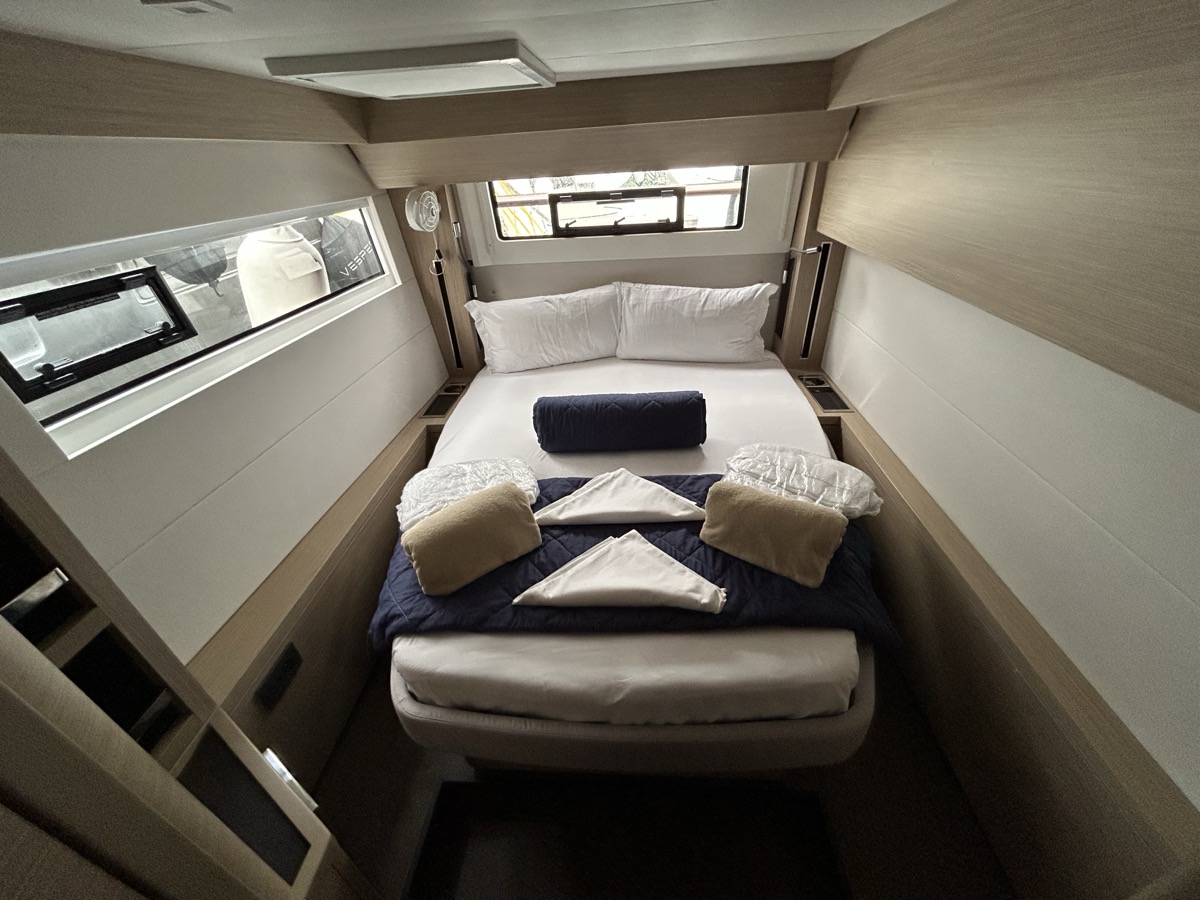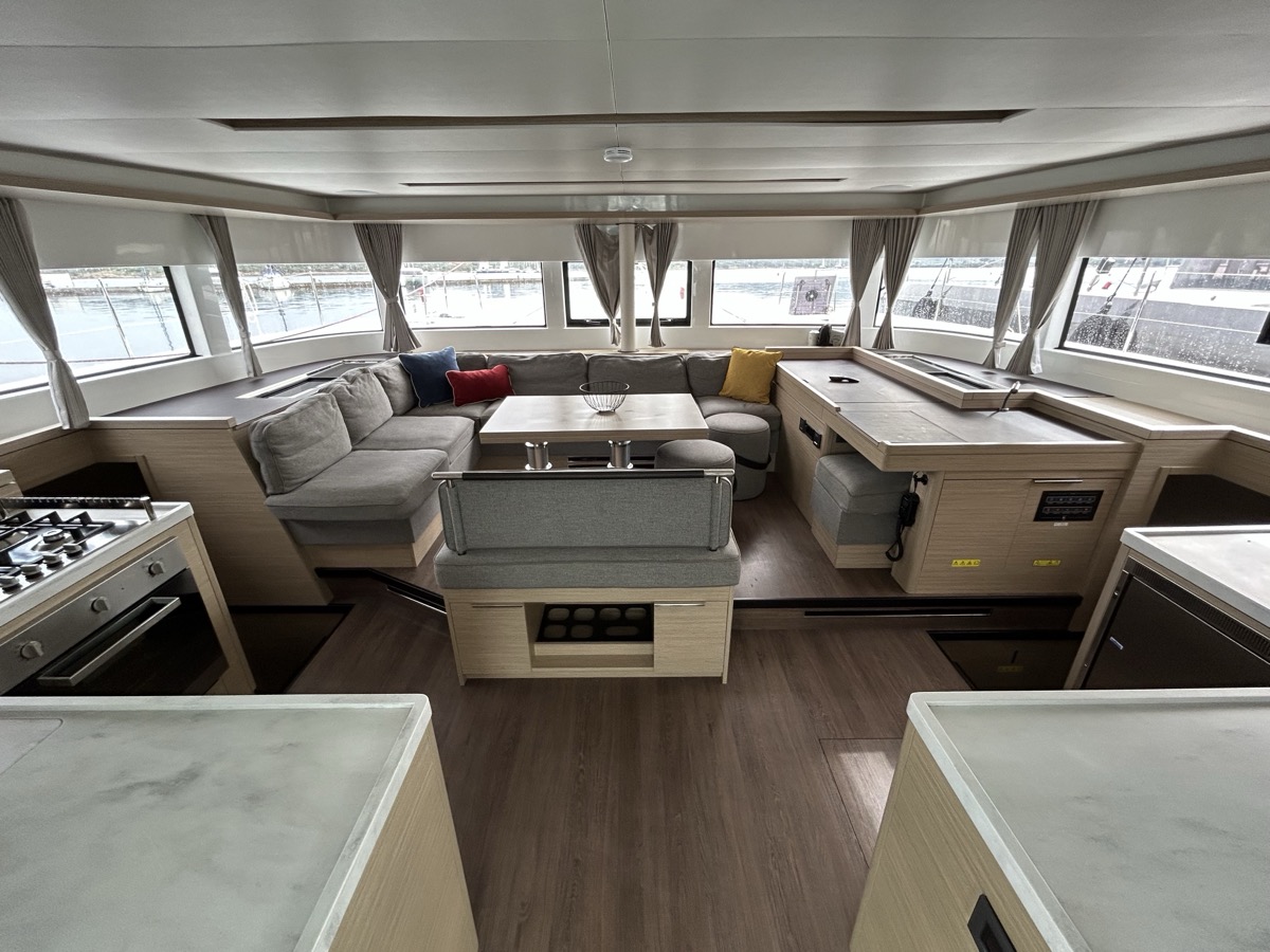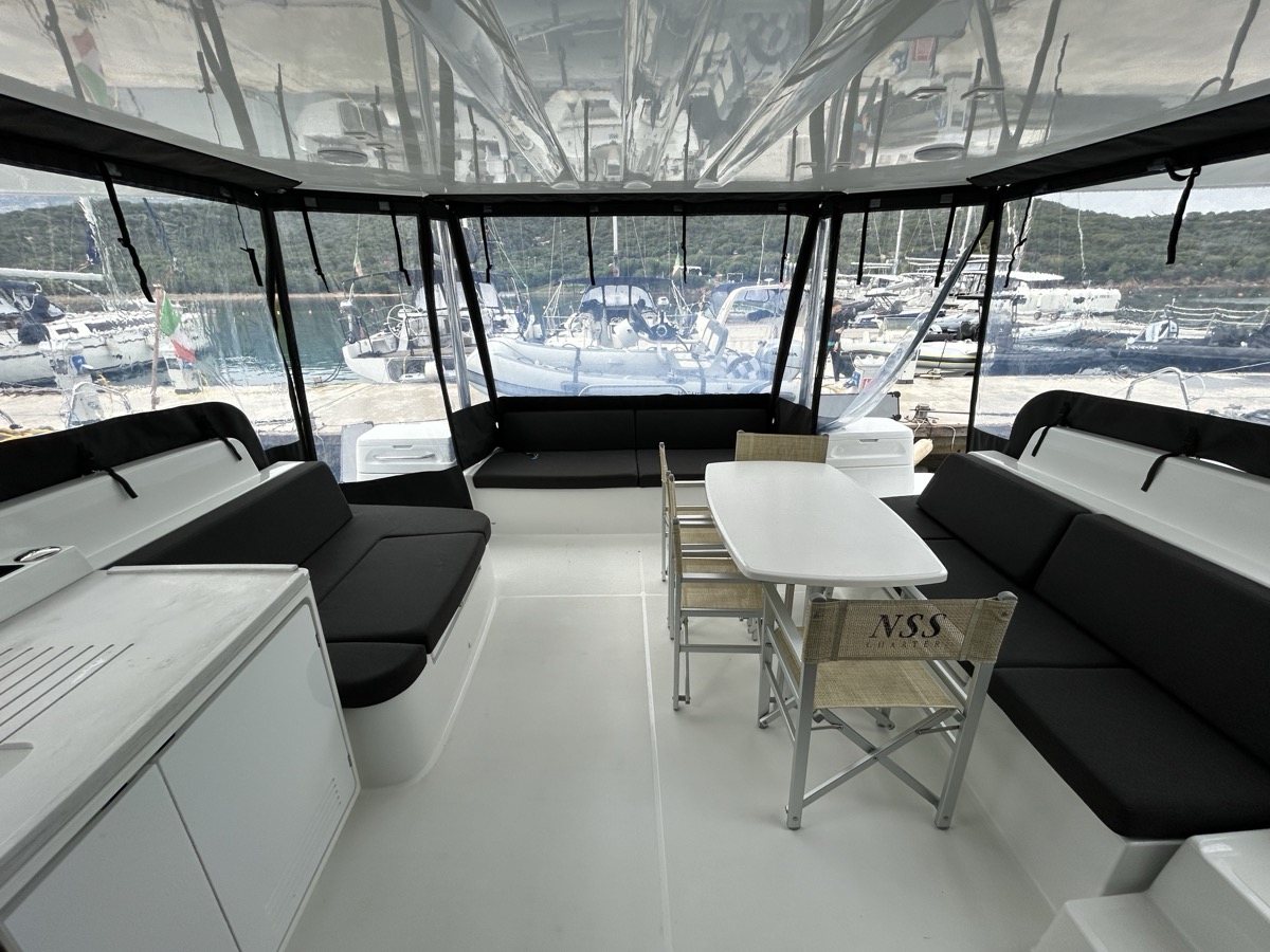 | Inside | Oven, Generator, Dishwasher, Inverter 12V/220V, Coffee machine, Airconditioning (independent from shore power), Shore power cable, Microwave oven, Moka pot, Pantry equipment, Radio, USB sockets in the cabins, Cabin & dining area fan , Warm water, Watermaker, WC (electr.) |