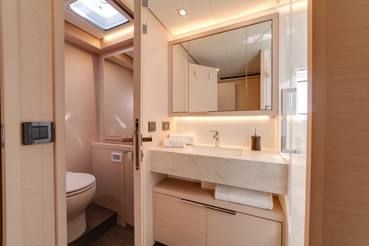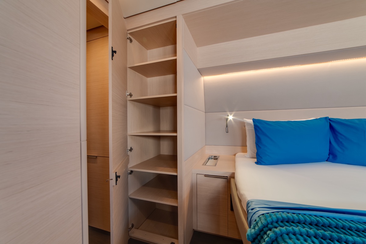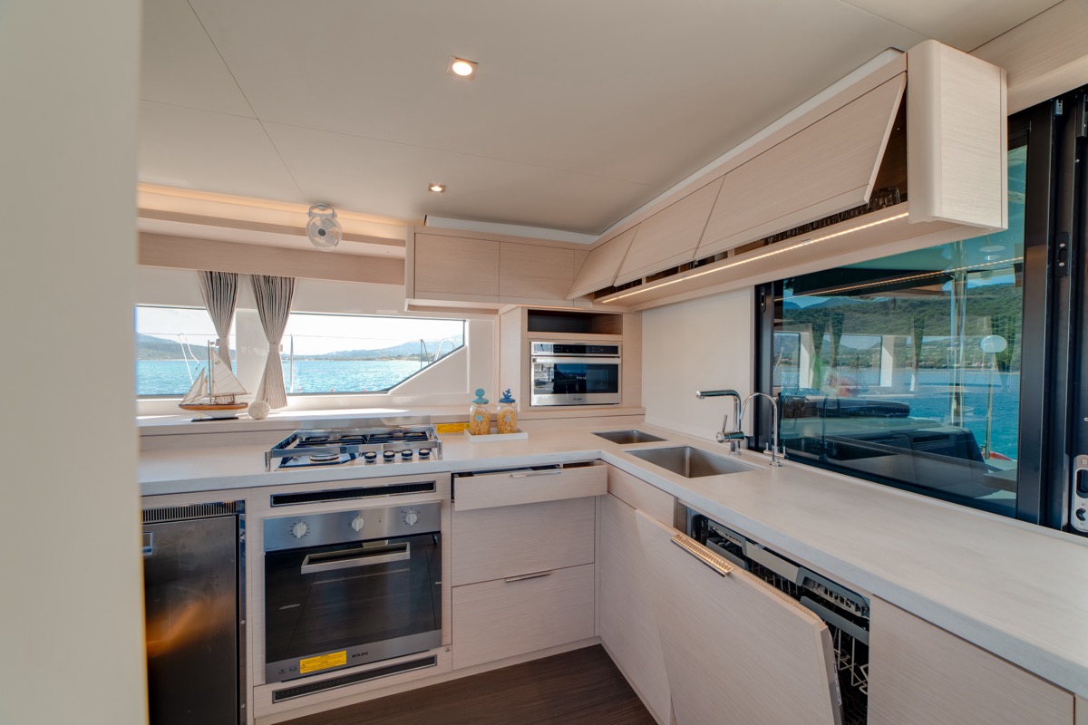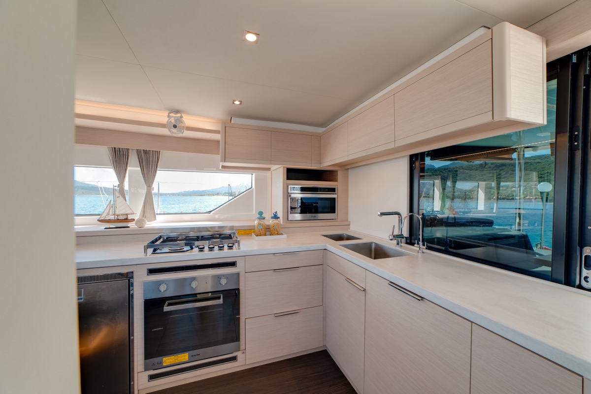 | Inside | Oven, Black water tank, Generator, Inverter 12V/220V, Coffee machine, Airconditioning (independent from shore power), Microwave oven, Moka pot, Mosquito nets, Pantry equipment, Radio, USB sockets in the cabins, Warm water, Washing machine, Watermaker, WC (electr.) |