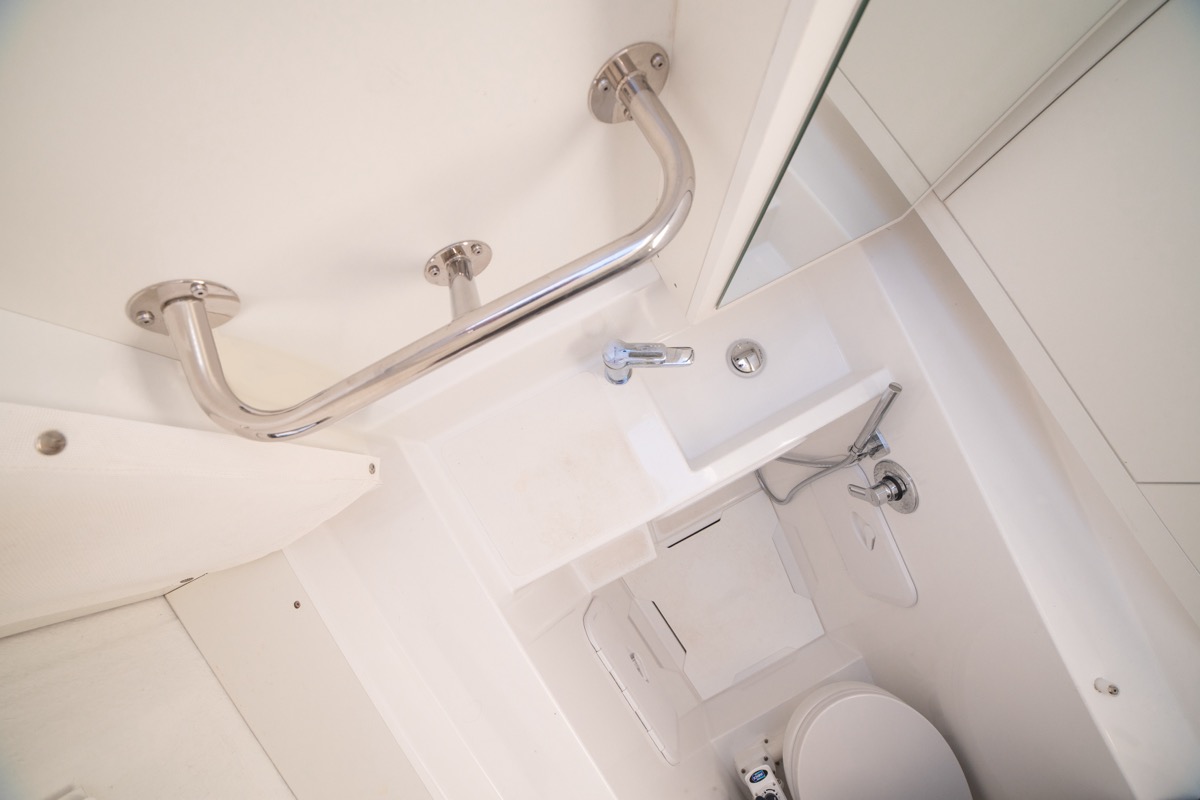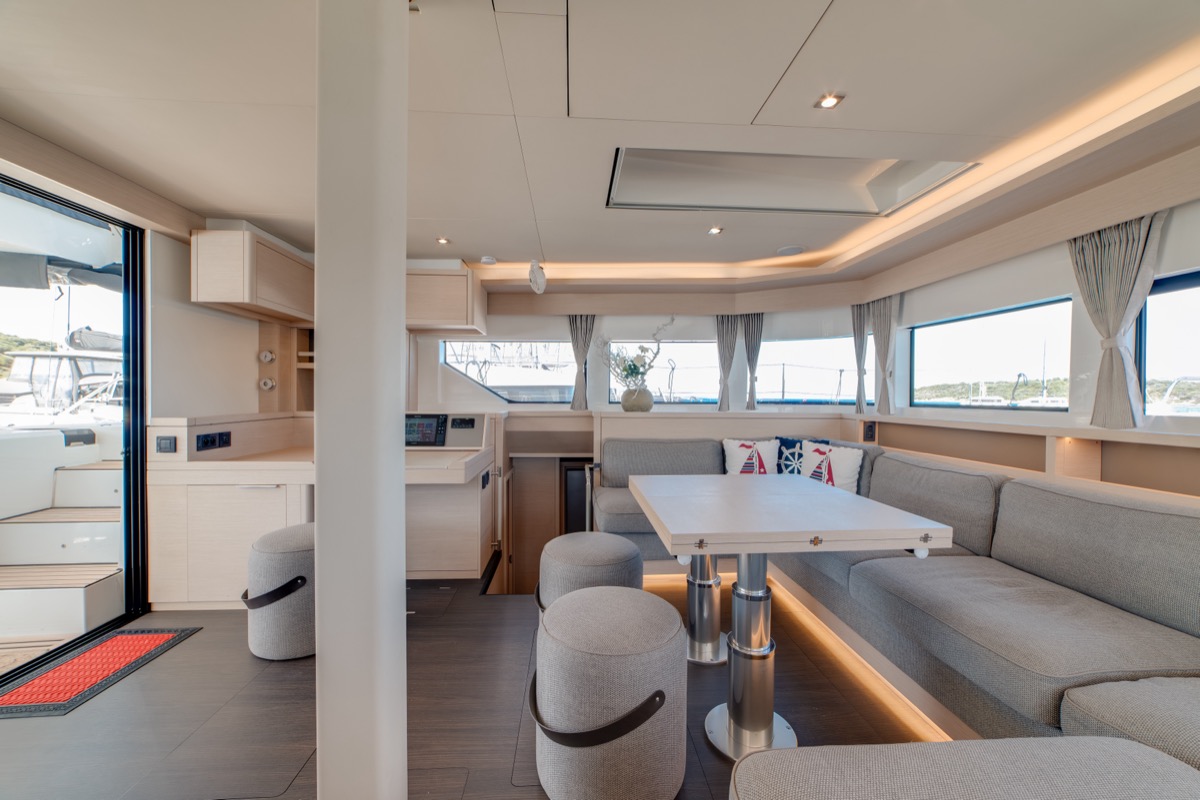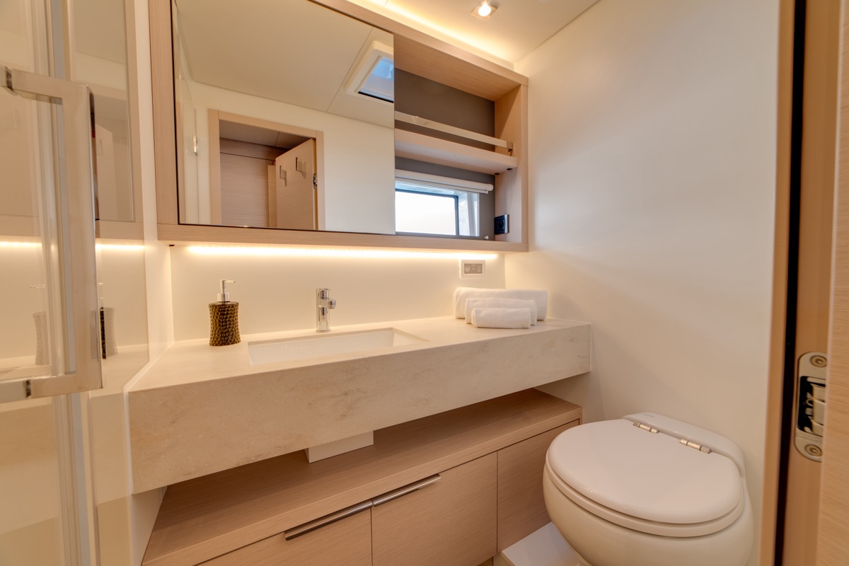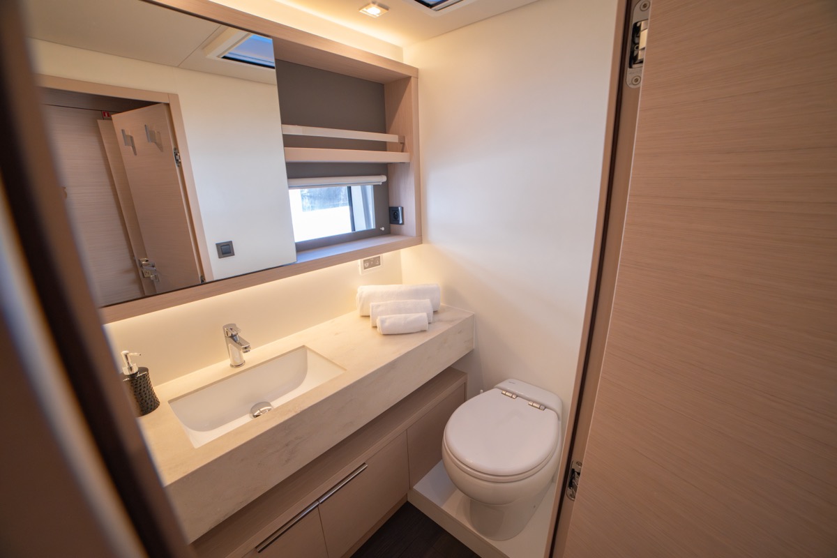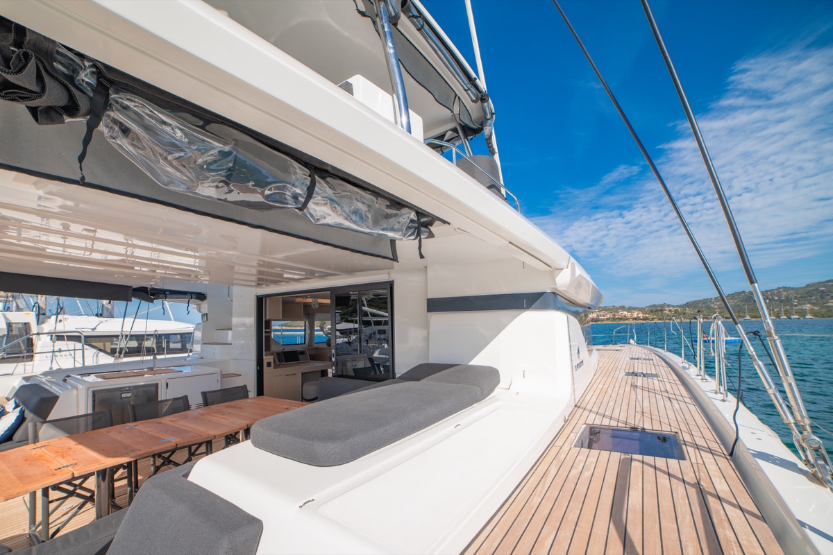 | Inside | Oven, Black water tank, Generator, Inverter 12V/220V, Coffee machine, Airconditioning (independent from shore power), Microwave oven, Moka pot, Mosquito nets, Pantry equipment, Radio, USB sockets in the cabins, Warm water, Washing machine, Watermaker, WC (electr.) |