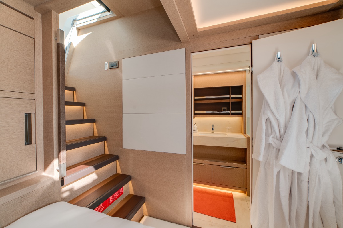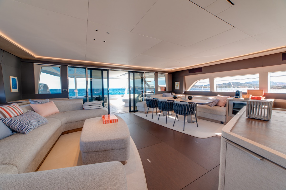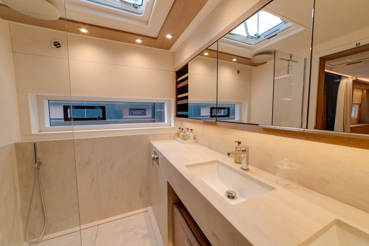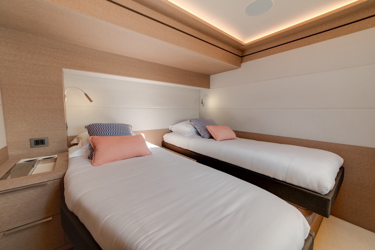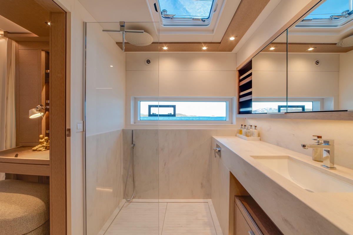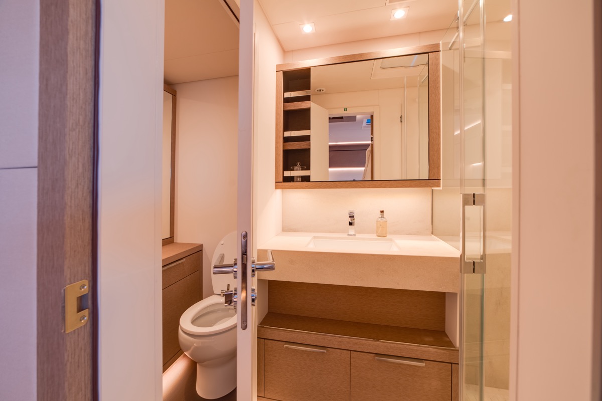 | Inside | Oven, Ice cube machine, Black water tank, Generator, Dishwasher, Heating, Inverter 12V/220V, Coffee machine, Air Condition, Shore power cable, Microwave oven, Moka pot, Pantry equipment, Radio, USB sockets in the cabins, Warm water, Washing machine, Watermaker, Toilet, WC (electr.) |