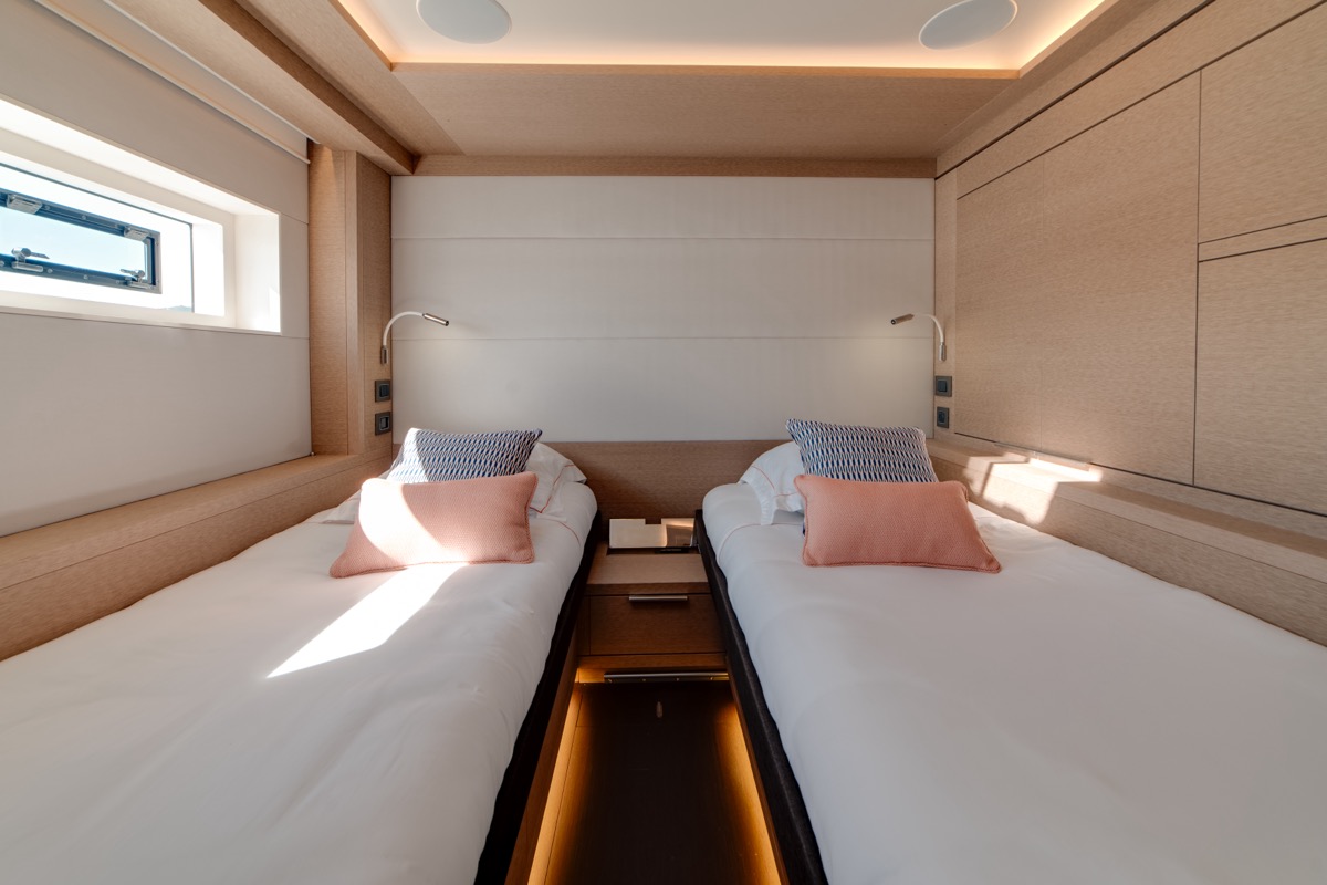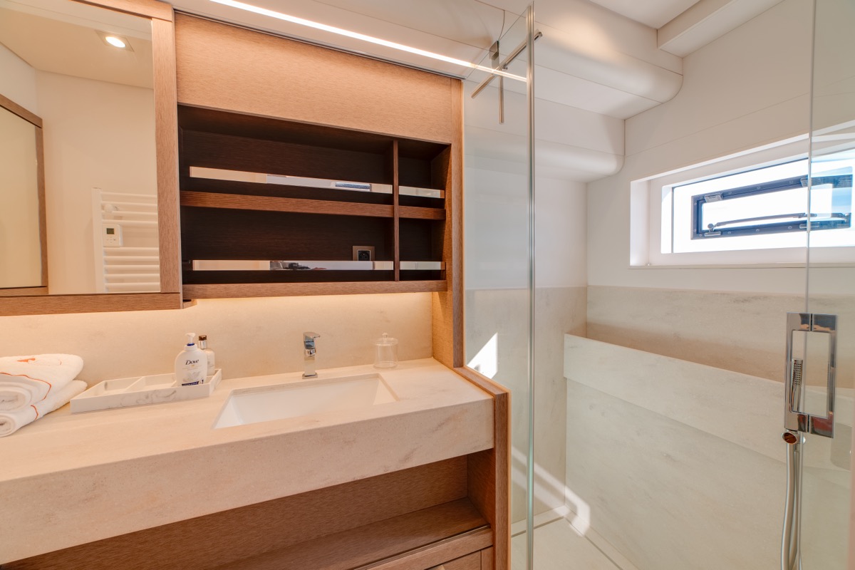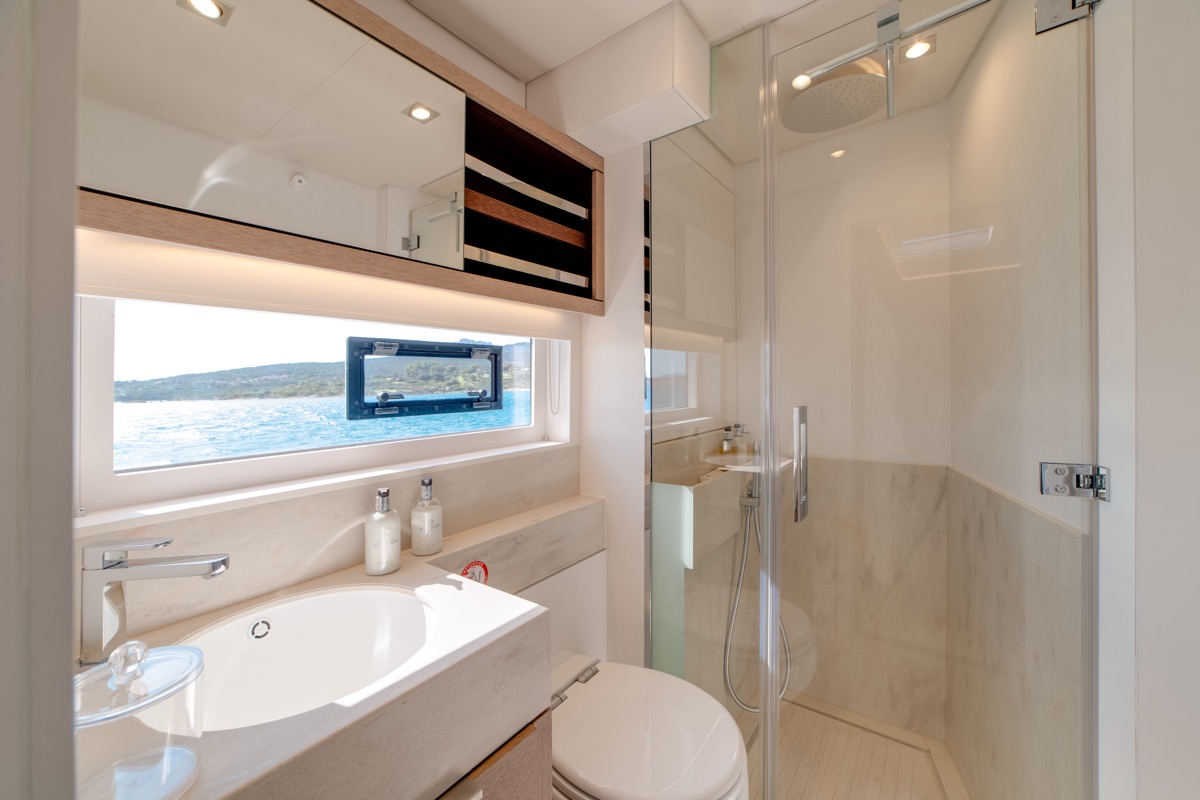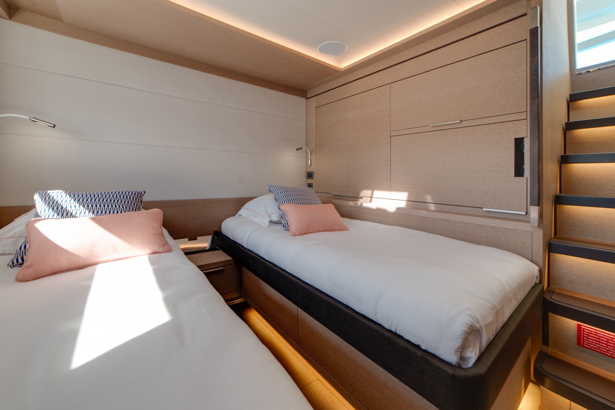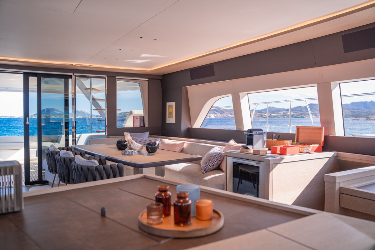 | Inside | Oven, Ice cube machine, Black water tank, Generator, Dishwasher, Heating, Inverter 12V/220V, Coffee machine, Air Condition, Shore power cable, Microwave oven, Moka pot, Pantry equipment, Radio, USB sockets in the cabins, Warm water, Washing machine, Watermaker, Toilet, WC (electr.) |