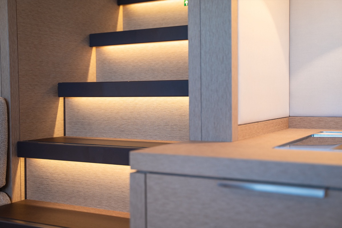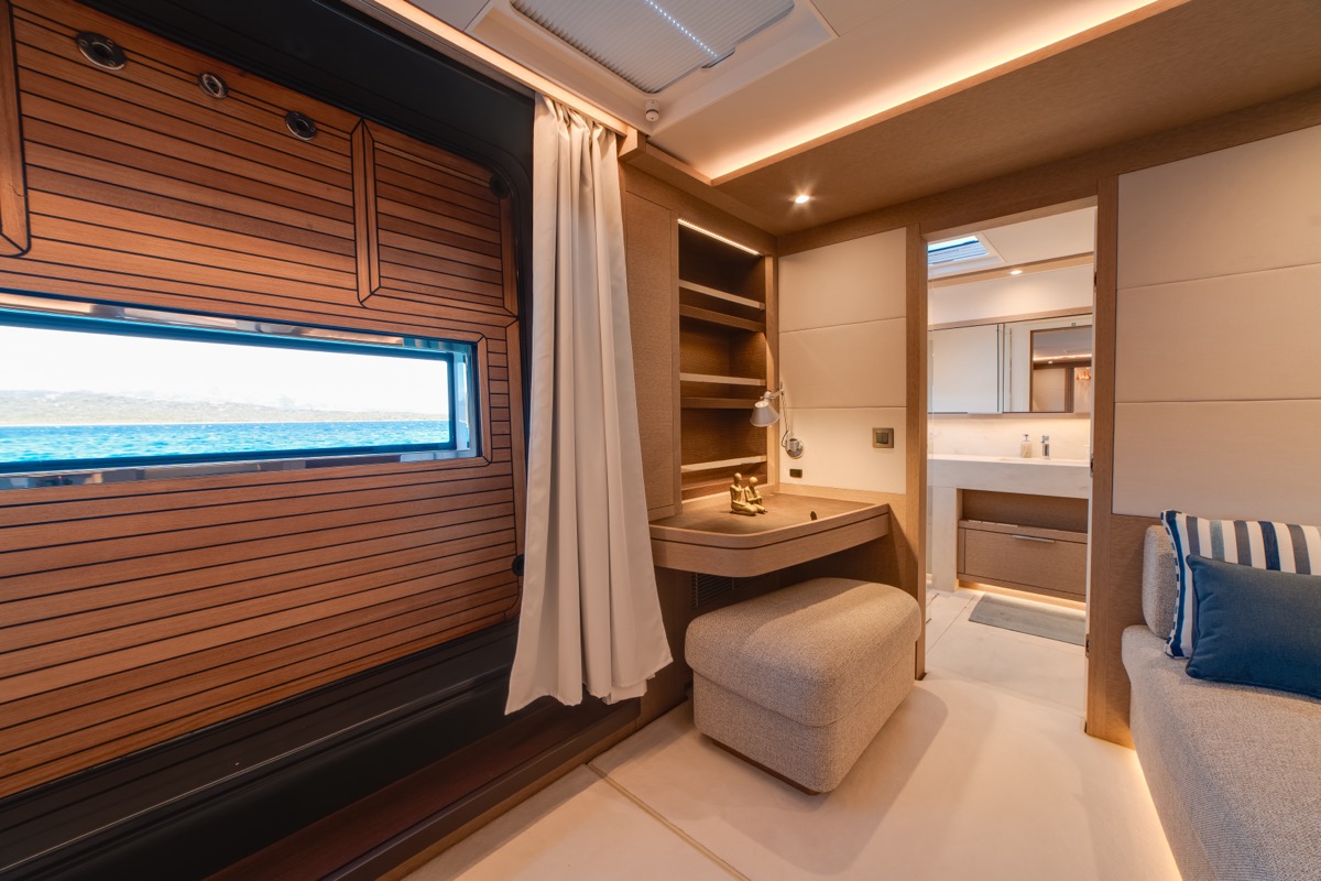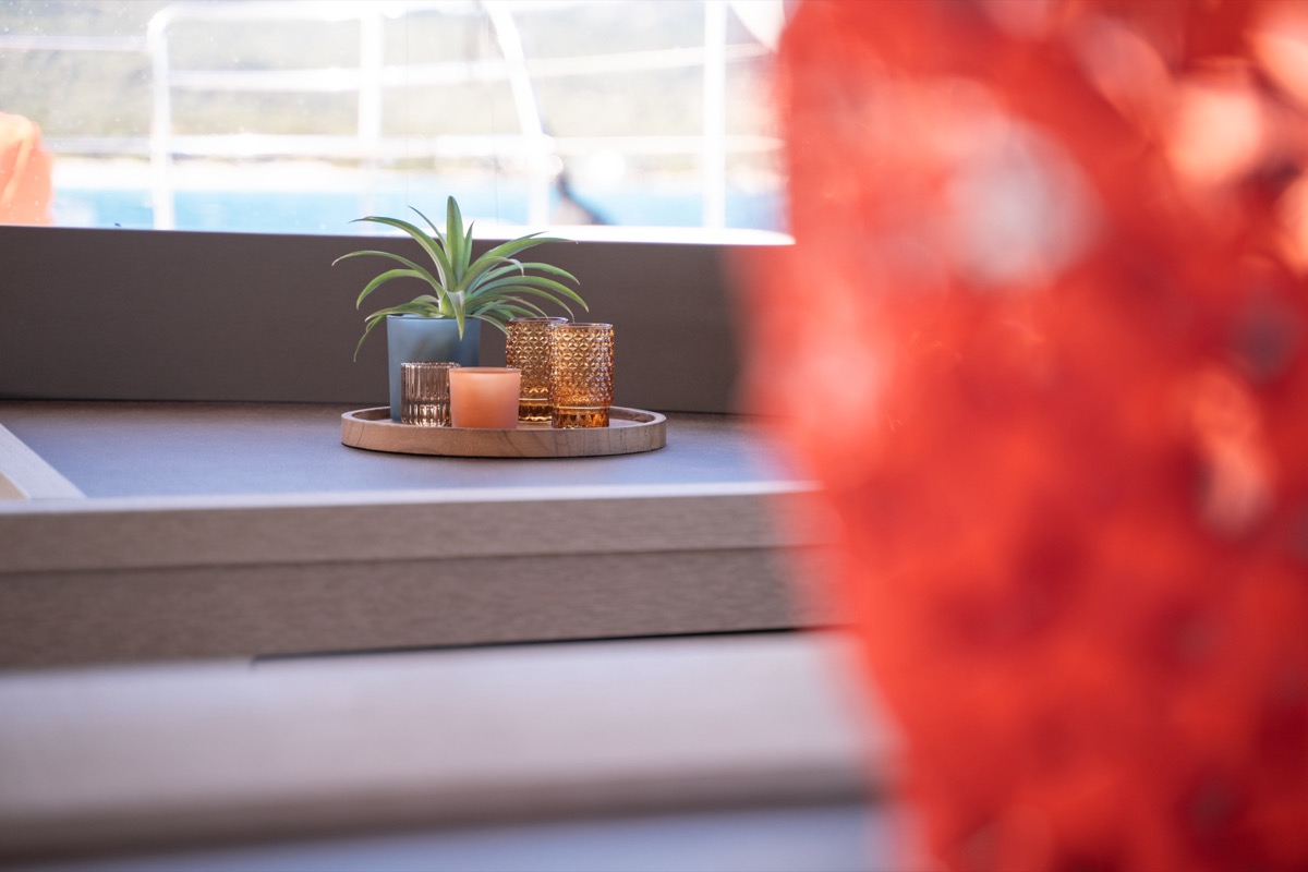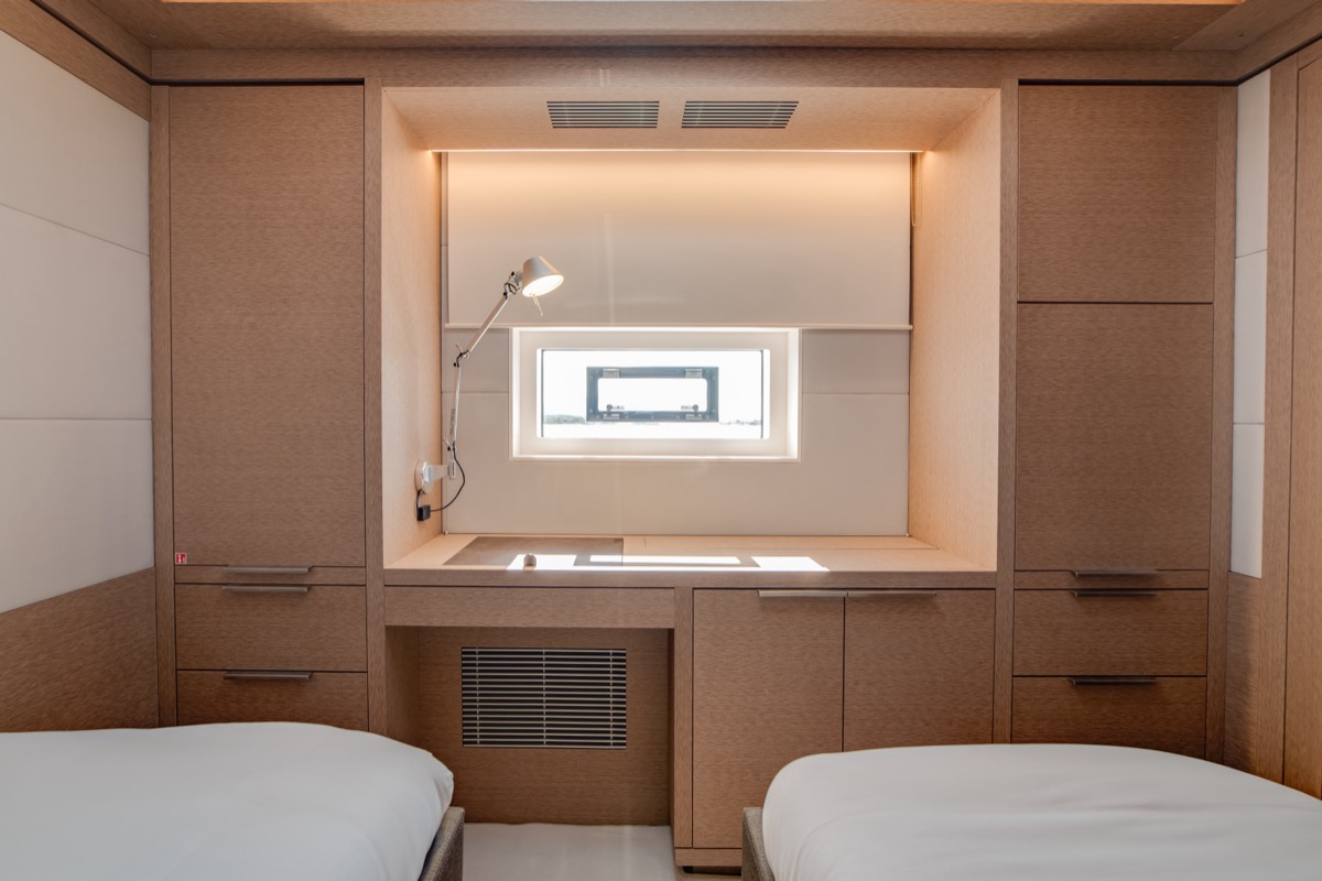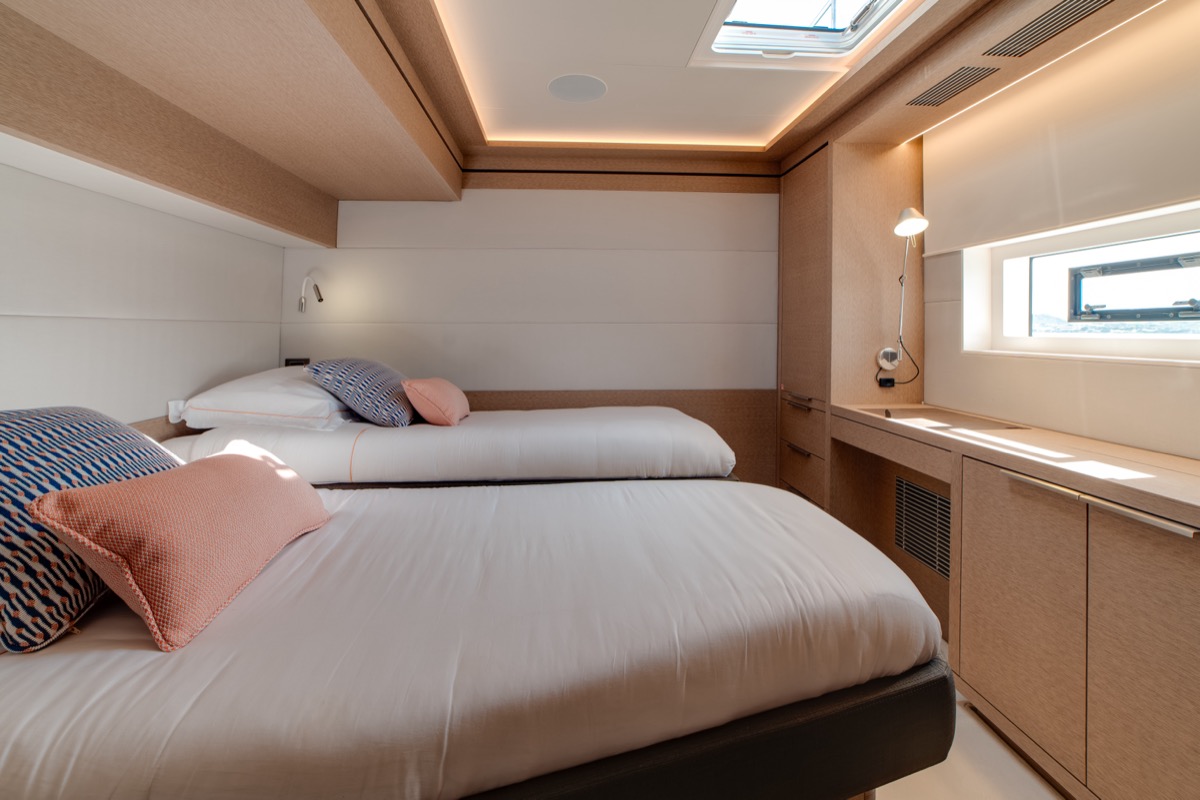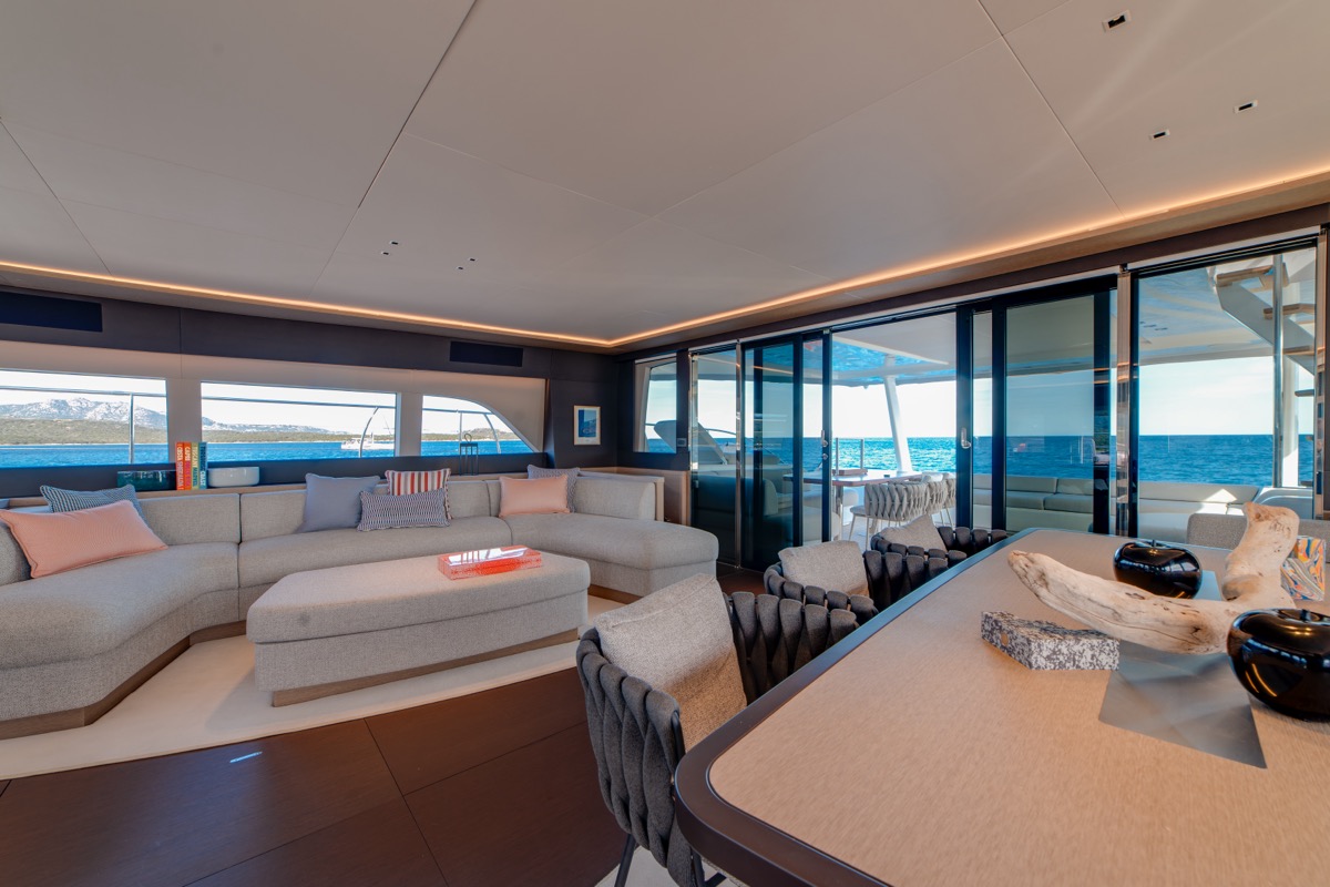 | Inside | Oven, Ice cube machine, Black water tank, Generator, Dishwasher, Heating, Inverter 12V/220V, Coffee machine, Air Condition, Shore power cable, Microwave oven, Moka pot, Pantry equipment, Radio, USB sockets in the cabins, Warm water, Washing machine, Watermaker, Toilet, WC (electr.) |