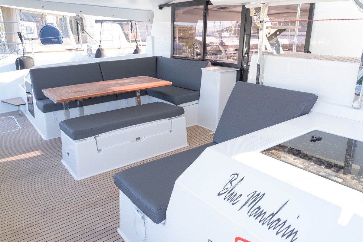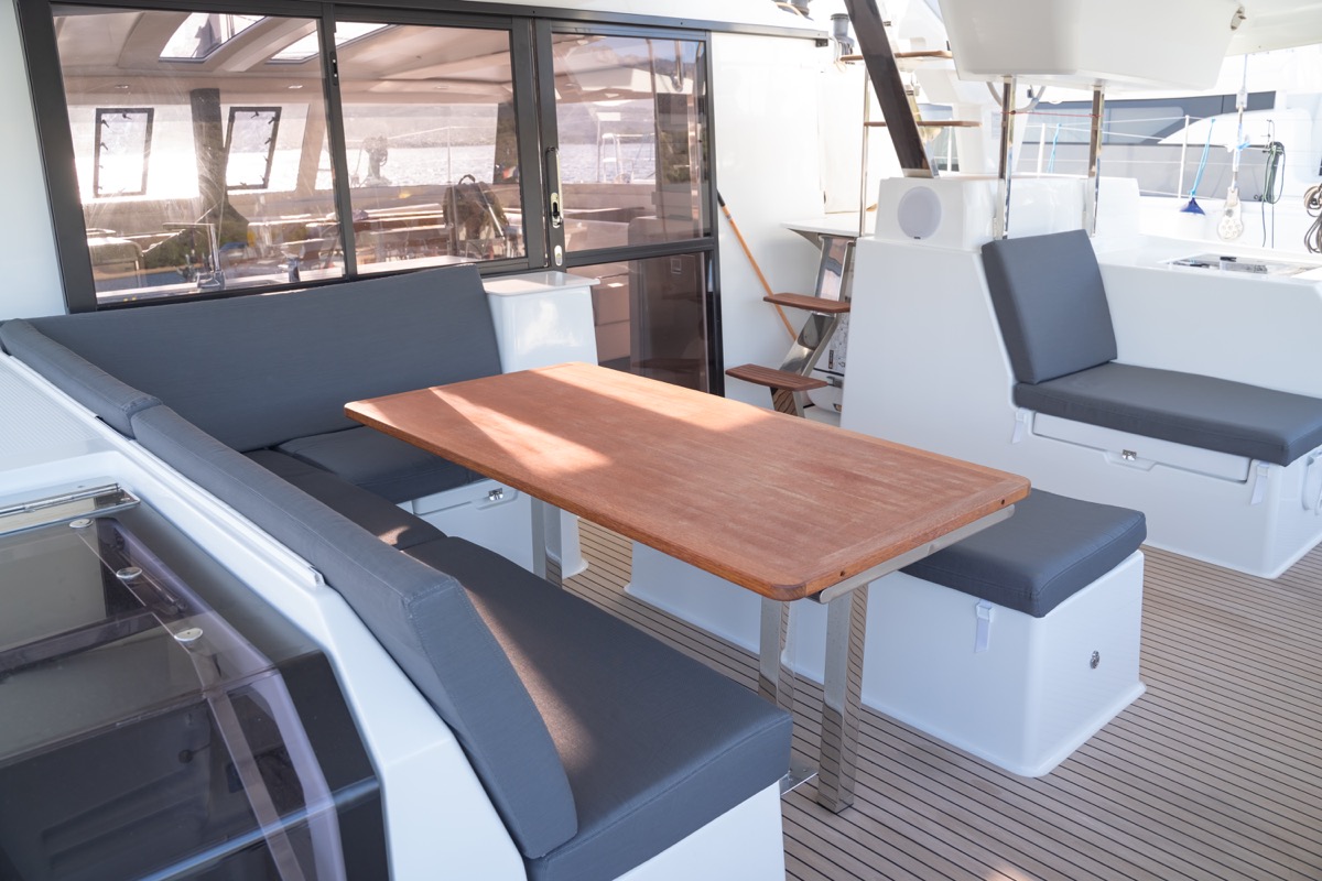 | Outside | Bimini top, Cockpit shower, Cockpit speakers, Cockpit cushions, Deck cushions, Electr. anchor windlass, electr. winch, BBQ, Teak in cockpit |