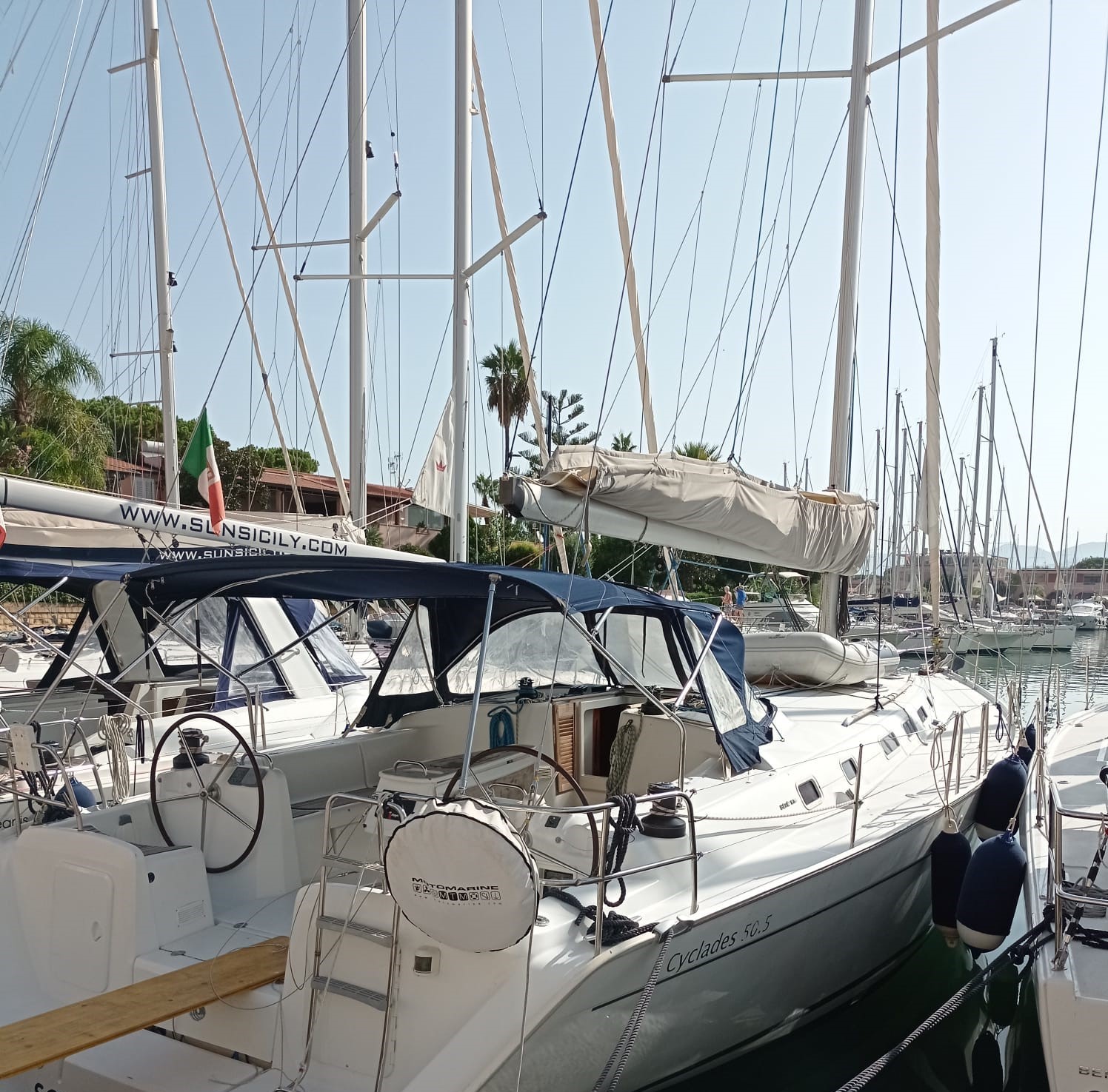 | Outside | Anchor with chain, Bimini top, Boat hook, Cockpit shower, Cockpit speakers, Cockpit table, Cover brush, Jerry cans for diesel, Electr. anchor windlass, Fender, Gangway, Plastic bucket, Sprayhood, Water hose, Winches |