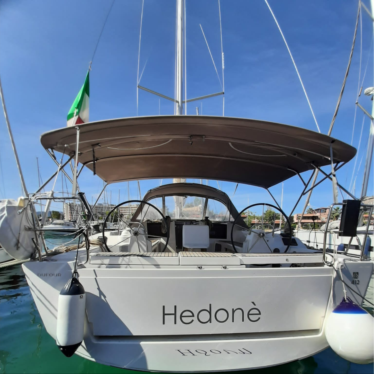 | Outside | Anchor with chain, Anchor winch, Outside shower, Bathing platform, Bimini top, Boat hook, Cockpit speakers, Deck lights, Electr. anchor windlass, Fender, BBQ, Plastic bucket, Sprayhood, Teak in cockpit, Windex, Winches |