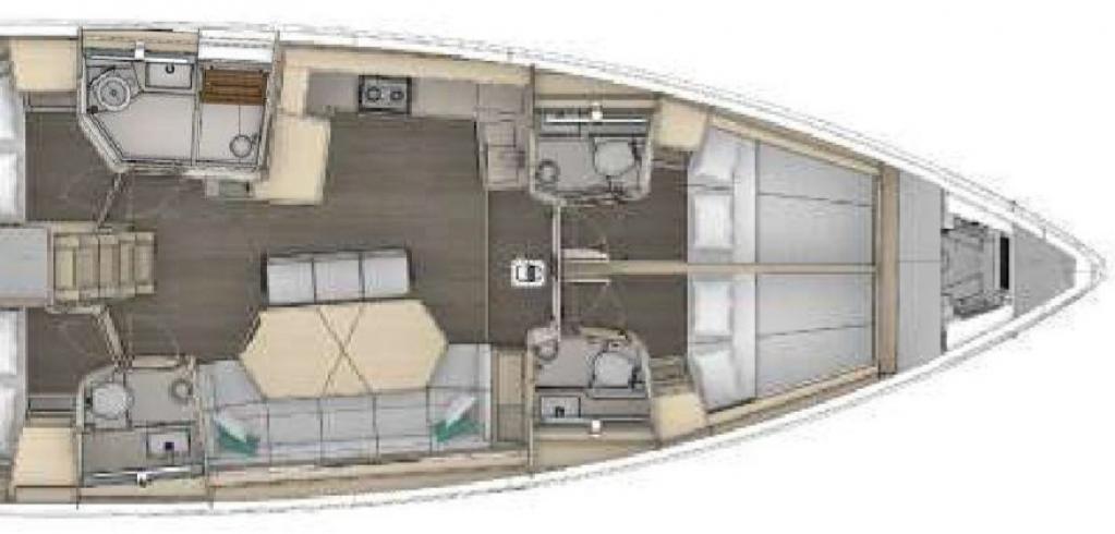 | Outside | Outside shower, Bathing platform, Bimini top, Cockpit speakers, Electr. anchor windlass, electr. winch, BBQ, Sprayhood, Teak in cockpit |