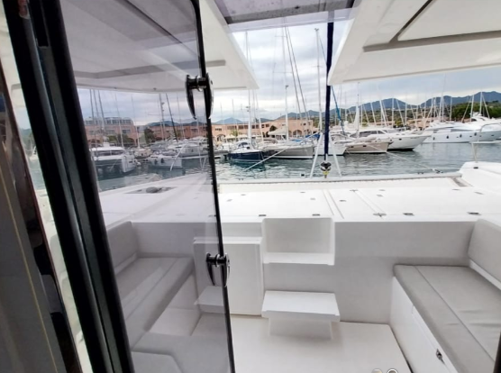 | Outside | Anchor with chain, Bathing ladder, Boat hook, Cockpit speakers, Cockpit cushions, Cover brush, Electr. anchor windlass, electr. winch, Fender, Mooring lines, Flybridge, Gangway, BBQ, Hardtop, Plastic bucket, Solar panels, Water hose, Winches |