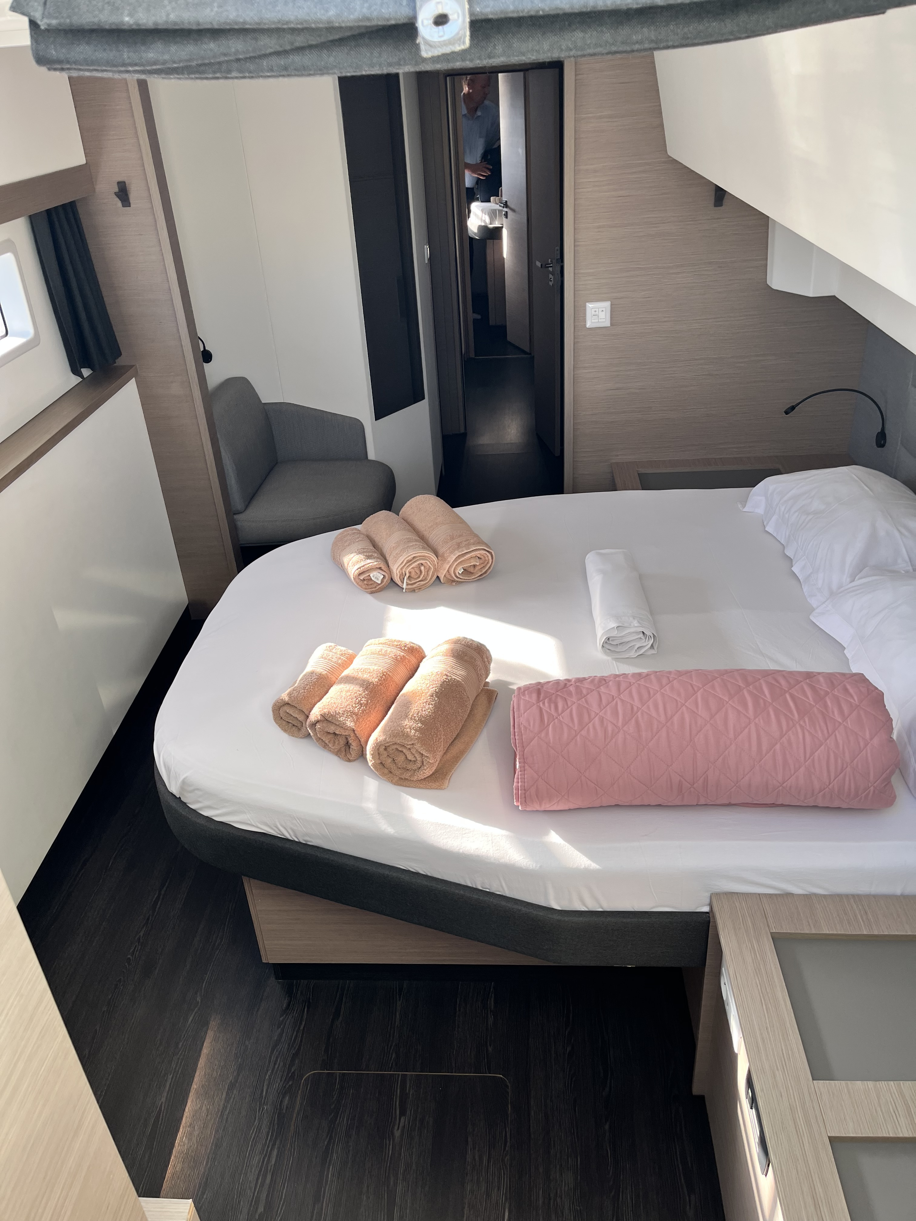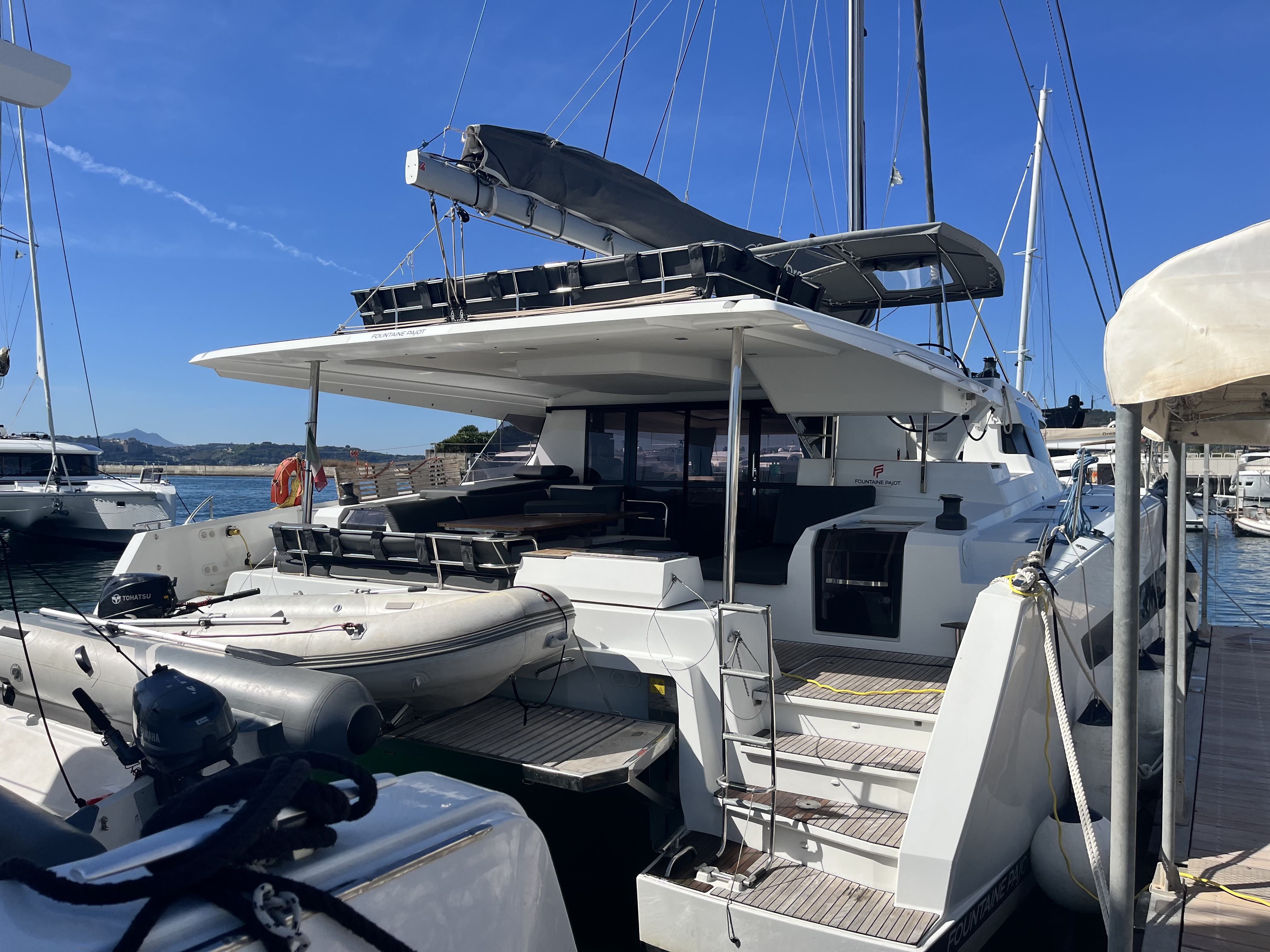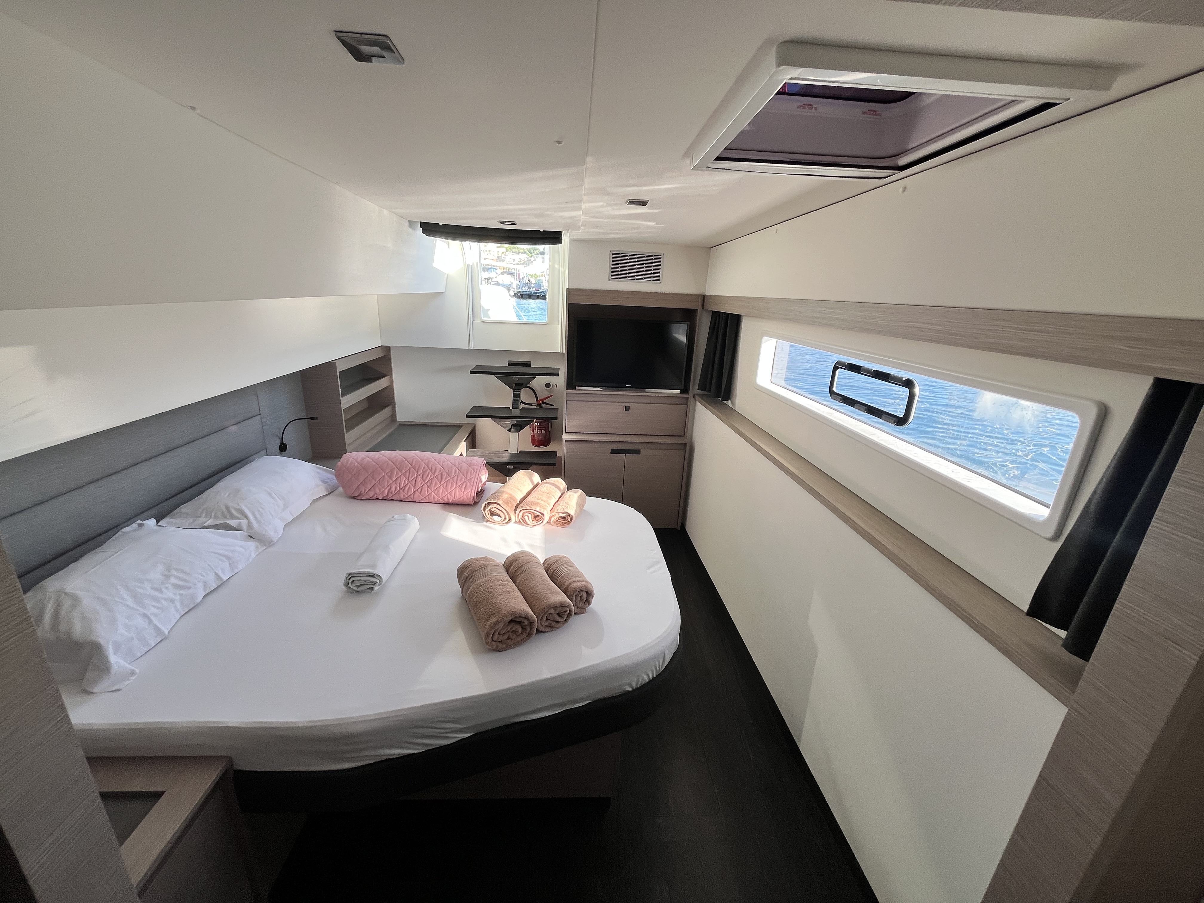 | Inside | 12V/220V sockets, Generator, Inverter 12V/220V, Airconditioning (independent from shore power), Refrigerator, Pantry equipment, Radio, TV, fans in cabins, Watermaker |