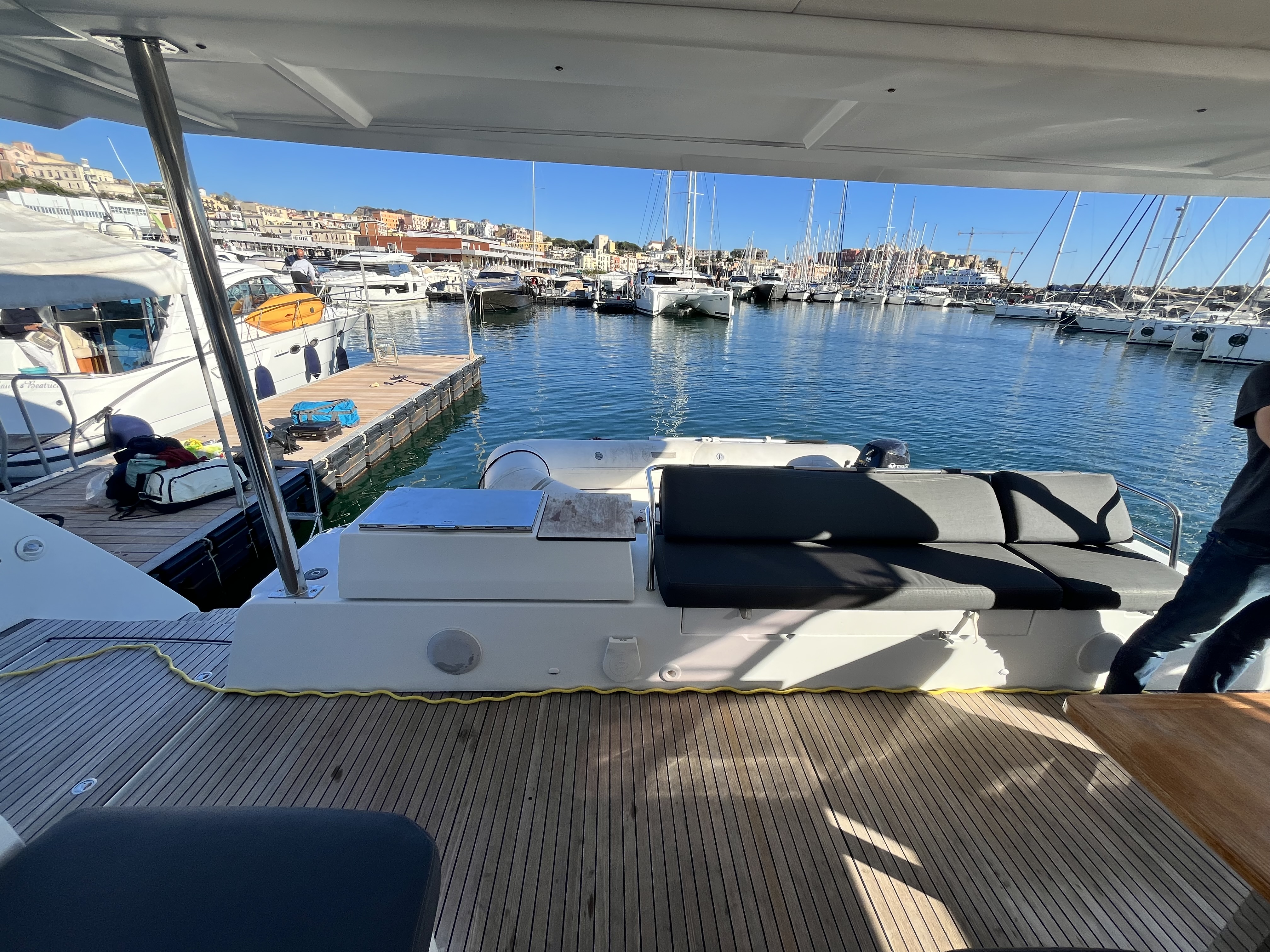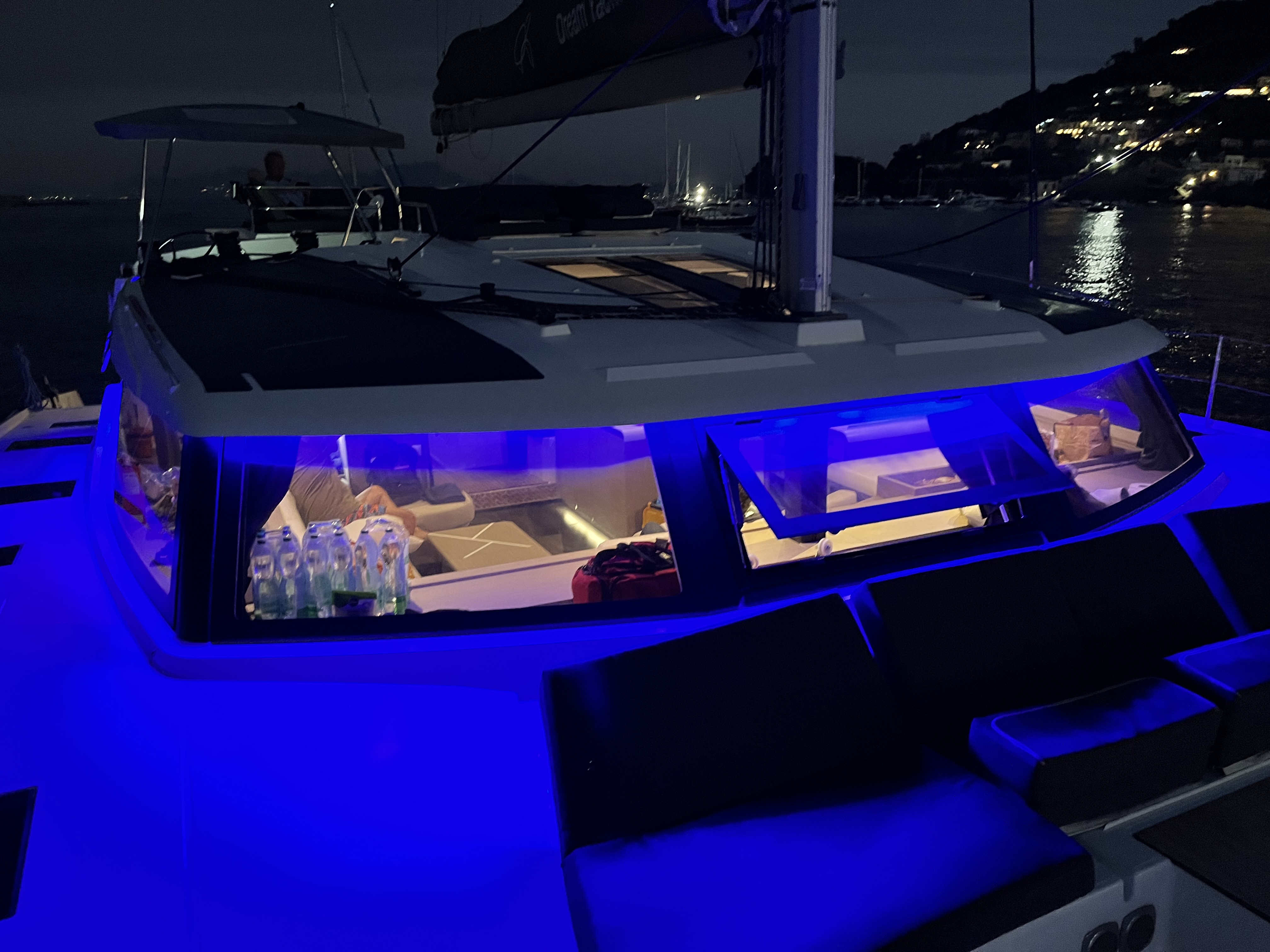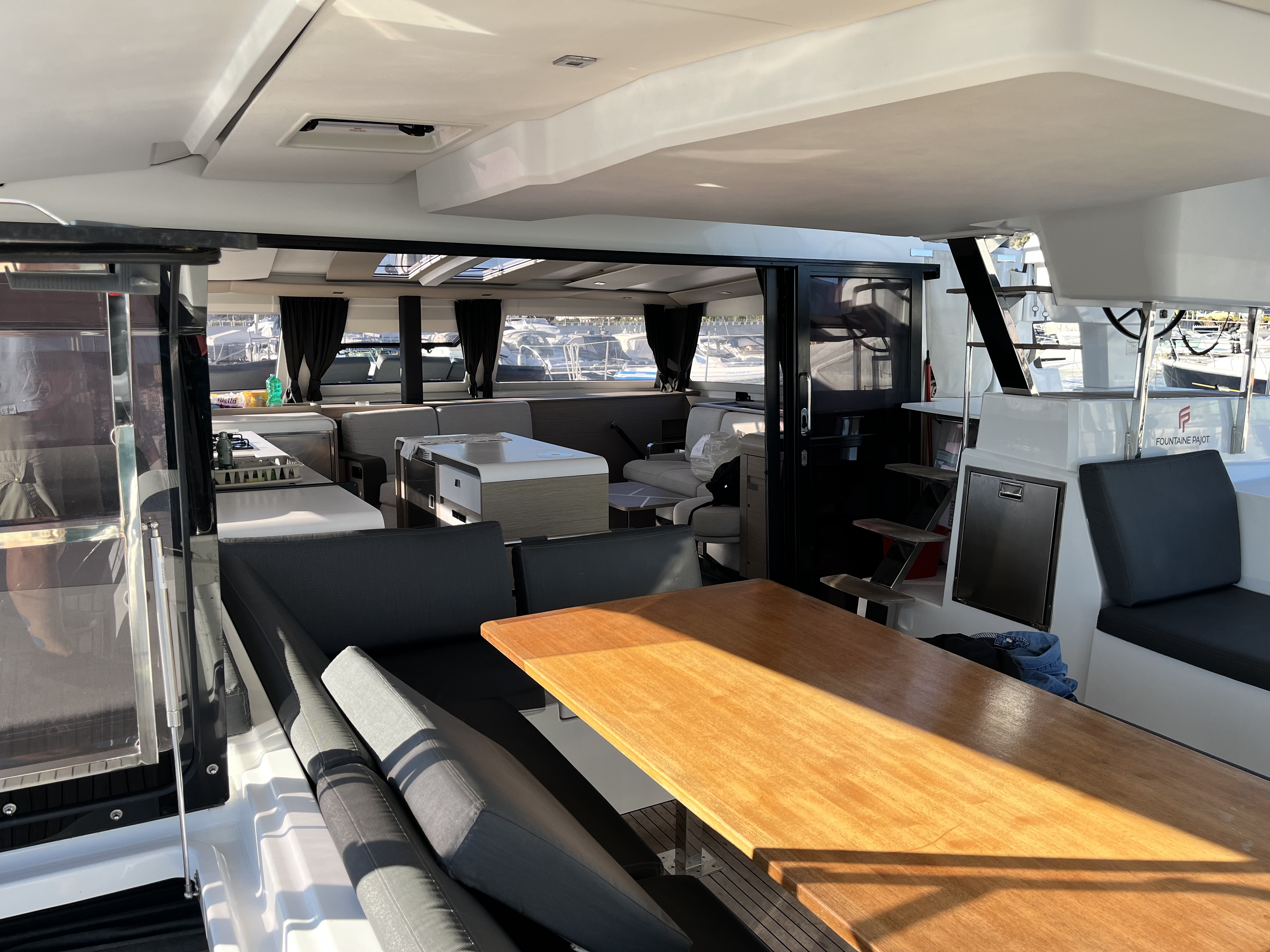 | Outside | Cockpit shower, Refrigerator in cockpit, Cockpit cushions, Cockpit table, Electr. anchor windlass, electr. winch, Hydrogenerator, Solar panels, Teak in cockpit, LED submarine lights |