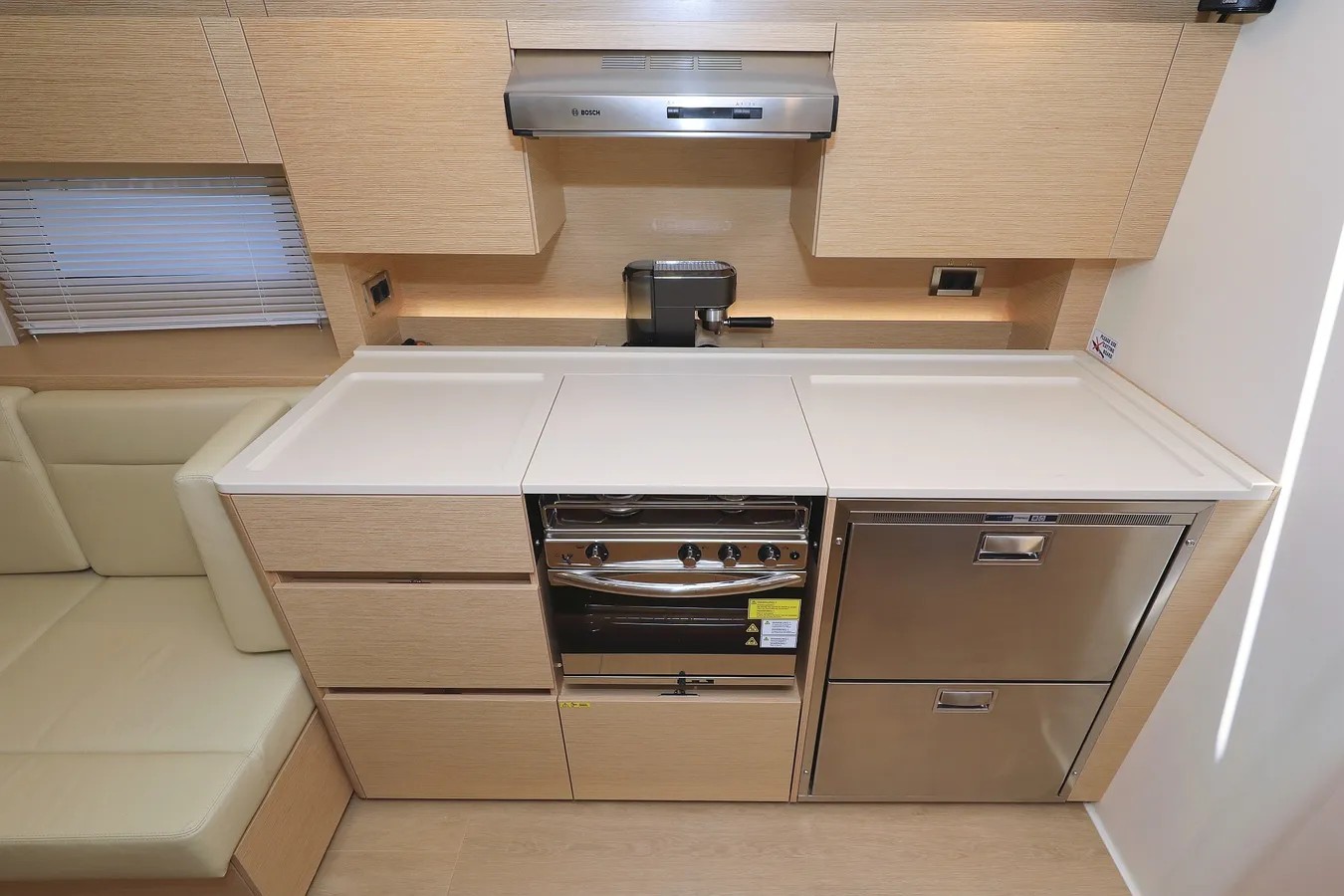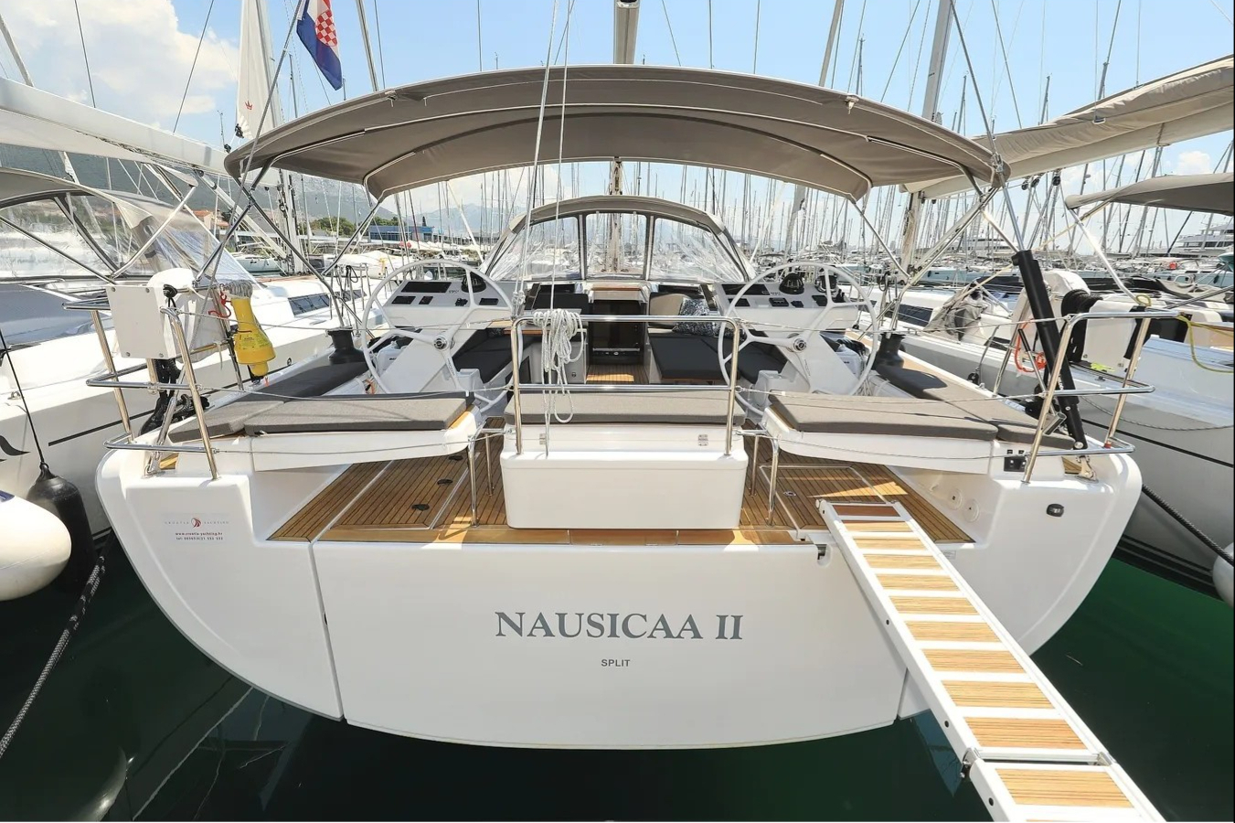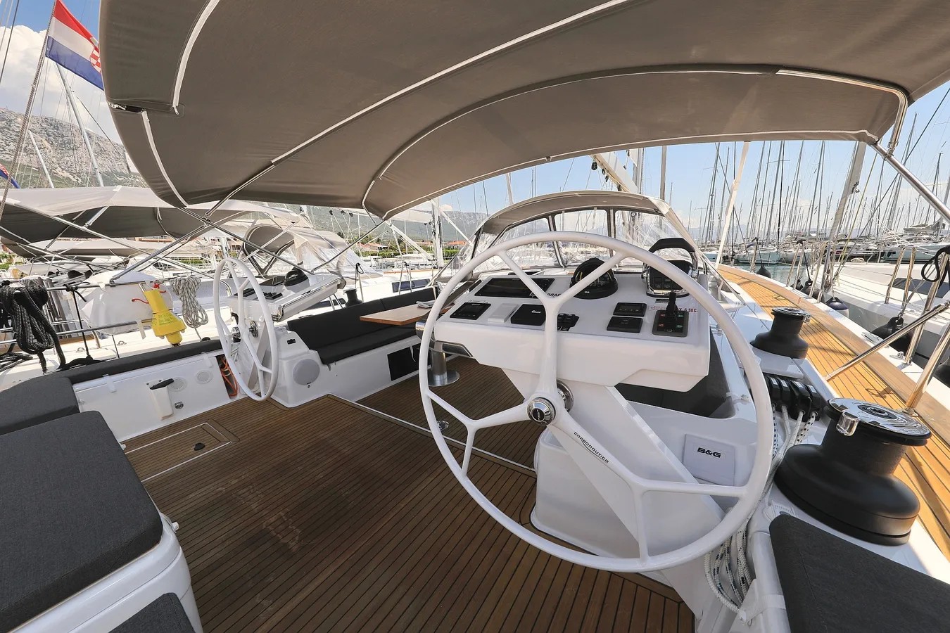 | Outside | Bathing platform, Bimini top, Cockpit speakers, Cockpit cushions, Cockpit table, Deck cushions, Electr. anchor windlass, BBQ, Sprayhood |